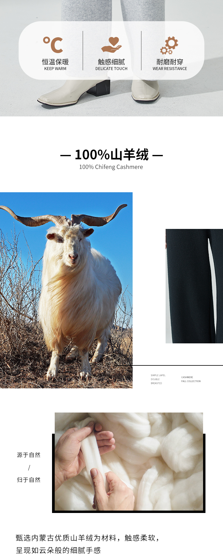 东黎羊绒是赤峰东荣集团自主品牌,自有牧场/羊绒制品全产业链优势,实现了羊绒从“牧场”到“商场”的华丽转变。