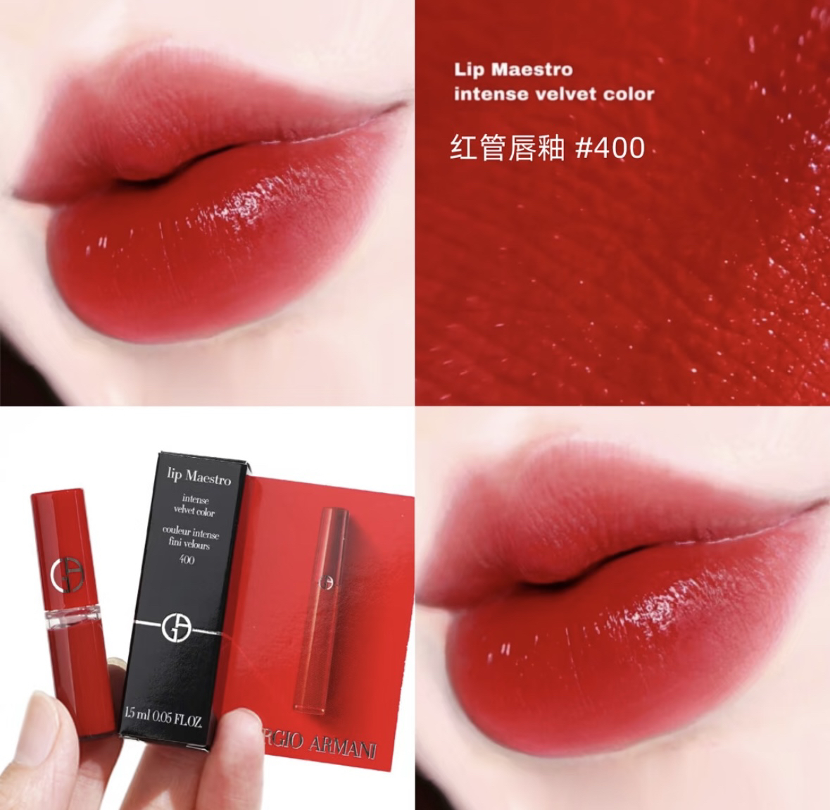 阿玛尼GIORGIO ARMANI · 红管唇釉丝绒哑光口红滋润经典正红400 206 正品1.5ml 小样