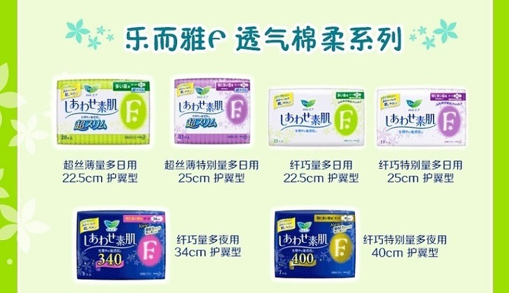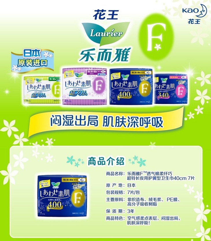 【保税仓】日本花王乐而雅F系列绵柔亲肤量多夜用护翼卫生巾40cm7片