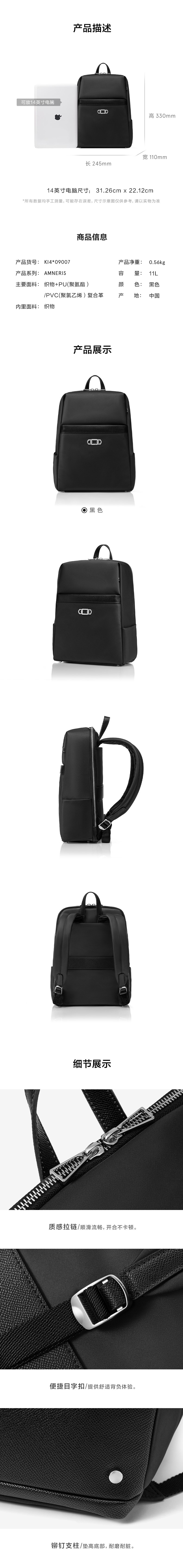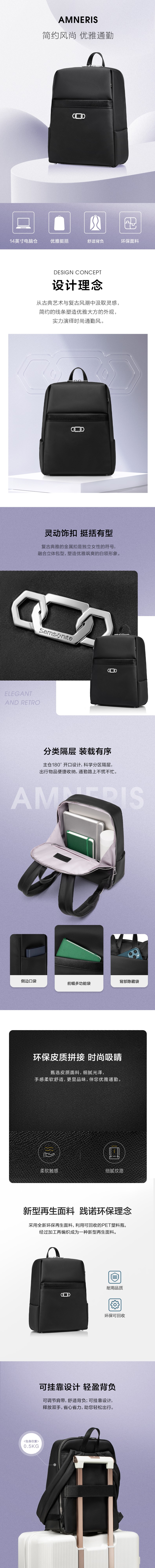 新秀丽AMNERIS系列简约优雅女士通勤双肩包KI4
