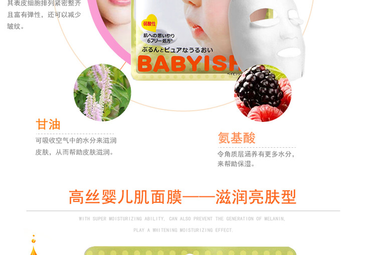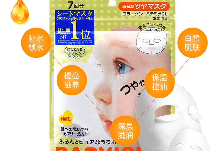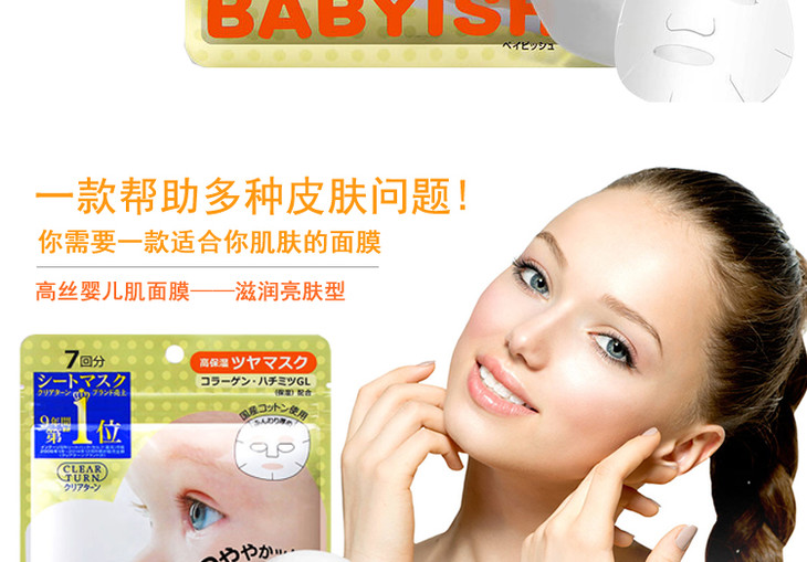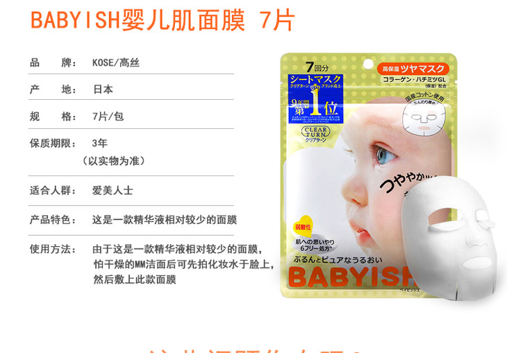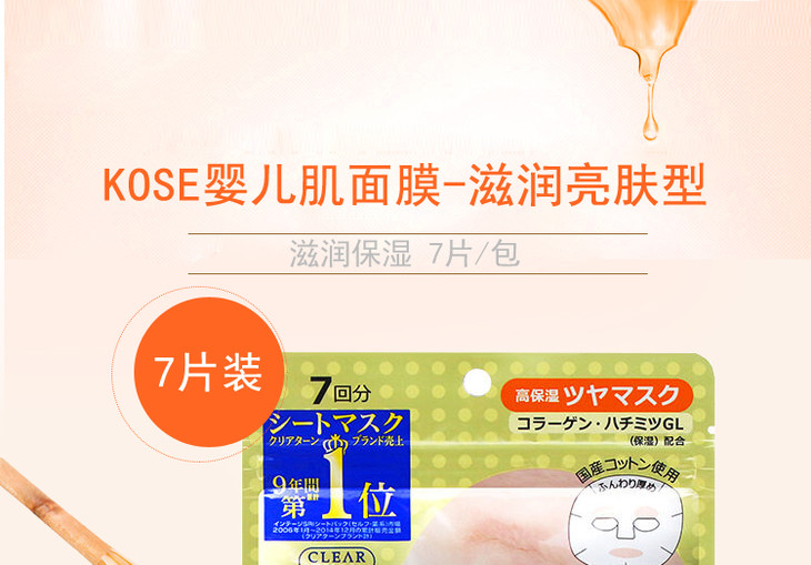 【保税仓】日本KOSE高丝 婴儿肌滋润保湿美白面膜 金色-滋润亮肤型 7片/包