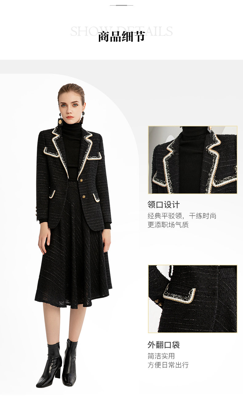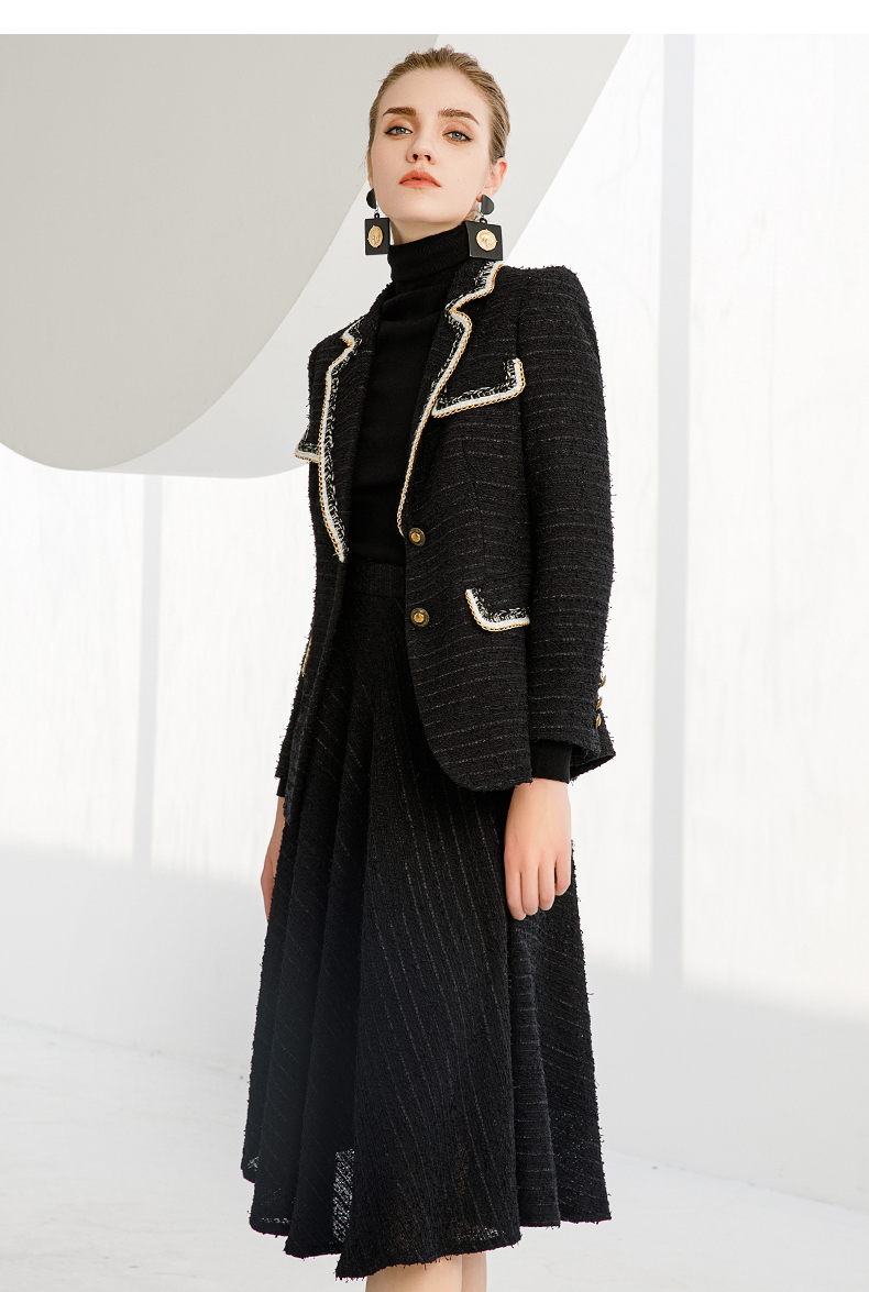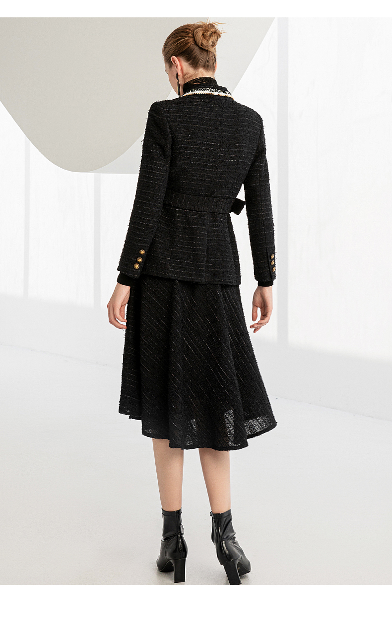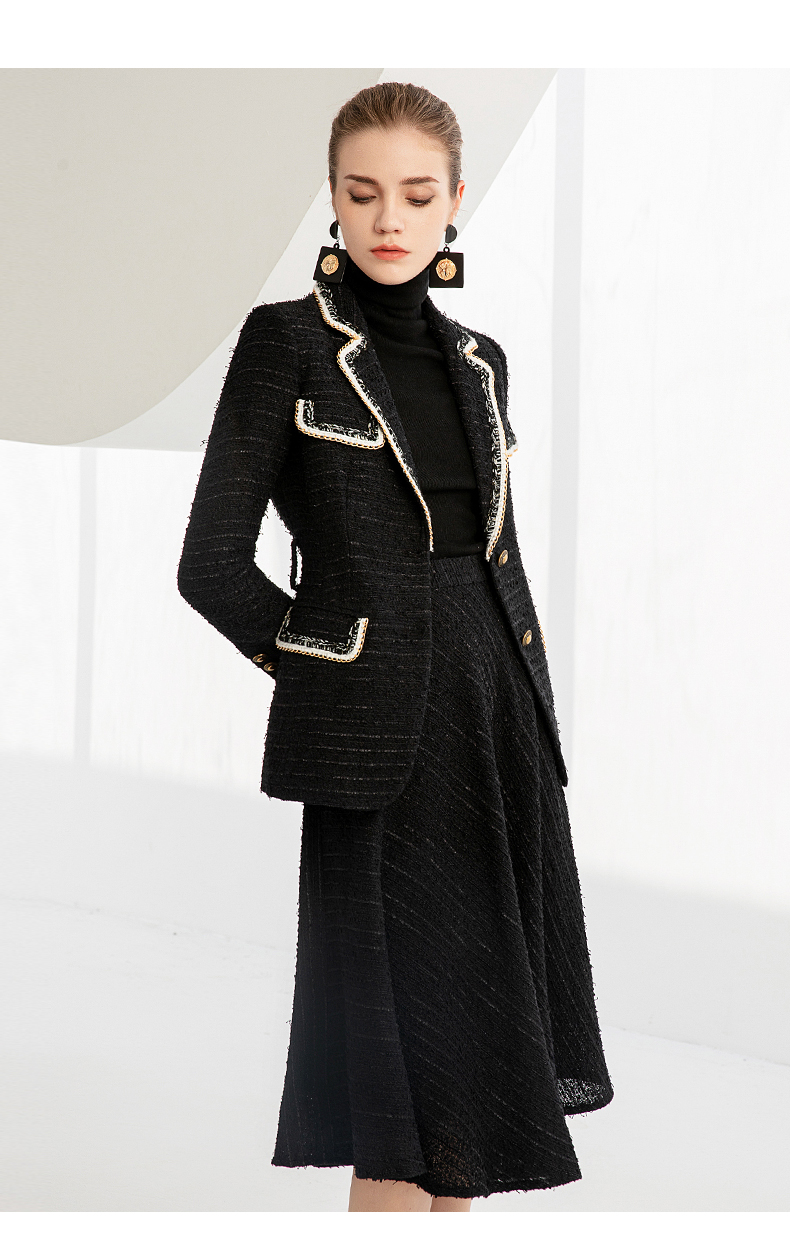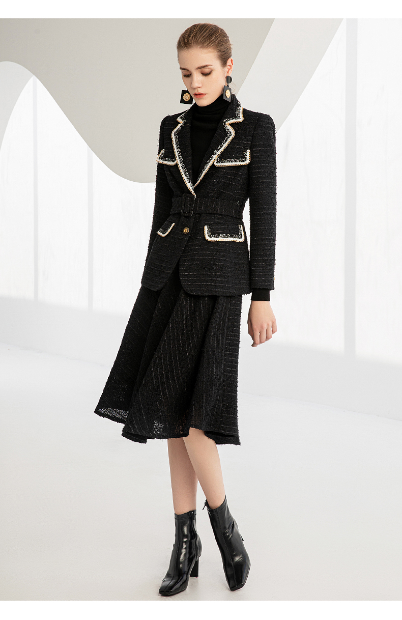 IWY/秋冬法式时尚黑色厚款西装套装女气质小香风名媛修身长袖西服套裙224002C1+S2