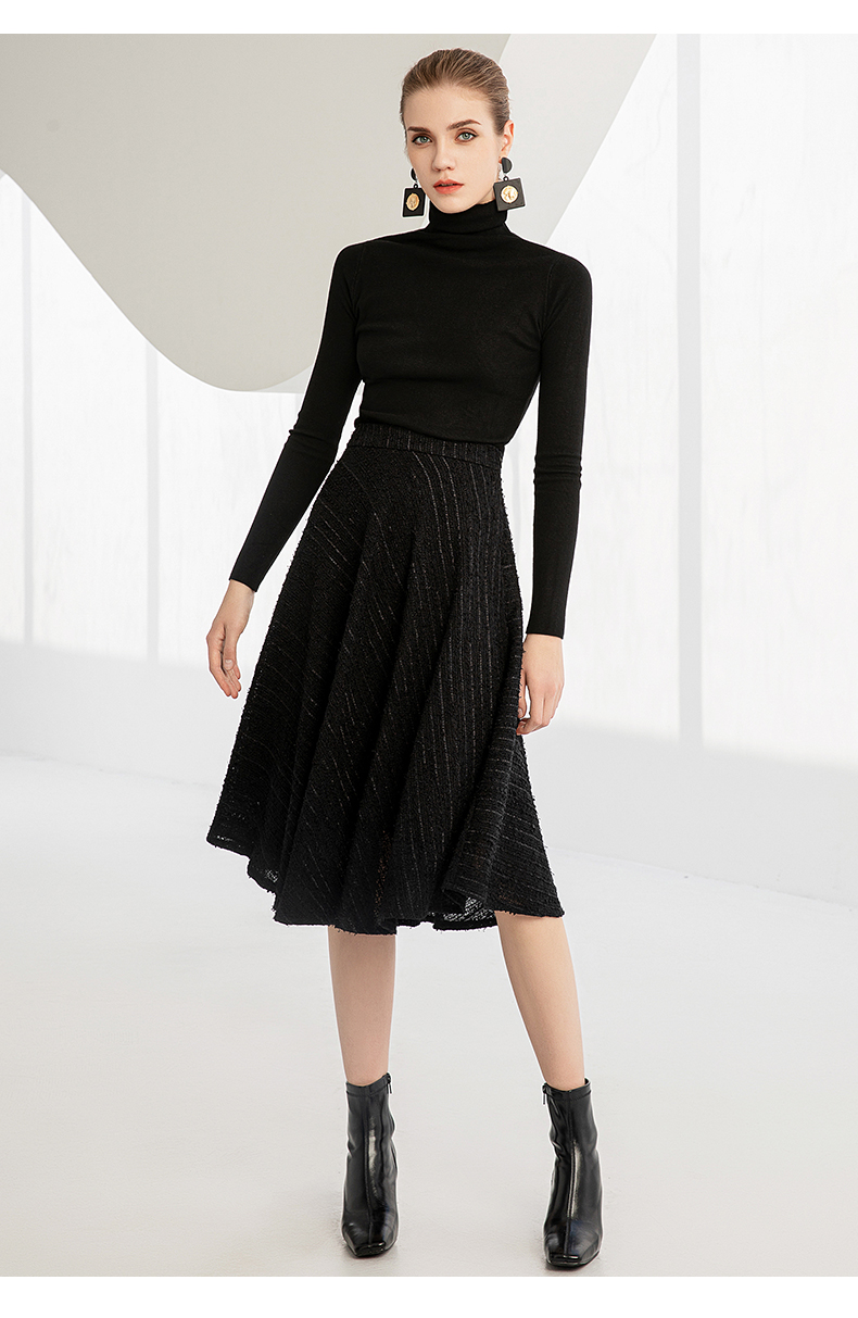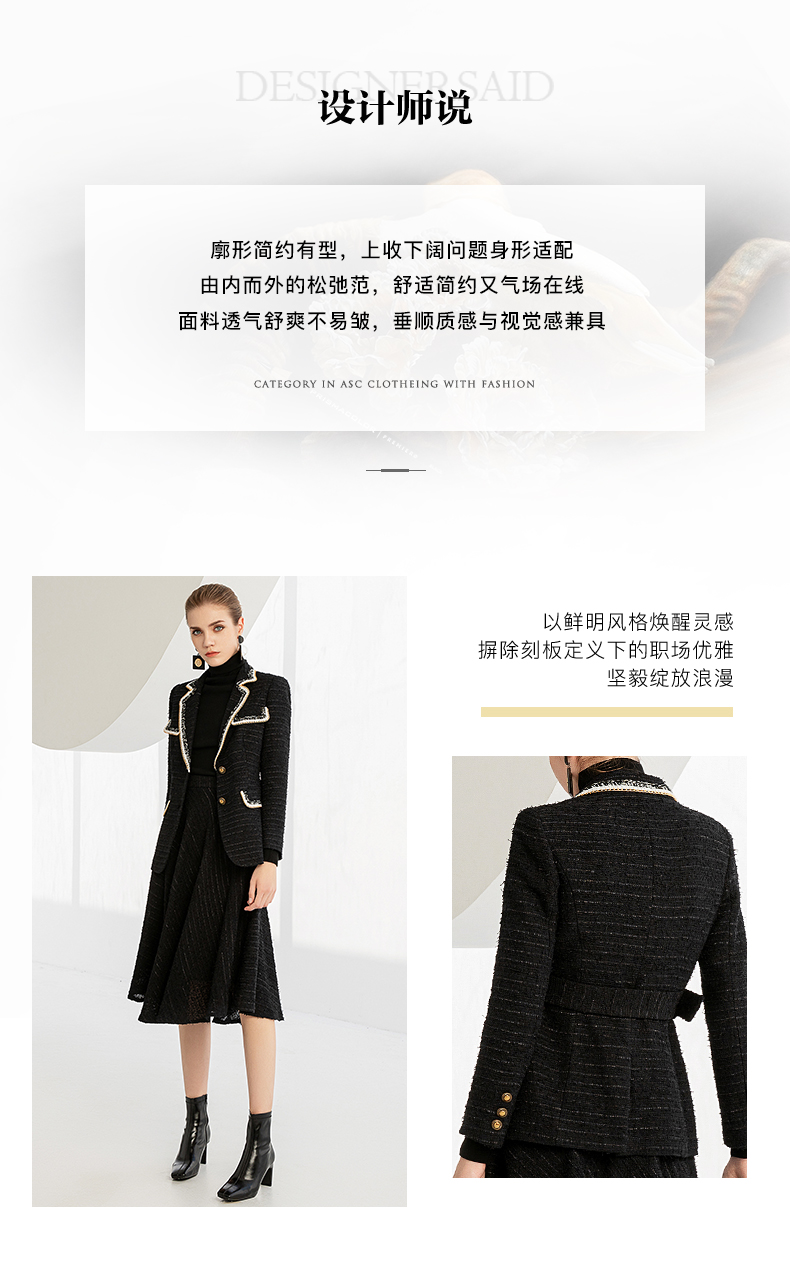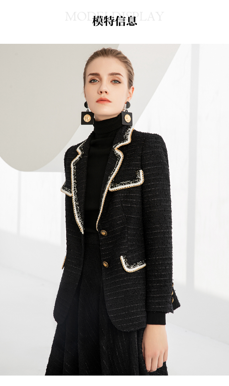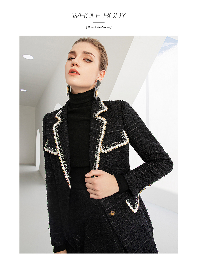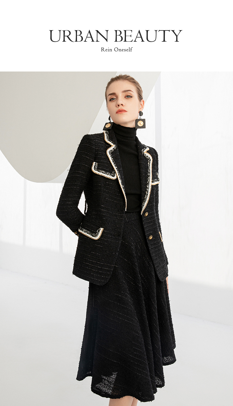 IWY/秋冬法式时尚黑色厚款西装套装女气质小香风名媛修身长袖西服套裙224002C1+S2