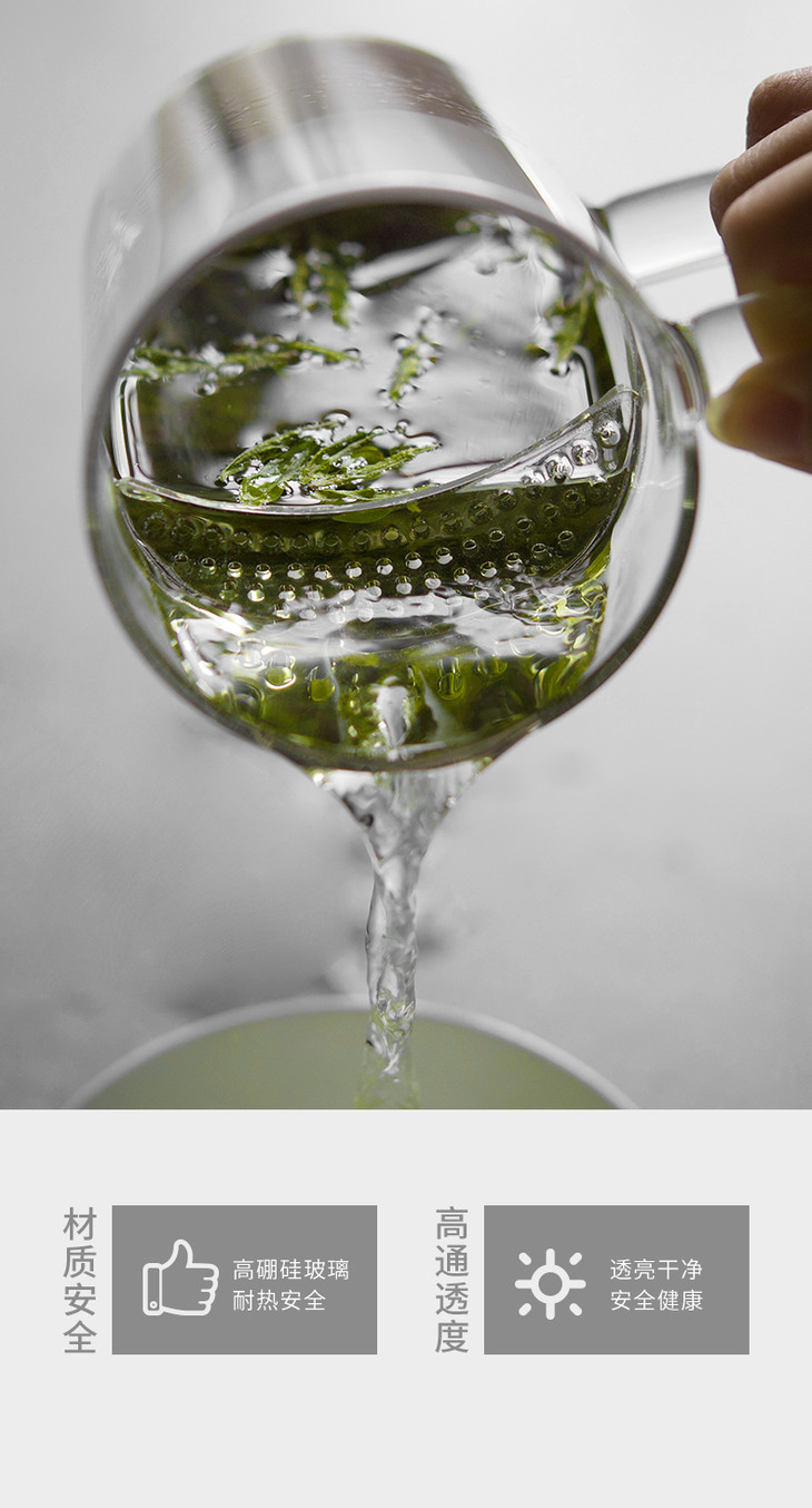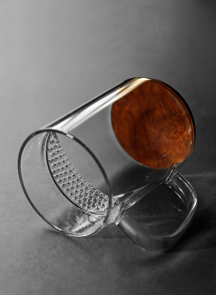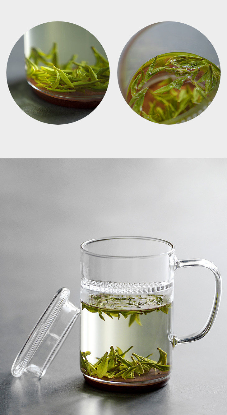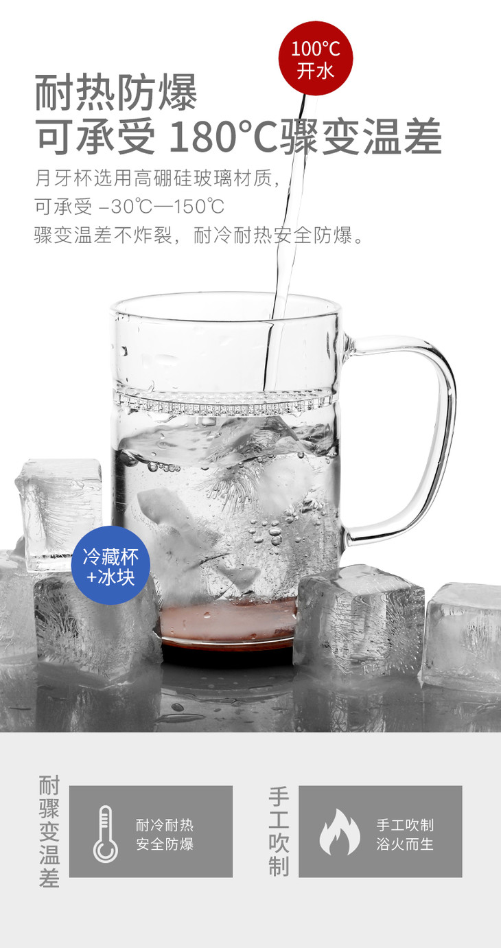 雅集月牙玻璃茶杯带茶滤耐热男女士办公泡茶杯创意带盖带把手水杯子