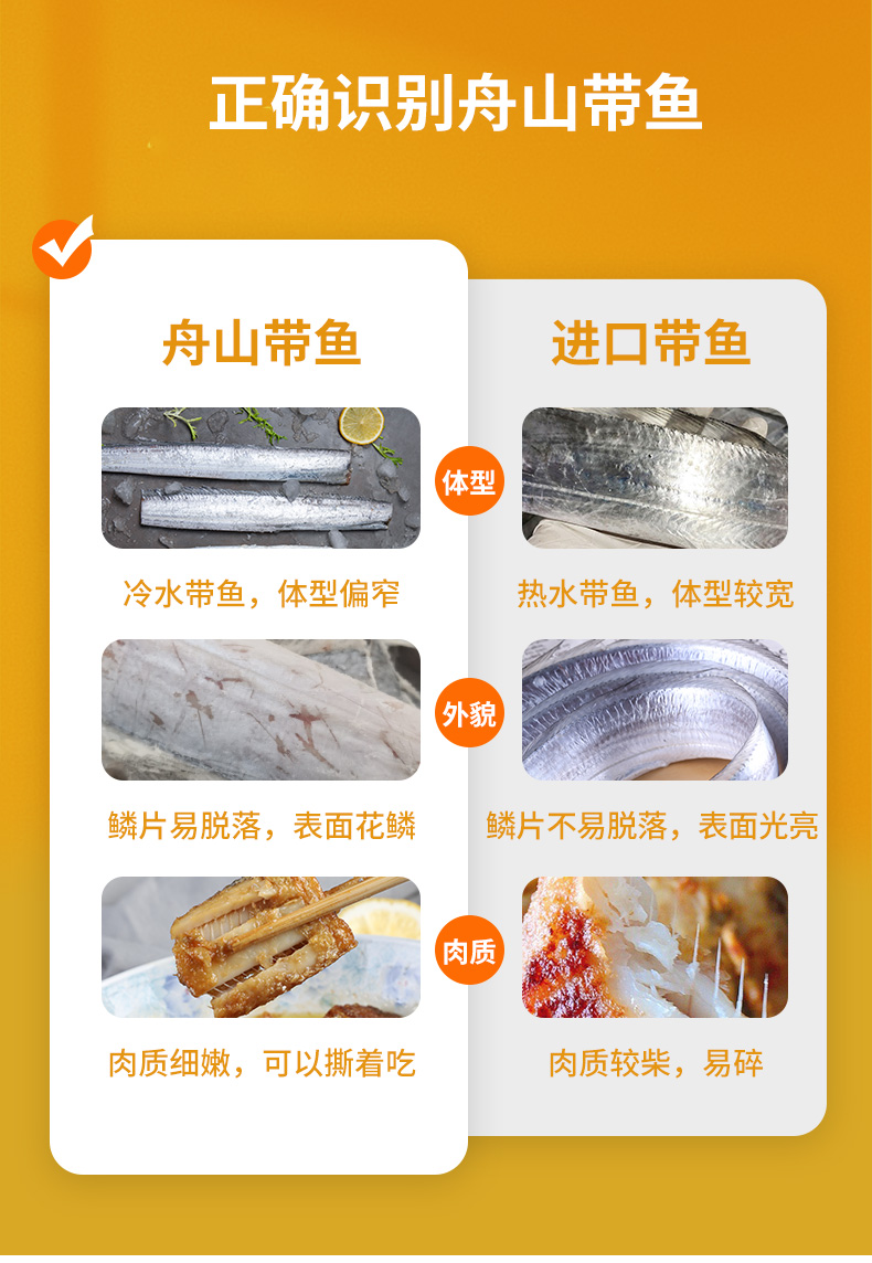 【鲜到鲜得舟山带鱼】纯中段400g*4无肚段净重