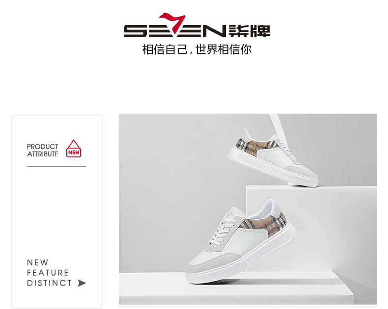 柒牌男士休闲鞋2024年新款时尚潮流百搭轻便舒适中青年白色男鞋子 127X70120