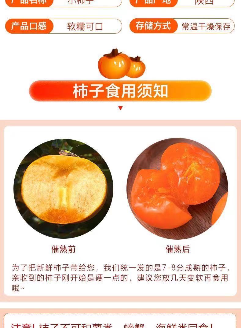 品名:火晶小柿子规格:3.8-4斤:约24-30枚发货地/产地:陕西/陕西保质期: 初级农产品,建议收到后尽快食用。包装方式:箱装物流信息:四通一达或其它快递随机发货,不接受指定快递。不发货区域:新疆、西藏、海南、内蒙、港澳台、疫情管控区。 |