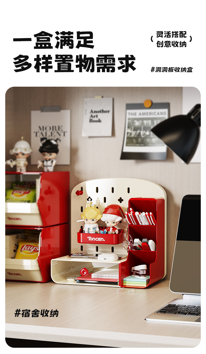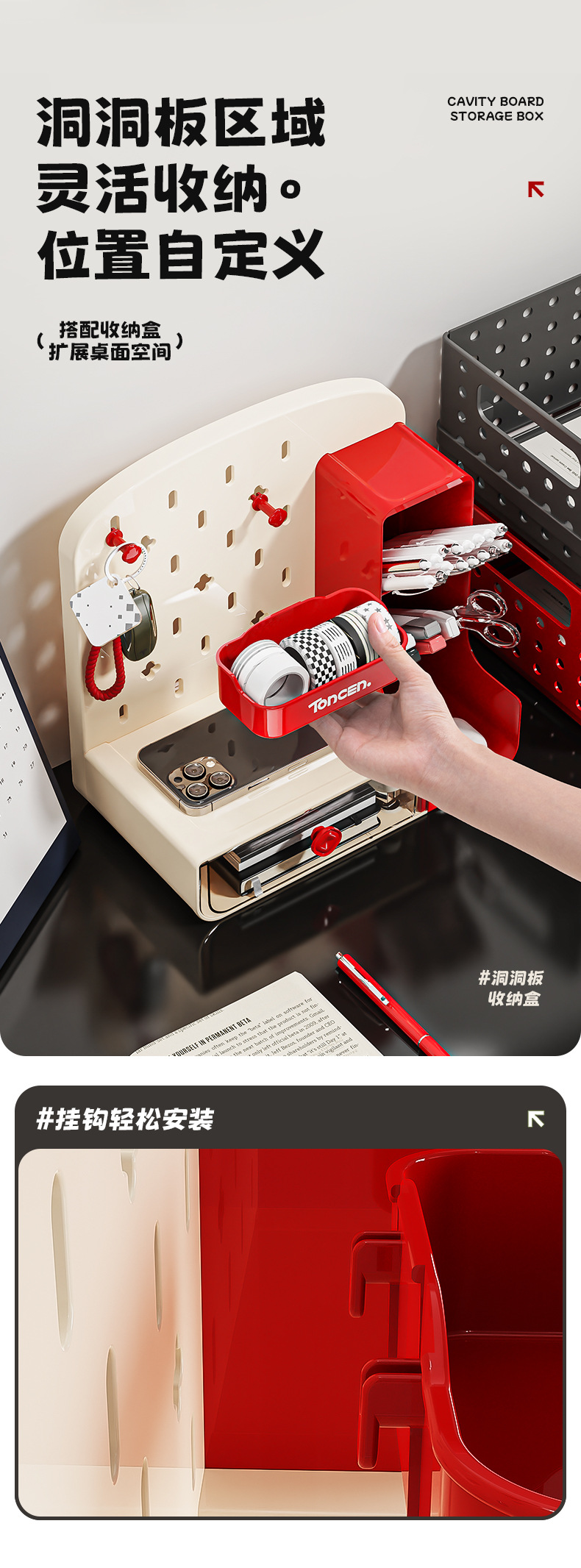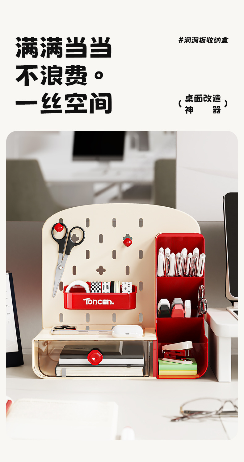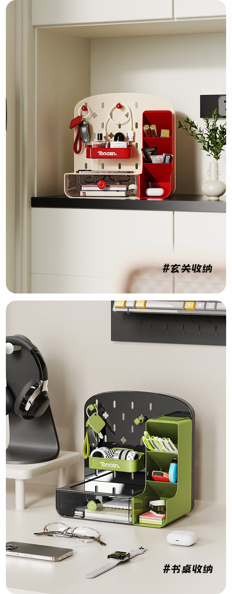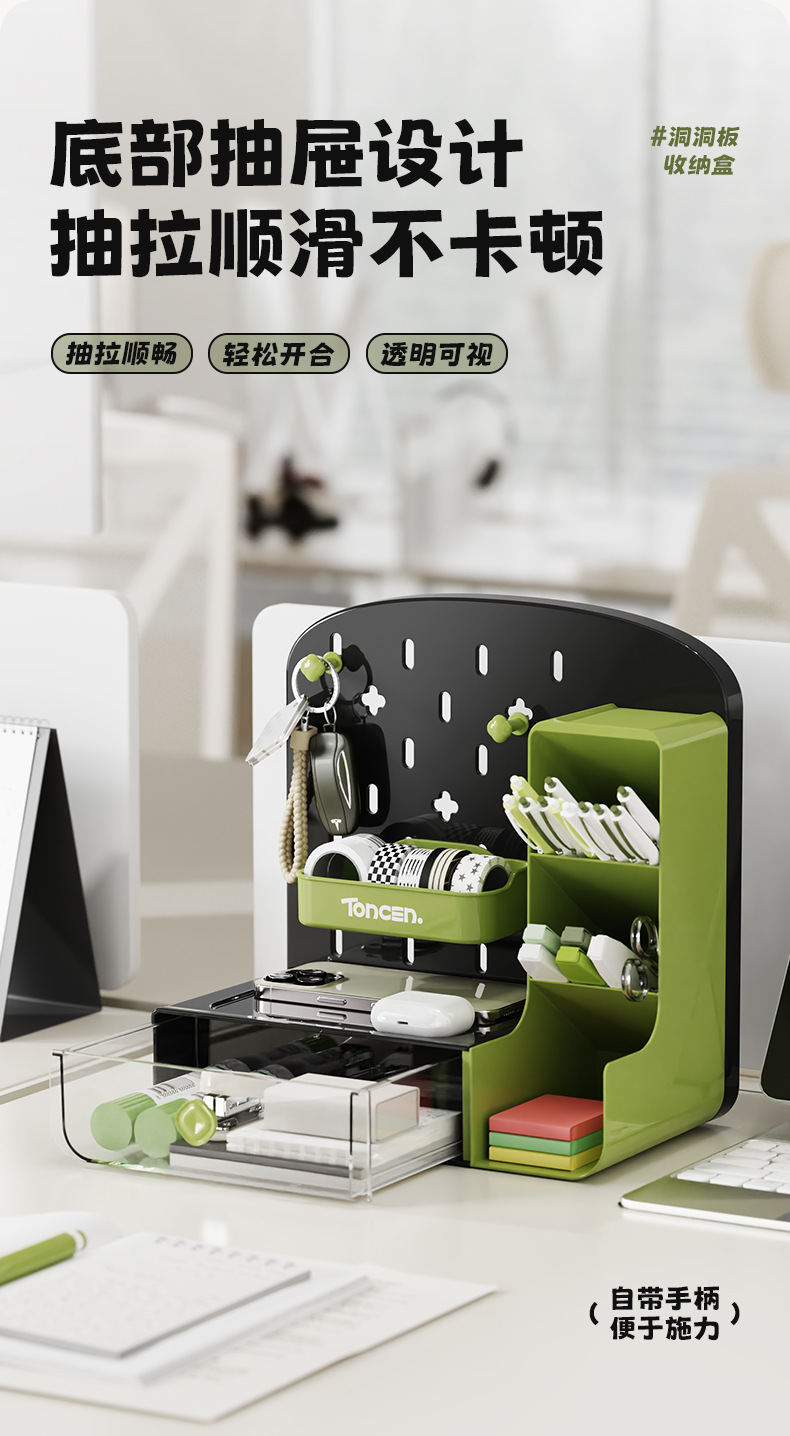【分类收纳❗一目了然】桌面洞洞板置物架抽屉式学生书桌文具办公室工位笔筒整理架收纳盒。rg