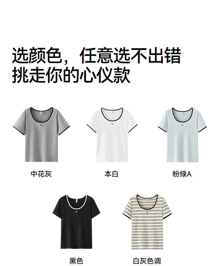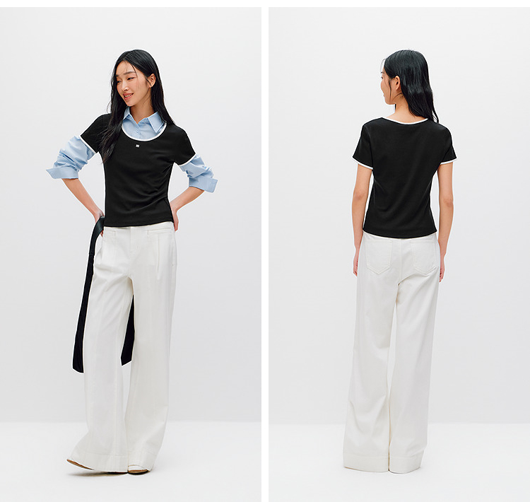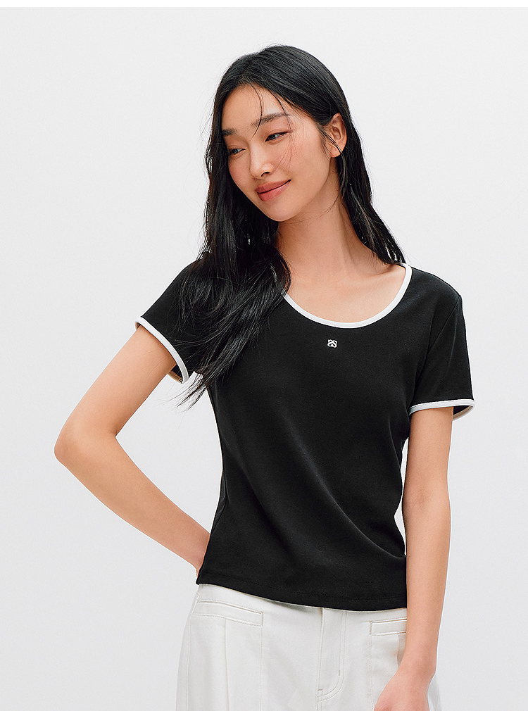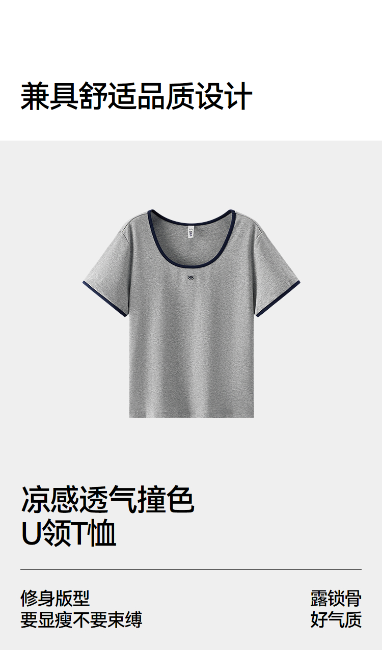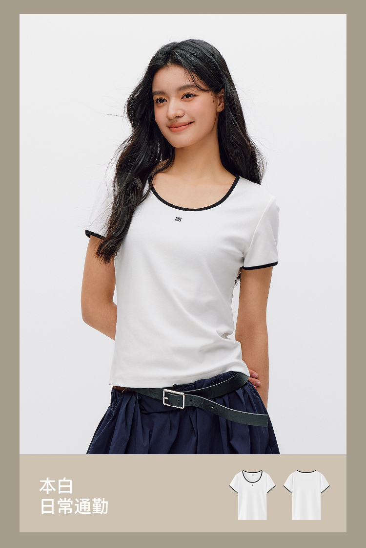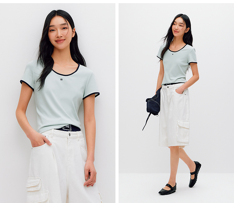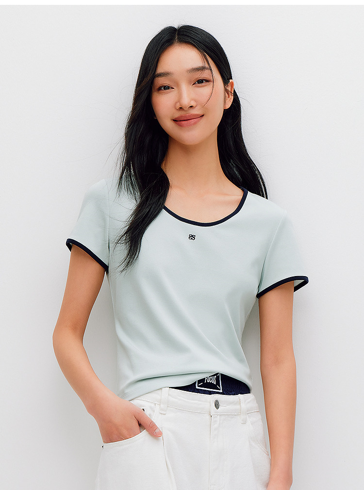 凉感T|商场同款森马短袖T恤女夏撞色U领正肩修身刺绣2026新款上衣