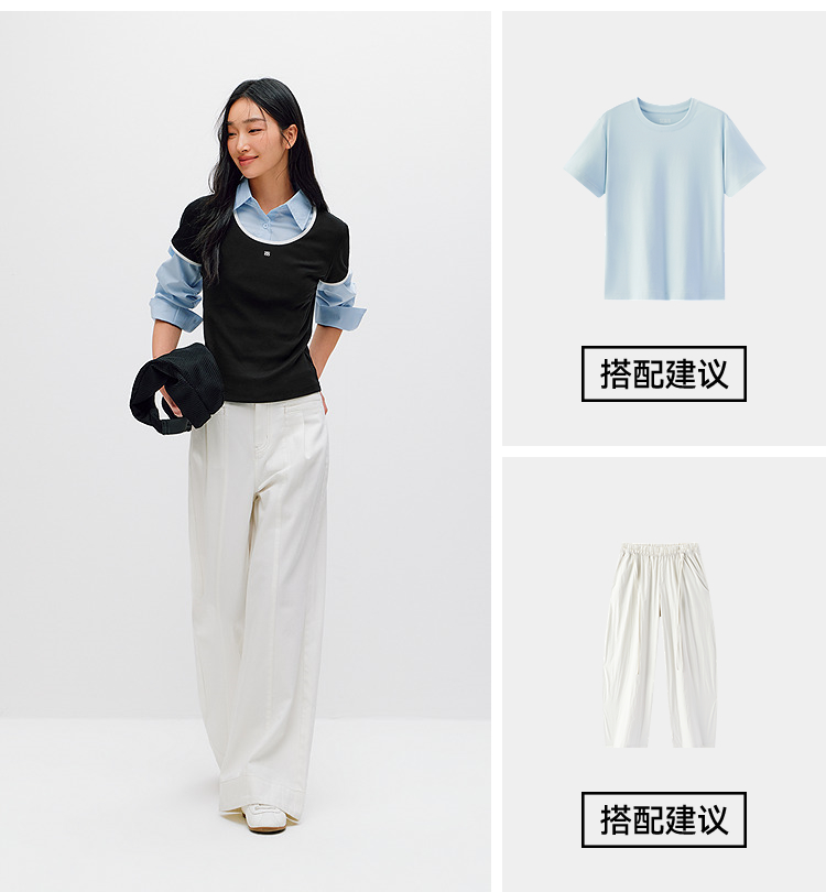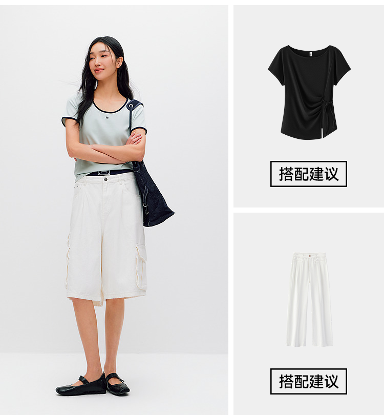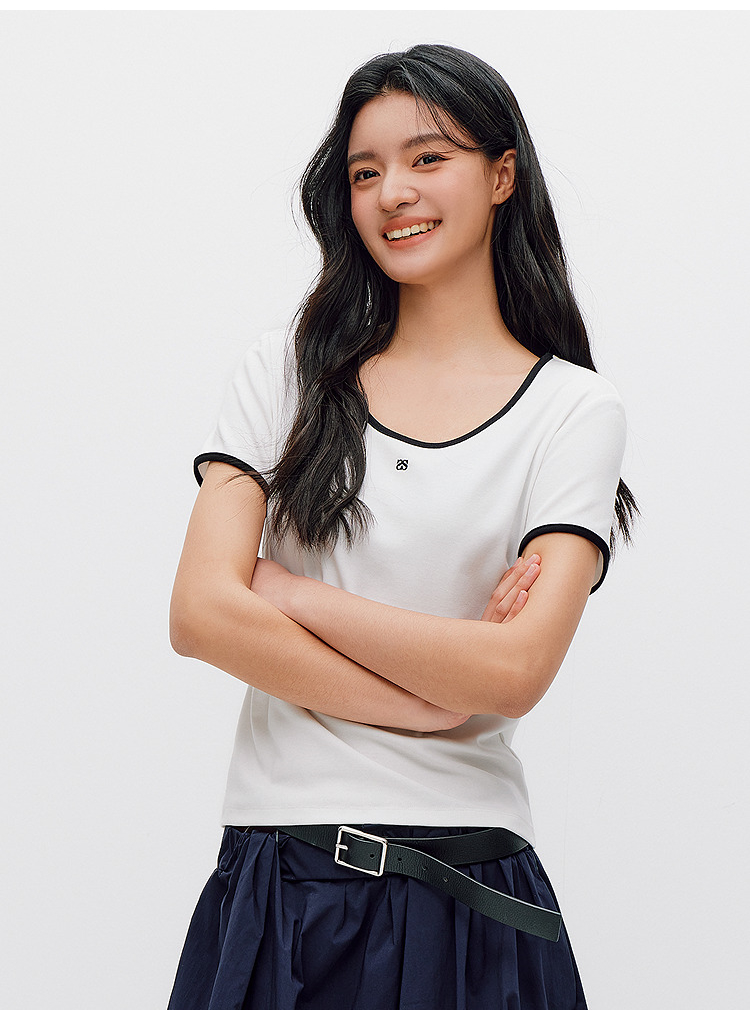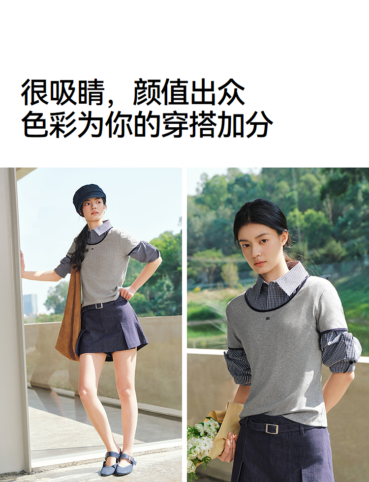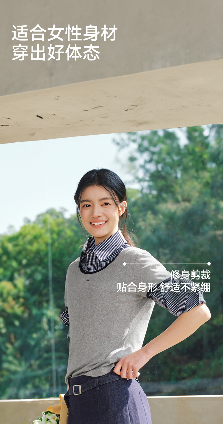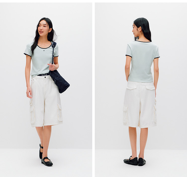 凉感T|商场同款森马短袖T恤女夏撞色U领正肩修身刺绣2026新款上衣