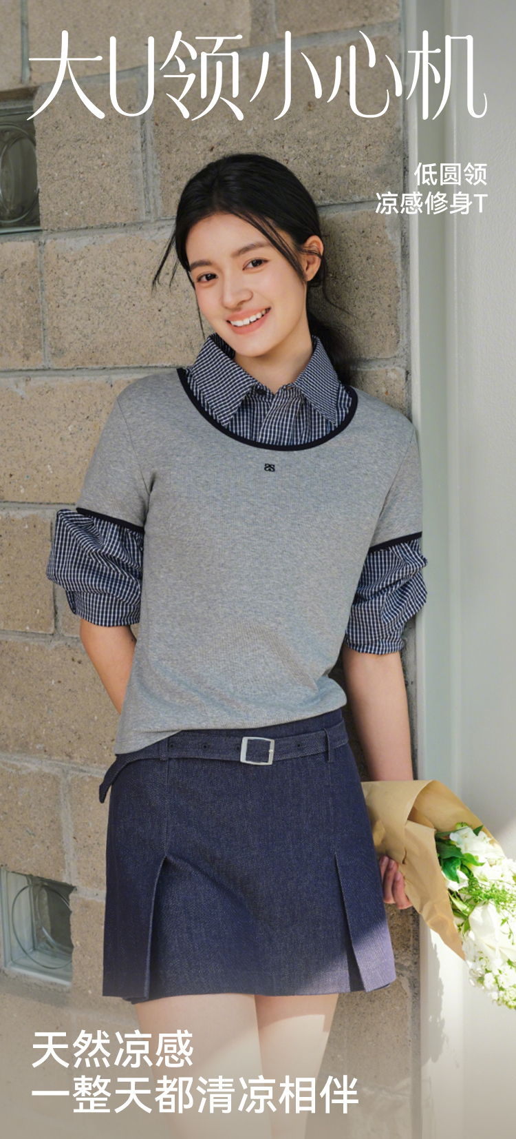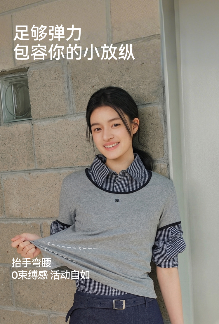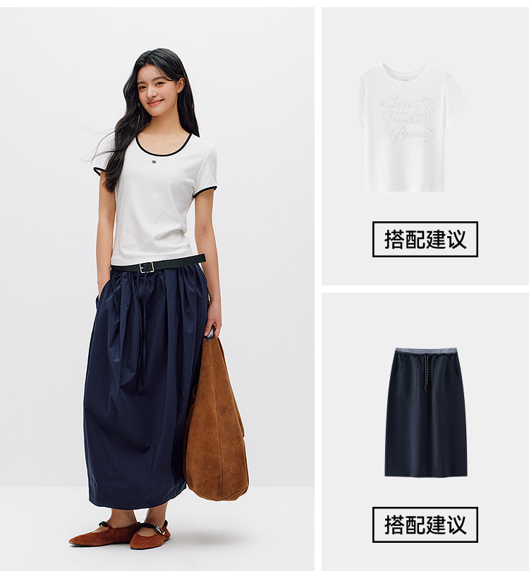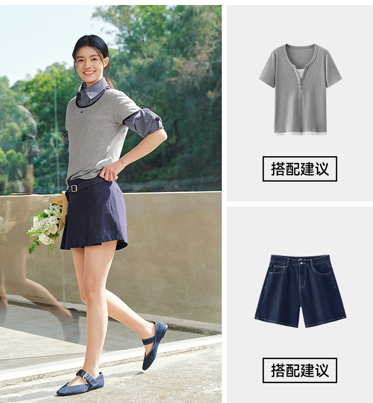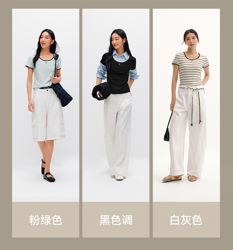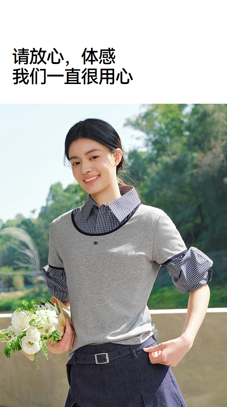 凉感T|商场同款森马短袖T恤女夏撞色U领正肩修身刺绣2026新款上衣