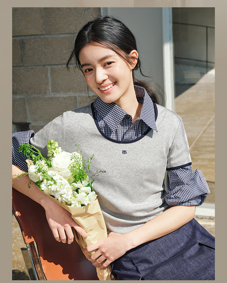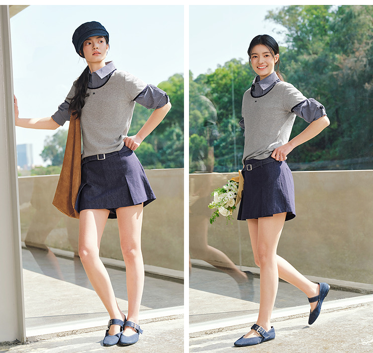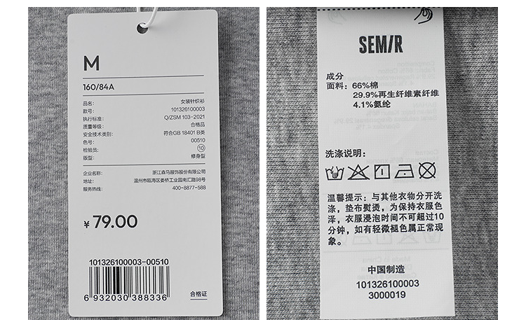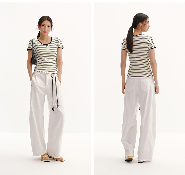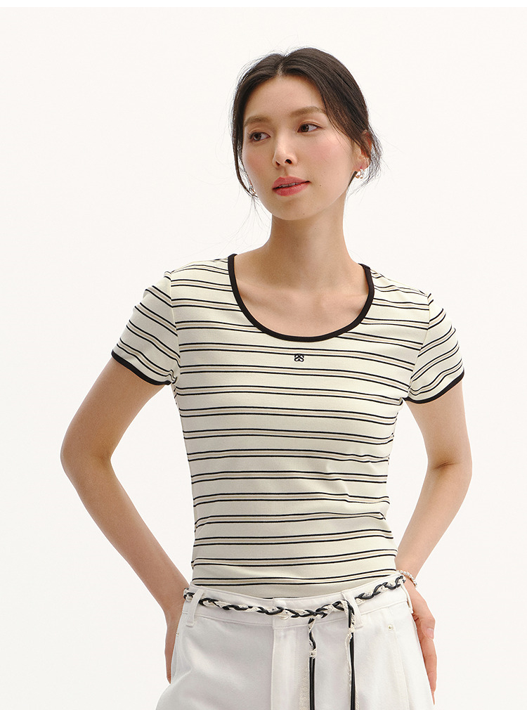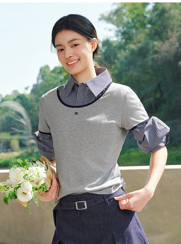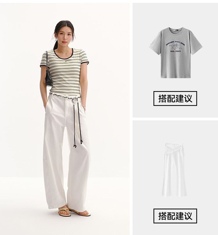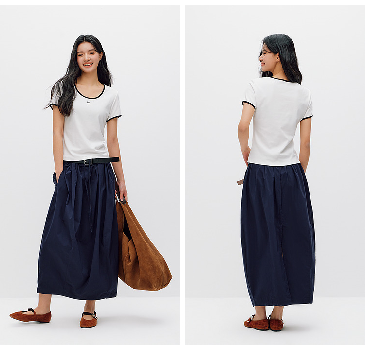 凉感T|商场同款森马短袖T恤女夏撞色U领正肩修身刺绣2026新款上衣