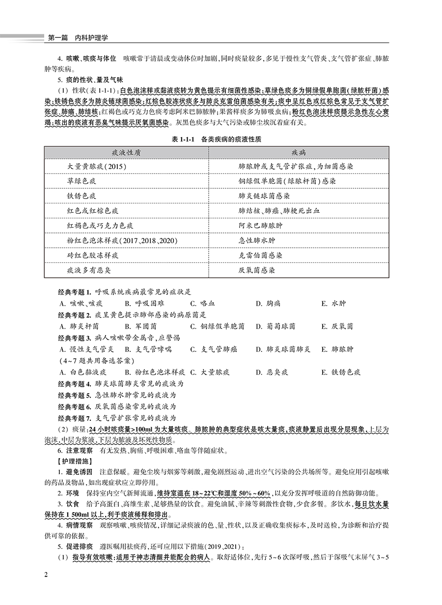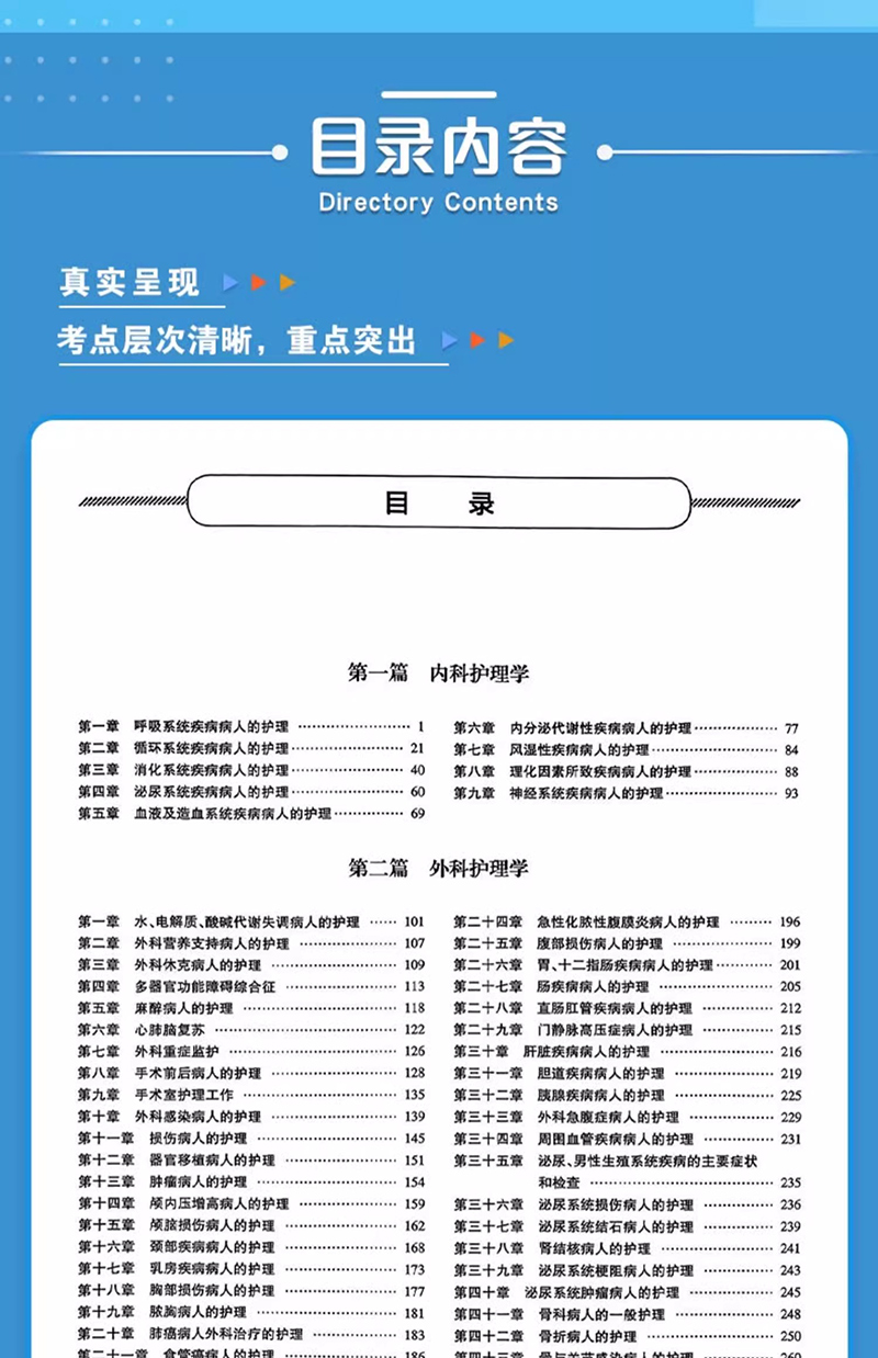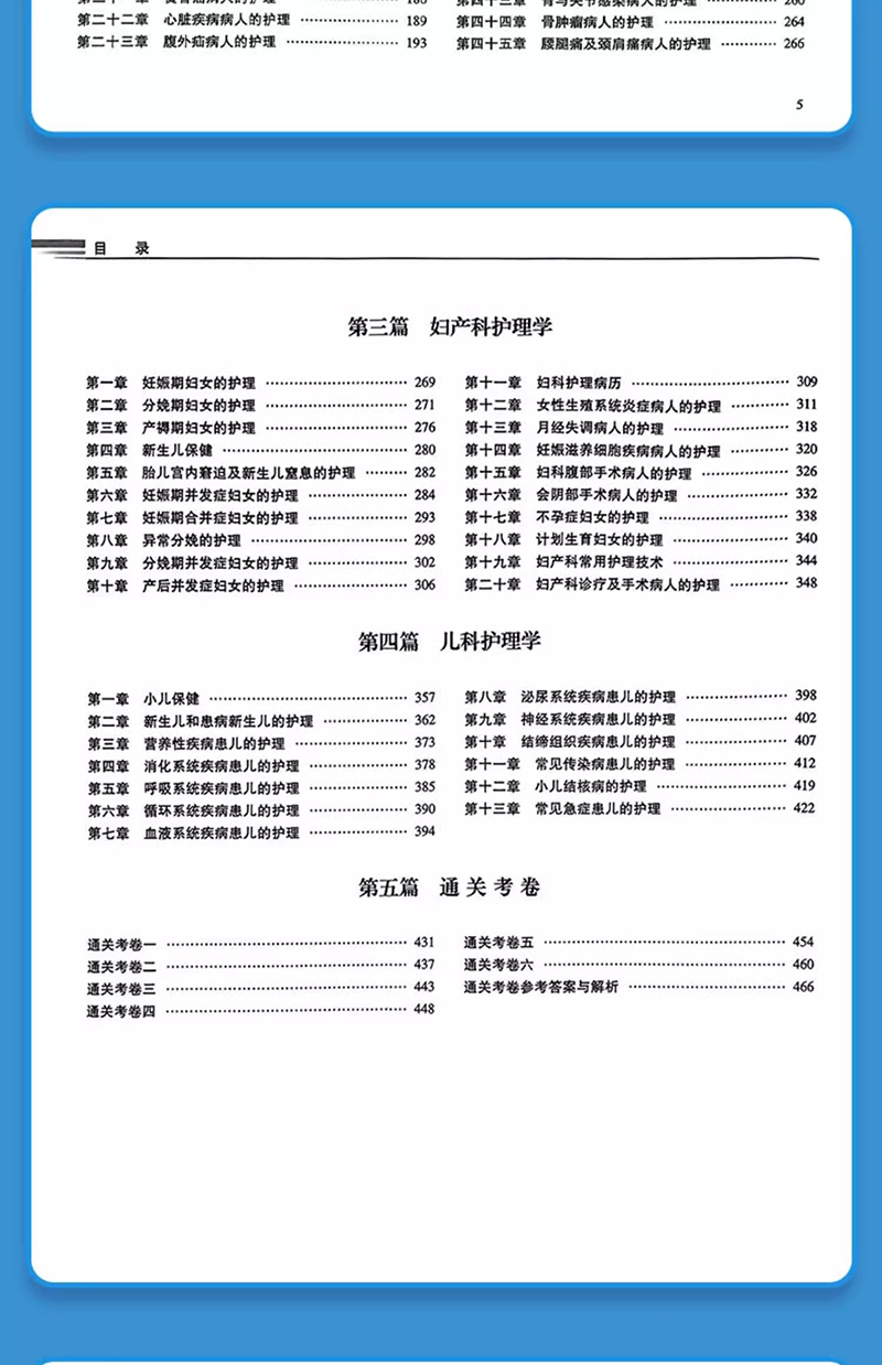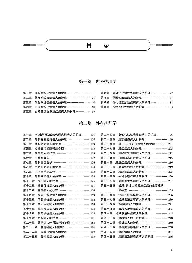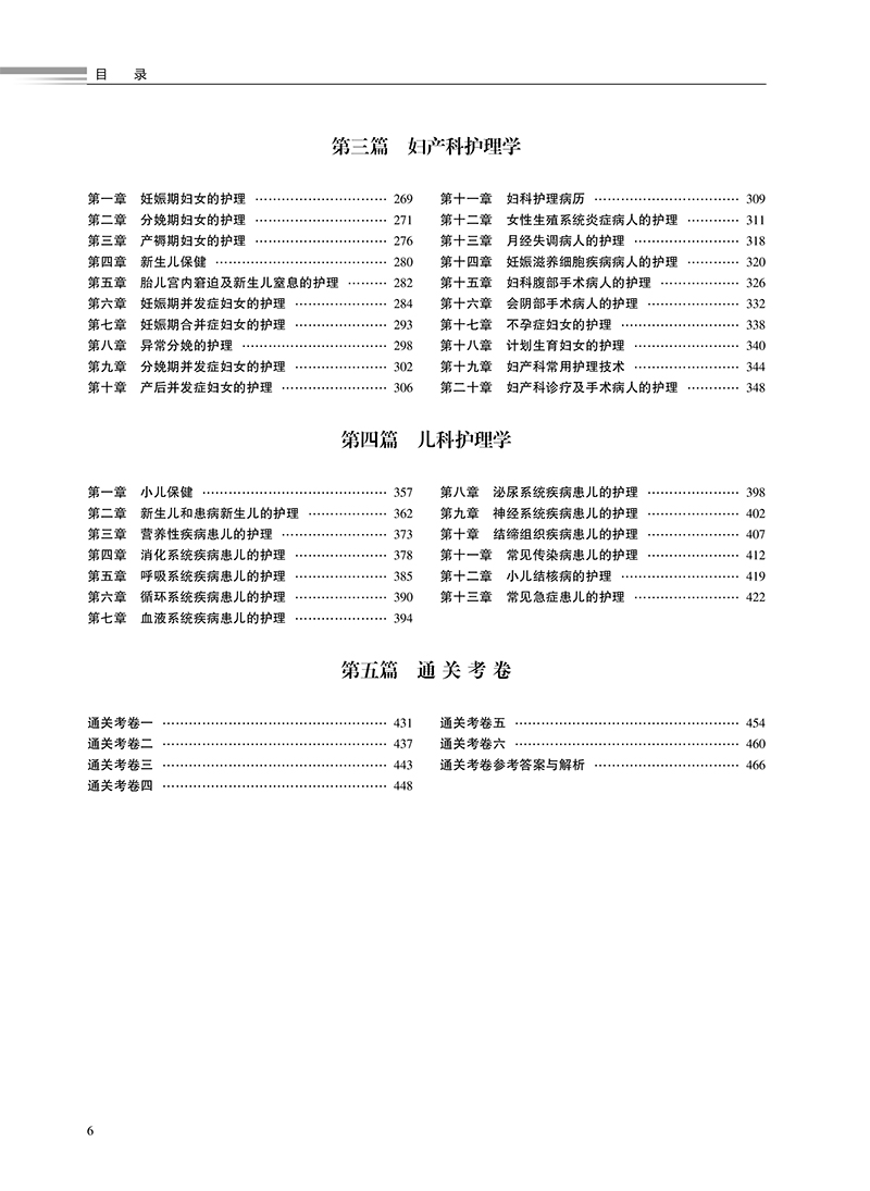 第一篇 内科护理学 第一章 呼吸系统疾病病人的护理 / 1 第二章 循环系统疾病病人的护理/ 21 第三章 消化系统疾病病人的护理/ 40 第四章 泌尿系统疾病病人的护理/ 60 第五章 血液及造血系统疾病病人的护理/ 69 第六章 内分泌代谢性疾病病人的护理/ 77 第七章 风湿性疾病病人的护理/ 84 第八章 理化因素所致疾病病人的护理/ 88 第九章 神经系统疾病病人的护理/ 93 第二篇 外科护理学 第一章 水、电解质、酸碱代谢失调病人的护理 / 101 第二章 外科营养支持病人的护理 / 107 第三章 外科休克病人的护理 / 109 第四章 多器官功能障碍综合征 / 113 第五章 麻醉病人的护理 / 118 第六章 心肺脑复苏 / 122 第七章 外科重症监护 / 126 第八章 手术前后病人的护理 / 128 第九章 手术室护理工作 / 135 第十章 外科感染病人的护理 / 139 第十一章 损伤病人的护理 / 145 第十二章 器官移植病人的护理 / 151 第十三章 肿瘤病人的护理 / 154 第十四章 颅内压增高病人的护理 / 159 第十五章 颅脑损伤病人的护理 / 162 第十六章 颈部疾病病人的护理 / 168 第十七章 乳房疾病病人的护理 / 173 第十八章 胸部损伤病人的护理 / 177 第十九章 脓胸病人的护理 / 181 第二十章 肺癌病人外科治疗的护理 / 183 第二十一章 食管癌病人的护理 / 186 第二十二章 心脏疾病病人的护理 / 189 第二十三章 腹外疝病人的护理 / 193 第二十四章 急性化脓性腹膜炎病人的护理 / 196 第二十五章 腹部损伤病人的护理 / 199 第二十六章 胃、十二指肠疾病病人的护理/ 201 第二十七章 肠疾病病人的护理 / 205 第二十八章 直肠肛管疾病病人的护理 / 212 第二十九章 门静脉高压症病人的护理 / 215 第三十章 肝脏疾病病人的护理 / 216 第三十一章 胆道疾病病人的护理 / 219 第三十二章 胰腺疾病病人的护理 / 225 第三十三章 外科急腹症病人的护理 / 229 第三十四章 周围血管疾病病人的护理 / 231 第三十五章 泌尿、男性生殖系统疾病的主要症状 和检查 / 235 第三十六章 泌尿系统损伤病人的护理 / 236 第三十七章 泌尿系统结石病人的护理 / 239 第三十八章 肾结核病人的护理 / 241 第三十九章 泌尿系统梗阻病人的护理 / 243 第四十章 泌尿系统肿瘤病人的护理 / 245 第四十一章 骨科病人的一般护理 / 248 第四十二章 骨折病人的护理 / 250 第四十三章 骨与关节感染病人的护理 / 260 第四十四章 骨肿瘤病人的护理 / 264 第四十五章 腰腿痛及颈肩痛病人的护理 / 266 5 目 录 第三篇 妇产科护理学 第一章 妊娠期妇女的护理 / 269 第二章 分娩期妇女的护理 / 271 第三章 产褥期妇女的护理 / 276 第四章 新生儿保健 / 280 第五章 胎儿宫内窘迫及新生儿窒息的护理 / 282 第六章 妊娠期并发症妇女的护理 / 284 第七章 妊娠期合并症妇女的护理 / 293 第八章 异常分娩的护理 / 298 第九章 分娩期并发症妇女的护理 / 302 第十章 产后并发症妇女的护理 / 306 第十一章 妇科护理病历 / 309 第十二章 女性生殖系统炎症病人的护理 / 311 第十三章 月经失调病人的护理 / 318 第十四章 妊娠滋养细胞疾病病人的护理 / 320 第十五章 妇科腹部手术病人的护理 / 326 第十六章 会阴部手术病人的护理 / 332 第十七章 不孕症妇女的护理 / 338 第十八章 计划生育妇女的护理 / 340 第十九章 妇产科常用护理技术 / 344 第二十章 妇产科诊疗及手术病人的护理 / 348 第四篇 儿科护理学 第一章 小儿保健 / 357 第二章 新生儿和患病新生儿的护理 / 362 第三章 营养性疾病患儿的护理 / 373 第四章 消化系统疾病患儿的护理 / 378 第五章 呼吸系统疾病患儿的护理 / 385 第六章 循环系统疾病患儿的护理 / 390 第七章 血液系统疾病患儿的护理 / 394 第八章 泌尿系统疾病患儿的护理 / 398 第九章 神经系统疾病患儿的护理 / 402 第十章 结缔组织疾病患儿的护理 / 407 第十一章 常见传染病患儿的护理 / 412 第十二章 小儿结核病的护理 / 419 第十三章 常见急症患儿的护理 / 422 第五篇 通关考卷 通关考卷一 / 431 通关考卷二 / 437 通关考卷三 / 443 通关考卷四 / 448 通关考卷五 / 454 通关考卷六 / 460 通关考卷参考答案与解析 / 466