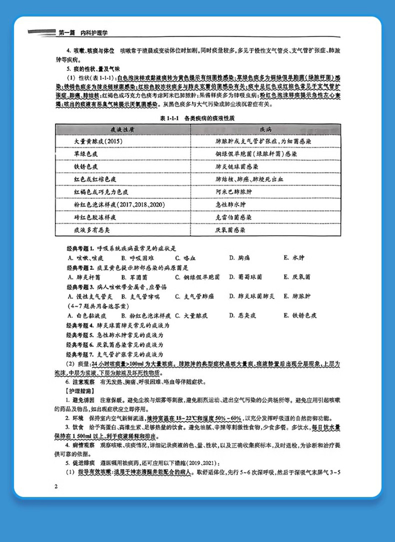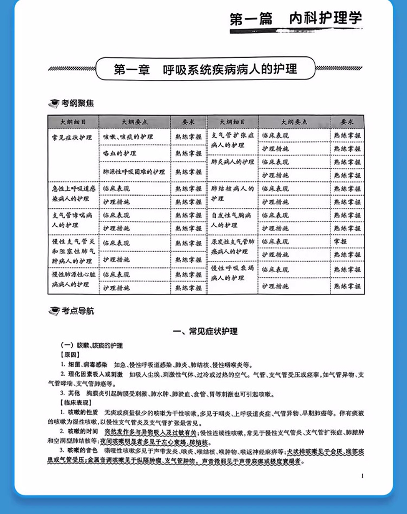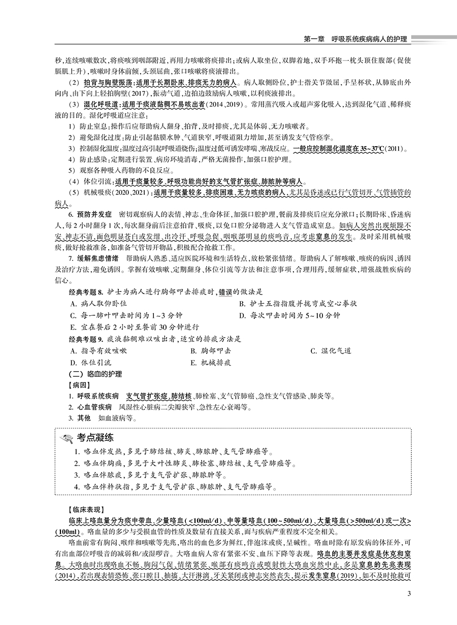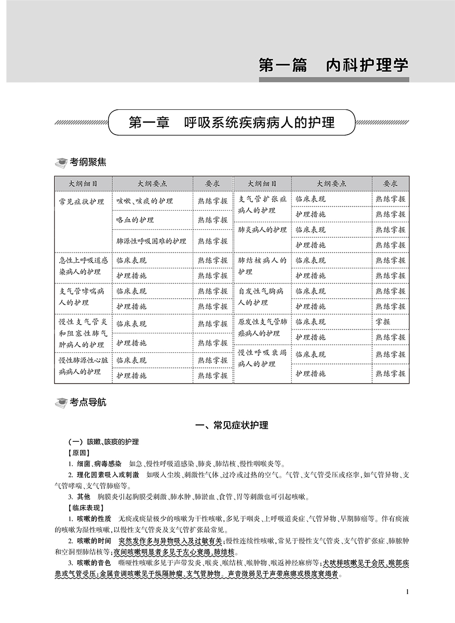 第一篇 内科护理学 第一章 呼吸系统疾病病人的护理 / 1 第二章 循环系统疾病病人的护理/ 21 第三章 消化系统疾病病人的护理/ 40 第四章 泌尿系统疾病病人的护理/ 60 第五章 血液及造血系统疾病病人的护理/ 69 第六章 内分泌代谢性疾病病人的护理/ 77 第七章 风湿性疾病病人的护理/ 84 第八章 理化因素所致疾病病人的护理/ 88 第九章 神经系统疾病病人的护理/ 93 第二篇 外科护理学 第一章 水、电解质、酸碱代谢失调病人的护理 / 101 第二章 外科营养支持病人的护理 / 107 第三章 外科休克病人的护理 / 109 第四章 多器官功能障碍综合征 / 113 第五章 麻醉病人的护理 / 118 第六章 心肺脑复苏 / 122 第七章 外科重症监护 / 126 第八章 手术前后病人的护理 / 128 第九章 手术室护理工作 / 135 第十章 外科感染病人的护理 / 139 第十一章 损伤病人的护理 / 145 第十二章 器官移植病人的护理 / 151 第十三章 肿瘤病人的护理 / 154 第十四章 颅内压增高病人的护理 / 159 第十五章 颅脑损伤病人的护理 / 162 第十六章 颈部疾病病人的护理 / 168 第十七章 乳房疾病病人的护理 / 173 第十八章 胸部损伤病人的护理 / 177 第十九章 脓胸病人的护理 / 181 第二十章 肺癌病人外科治疗的护理 / 183 第二十一章 食管癌病人的护理 / 186 第二十二章 心脏疾病病人的护理 / 189 第二十三章 腹外疝病人的护理 / 193 第二十四章 急性化脓性腹膜炎病人的护理 / 196 第二十五章 腹部损伤病人的护理 / 199 第二十六章 胃、十二指肠疾病病人的护理/ 201 第二十七章 肠疾病病人的护理 / 205 第二十八章 直肠肛管疾病病人的护理 / 212 第二十九章 门静脉高压症病人的护理 / 215 第三十章 肝脏疾病病人的护理 / 216 第三十一章 胆道疾病病人的护理 / 219 第三十二章 胰腺疾病病人的护理 / 225 第三十三章 外科急腹症病人的护理 / 229 第三十四章 周围血管疾病病人的护理 / 231 第三十五章 泌尿、男性生殖系统疾病的主要症状 和检查 / 235 第三十六章 泌尿系统损伤病人的护理 / 236 第三十七章 泌尿系统结石病人的护理 / 239 第三十八章 肾结核病人的护理 / 241 第三十九章 泌尿系统梗阻病人的护理 / 243 第四十章 泌尿系统肿瘤病人的护理 / 245 第四十一章 骨科病人的一般护理 / 248 第四十二章 骨折病人的护理 / 250 第四十三章 骨与关节感染病人的护理 / 260 第四十四章 骨肿瘤病人的护理 / 264 第四十五章 腰腿痛及颈肩痛病人的护理 / 266 5 目 录 第三篇 妇产科护理学 第一章 妊娠期妇女的护理 / 269 第二章 分娩期妇女的护理 / 271 第三章 产褥期妇女的护理 / 276 第四章 新生儿保健 / 280 第五章 胎儿宫内窘迫及新生儿窒息的护理 / 282 第六章 妊娠期并发症妇女的护理 / 284 第七章 妊娠期合并症妇女的护理 / 293 第八章 异常分娩的护理 / 298 第九章 分娩期并发症妇女的护理 / 302 第十章 产后并发症妇女的护理 / 306 第十一章 妇科护理病历 / 309 第十二章 女性生殖系统炎症病人的护理 / 311 第十三章 月经失调病人的护理 / 318 第十四章 妊娠滋养细胞疾病病人的护理 / 320 第十五章 妇科腹部手术病人的护理 / 326 第十六章 会阴部手术病人的护理 / 332 第十七章 不孕症妇女的护理 / 338 第十八章 计划生育妇女的护理 / 340 第十九章 妇产科常用护理技术 / 344 第二十章 妇产科诊疗及手术病人的护理 / 348 第四篇 儿科护理学 第一章 小儿保健 / 357 第二章 新生儿和患病新生儿的护理 / 362 第三章 营养性疾病患儿的护理 / 373 第四章 消化系统疾病患儿的护理 / 378 第五章 呼吸系统疾病患儿的护理 / 385 第六章 循环系统疾病患儿的护理 / 390 第七章 血液系统疾病患儿的护理 / 394 第八章 泌尿系统疾病患儿的护理 / 398 第九章 神经系统疾病患儿的护理 / 402 第十章 结缔组织疾病患儿的护理 / 407 第十一章 常见传染病患儿的护理 / 412 第十二章 小儿结核病的护理 / 419 第十三章 常见急症患儿的护理 / 422 第五篇 通关考卷 通关考卷一 / 431 通关考卷二 / 437 通关考卷三 / 443 通关考卷四 / 448 通关考卷五 / 454 通关考卷六 / 460 通关考卷参考答案与解析 / 466