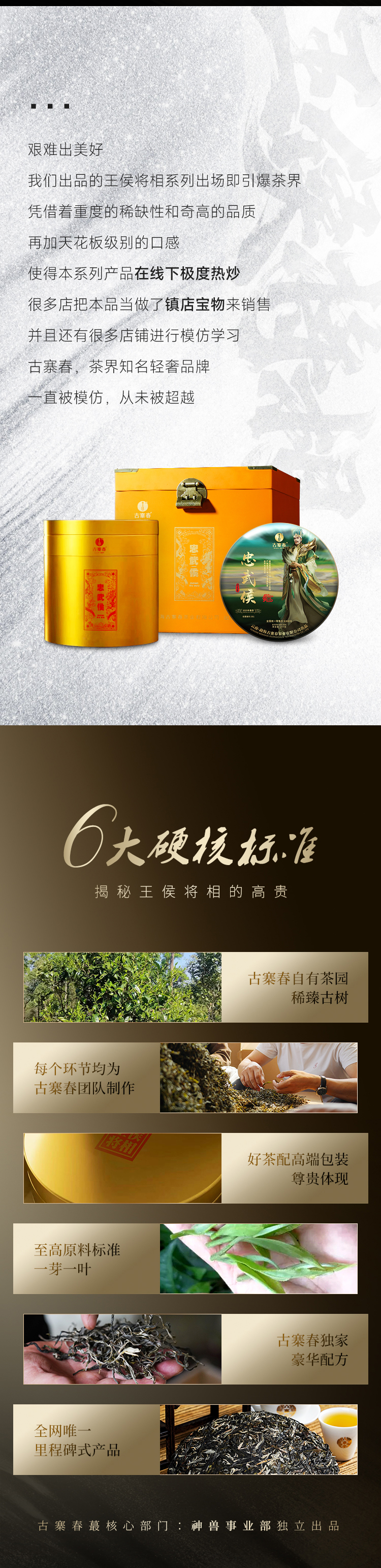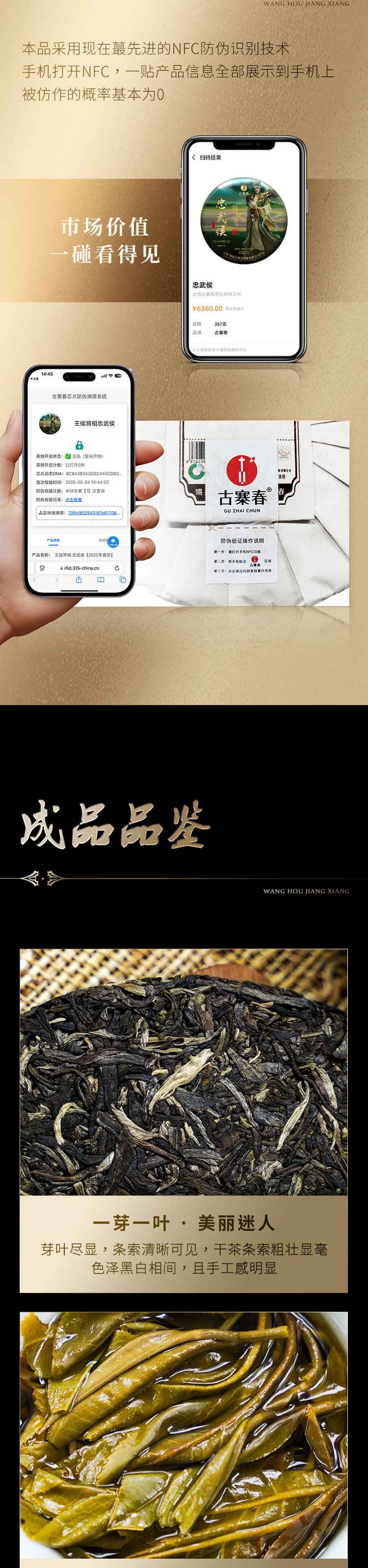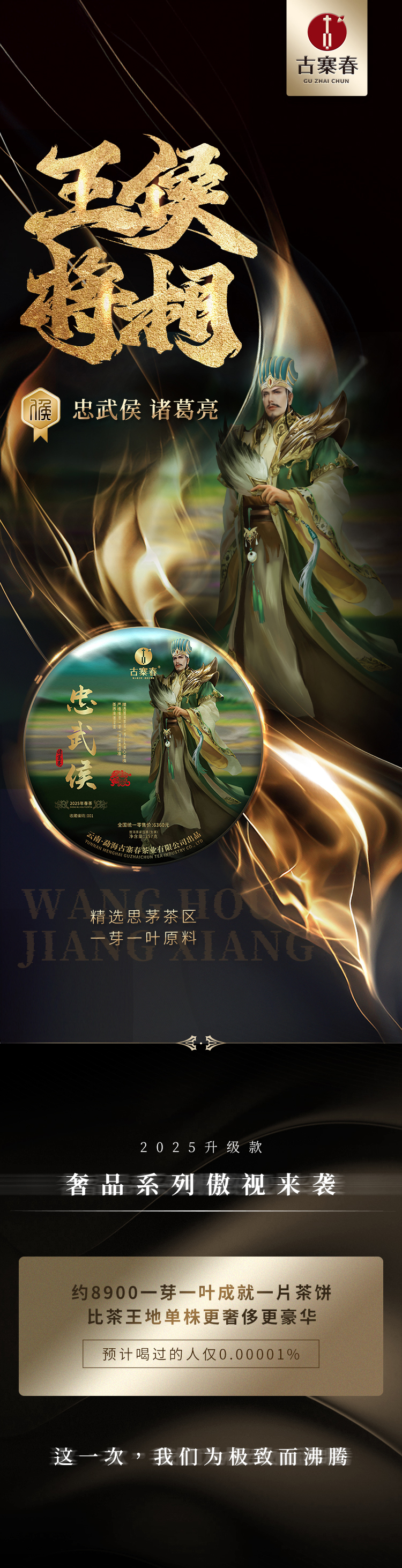 【王侯将相—忠武侯:诸葛亮】约8900一芽一叶成就一片茶饼 比茶王地单株更奢侈豪华!2025年头春茶,普洱茶区,357克/饼茶,一箱内含6饼茶 拍5箱发6箱