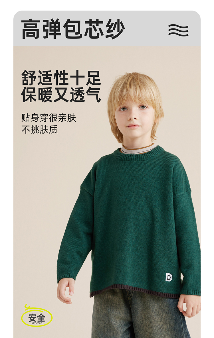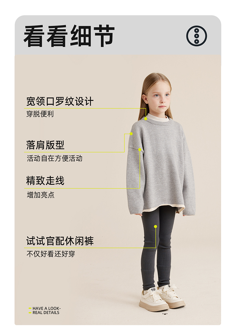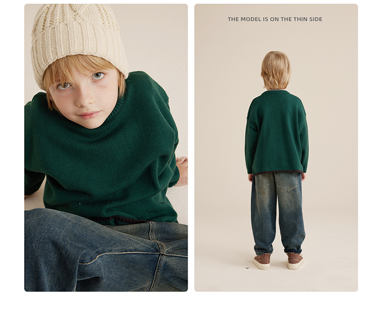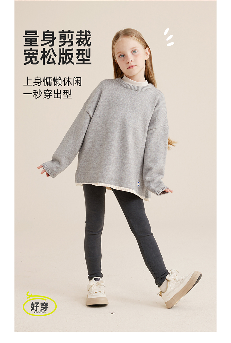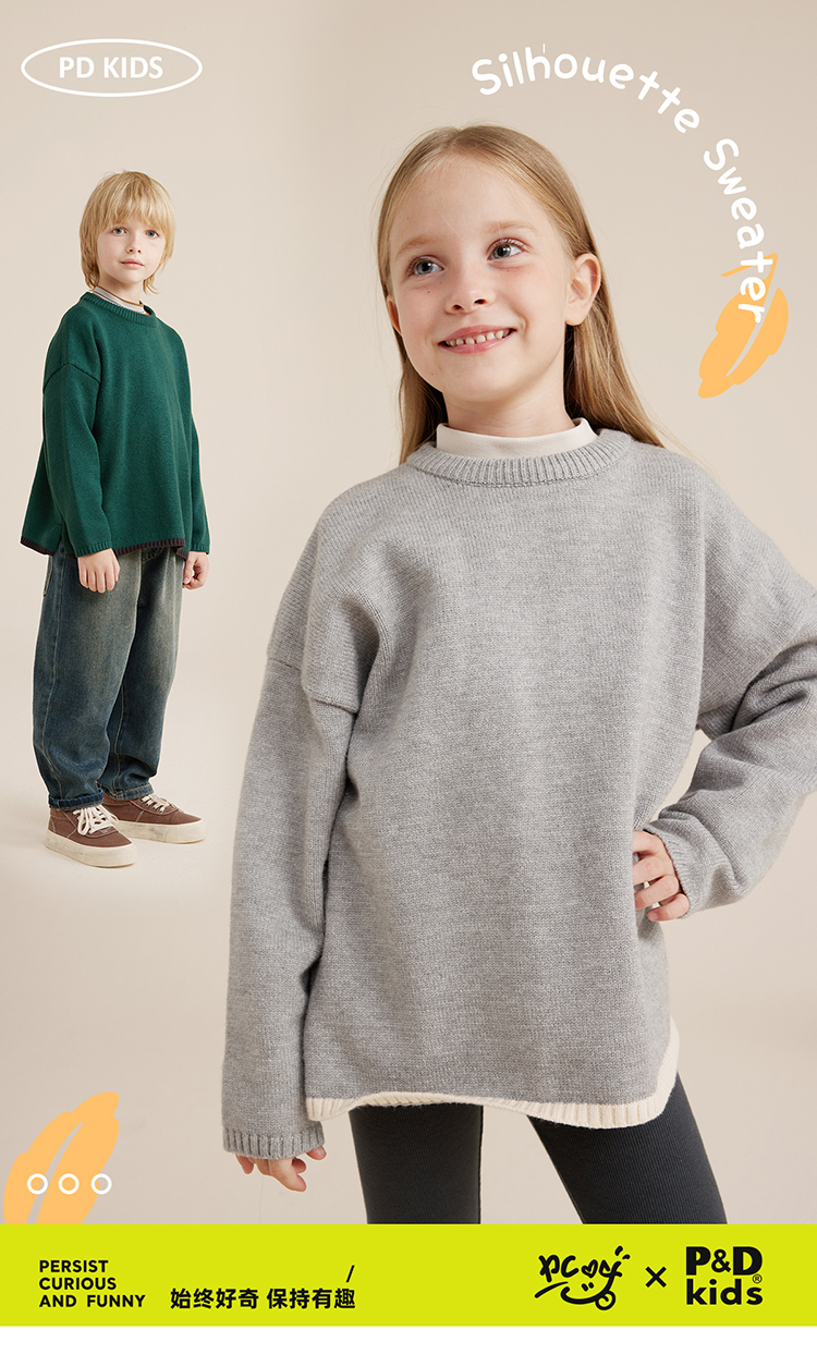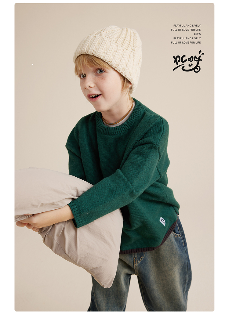 【秋上新】【慵懒休闲廓形】儿童圆领休闲字母绣花毛衣PQMY2311