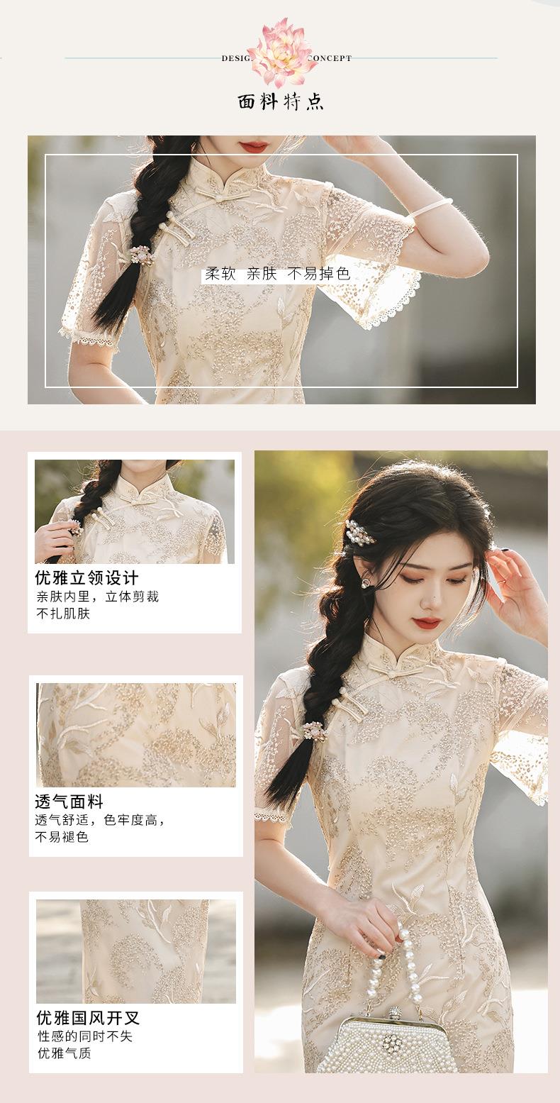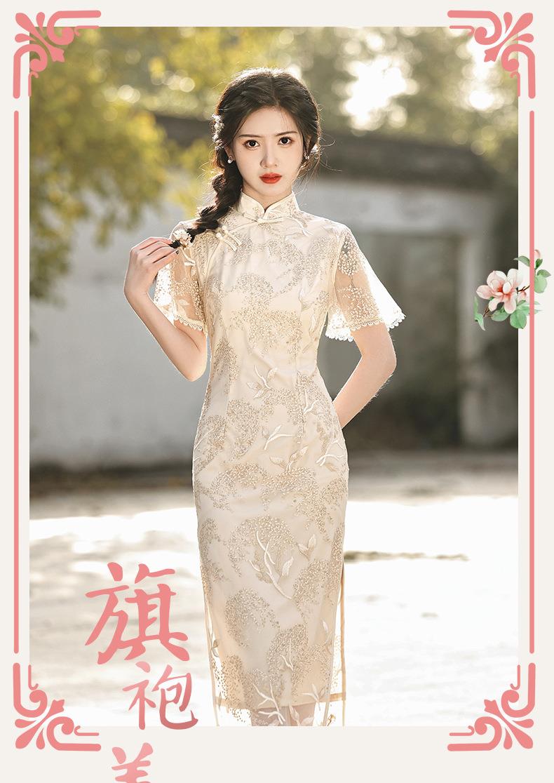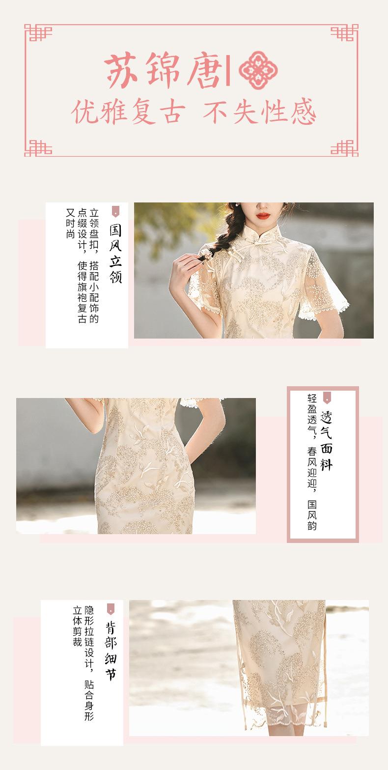 2023春夏款双层网纱刺绣中长款旗袍连衣裙清新文艺少女旗袍年轻款