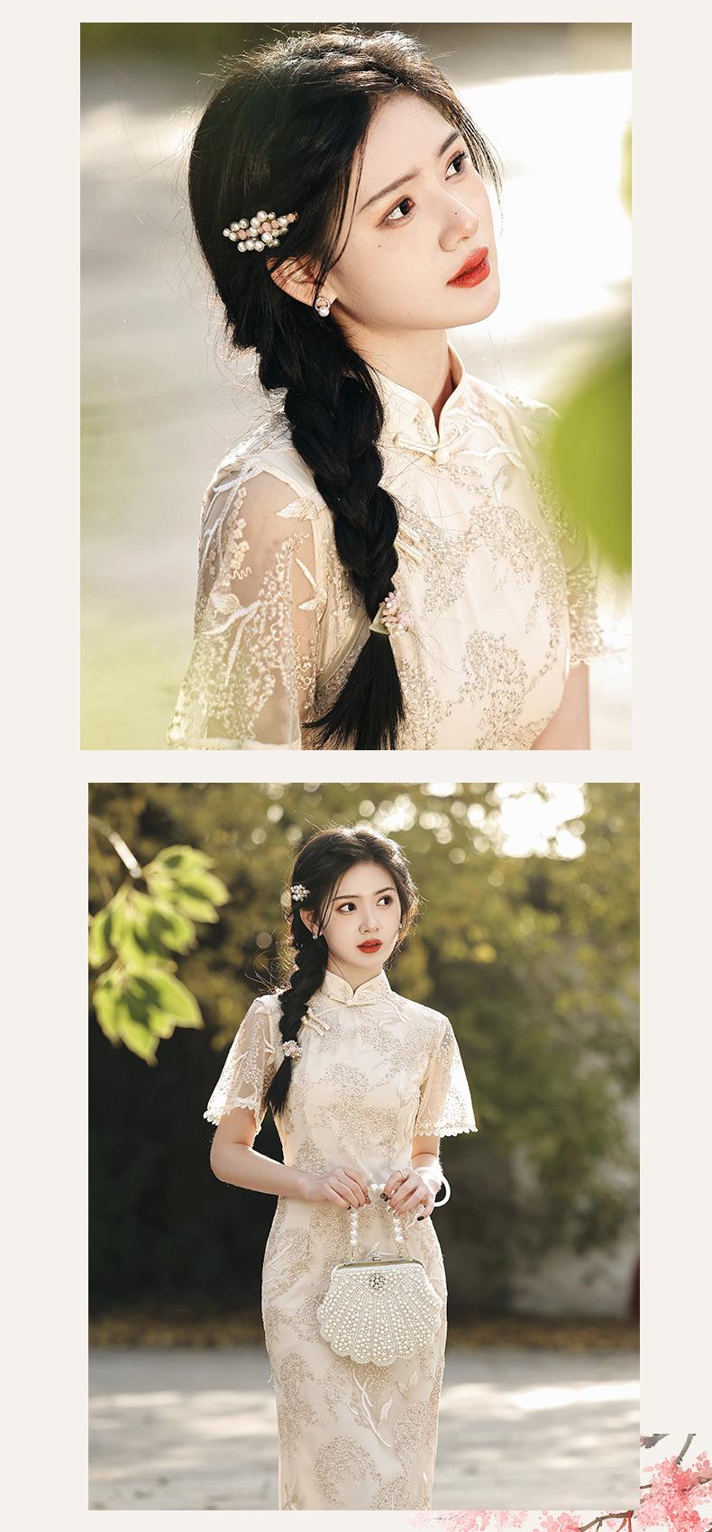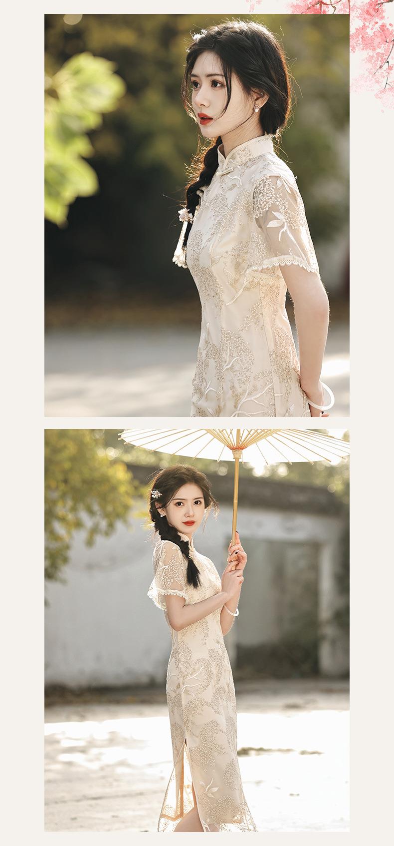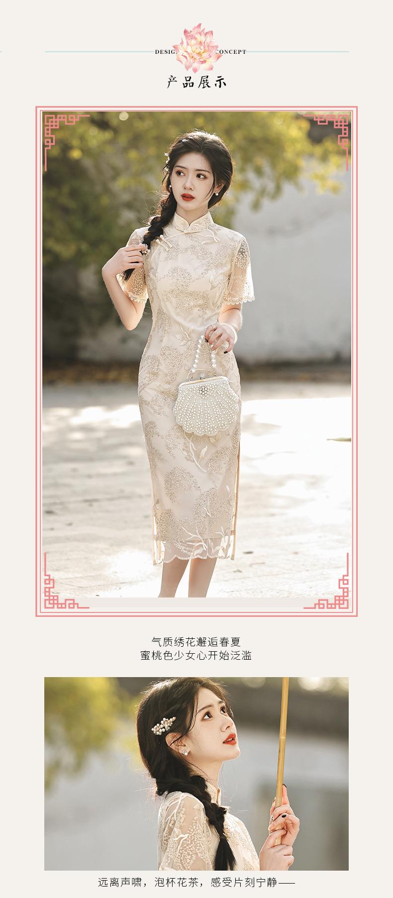 2023春夏款双层网纱刺绣中长款旗袍连衣裙清新文艺少女旗袍年轻款