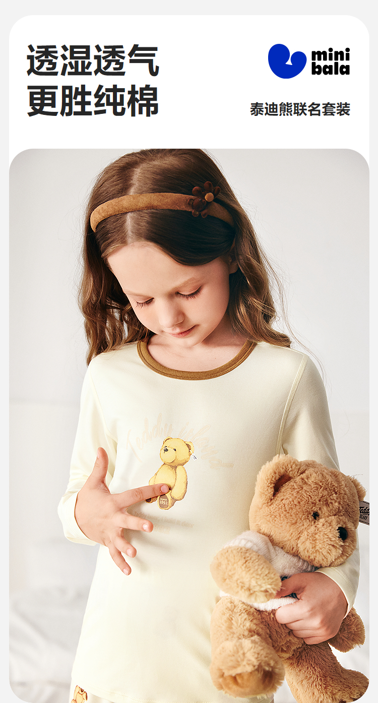 【泰迪熊IP联名】迷你巴拉儿童内衣套装男女童宝宝秋衣秋裤2025年