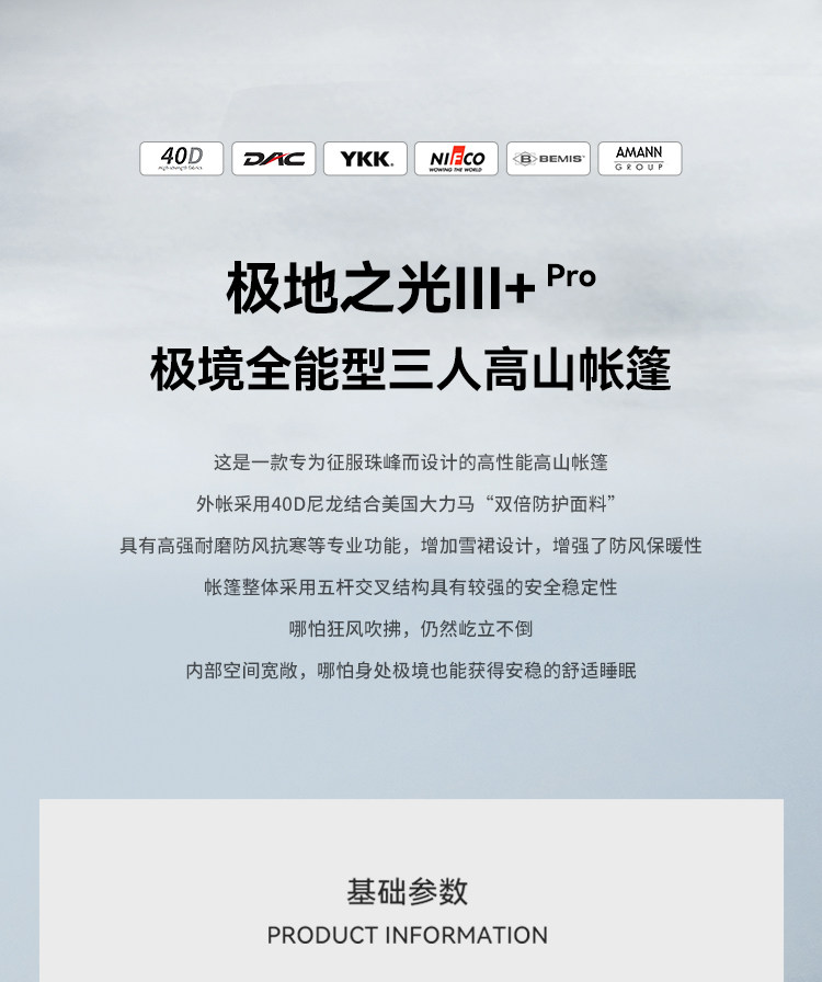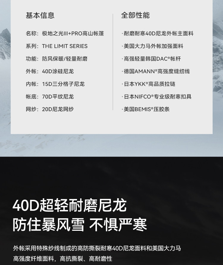 【极地之光IIIpro】伯希和THE LIMIT SERIES系列极境高山帐篷