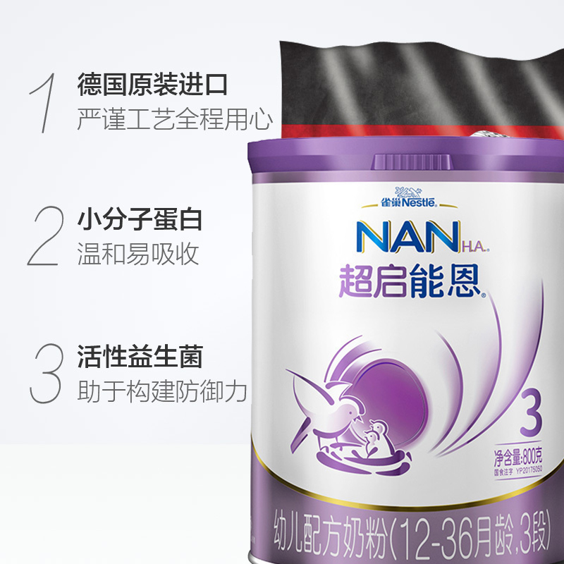 HNMG 德国雀巢超级能恩BEBAHA适度水解蛋白婴幼儿低敏奶粉3段 800g