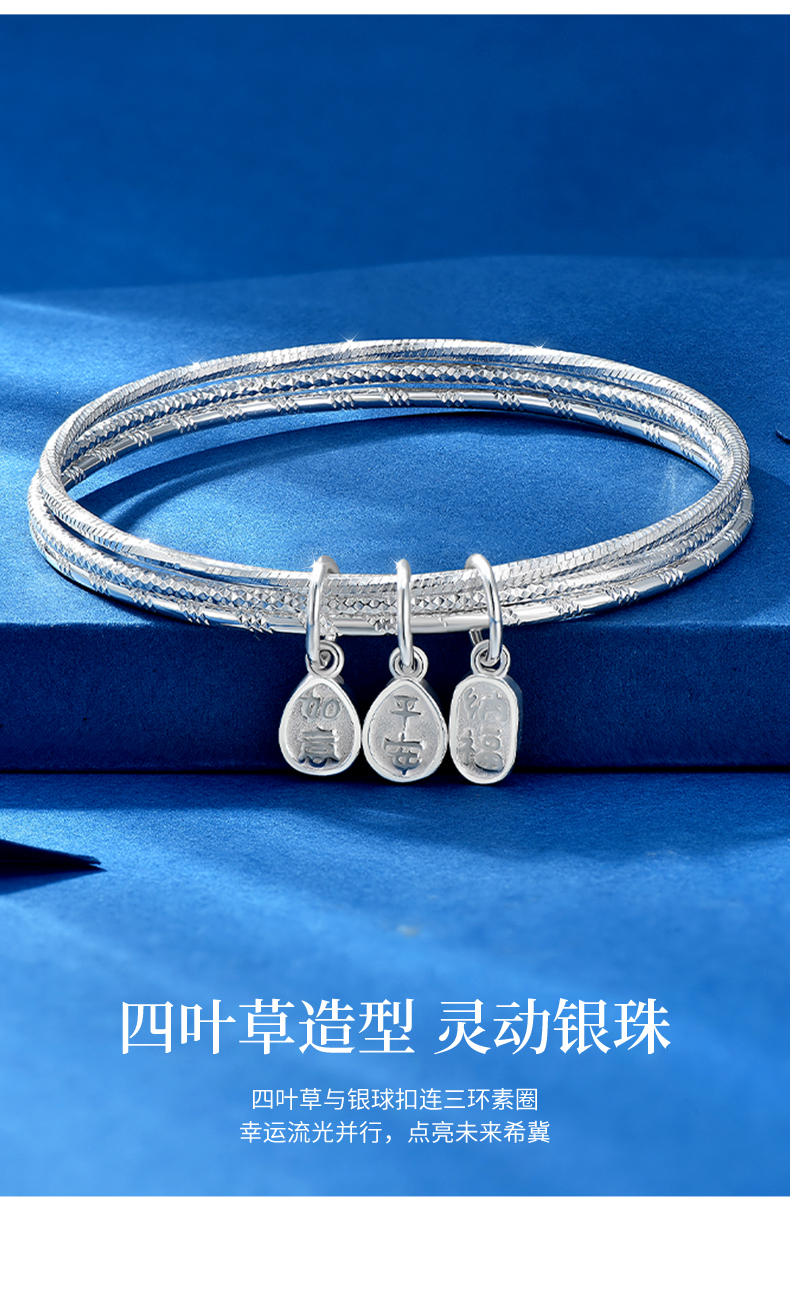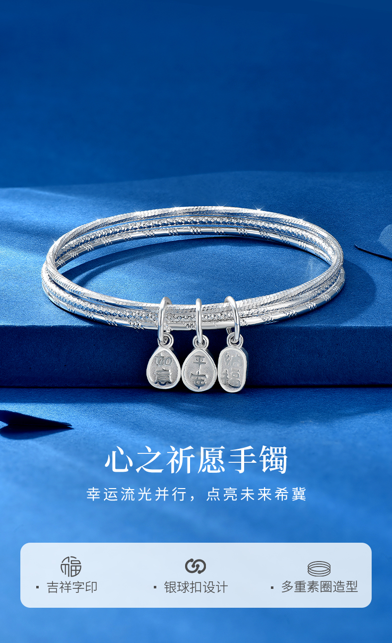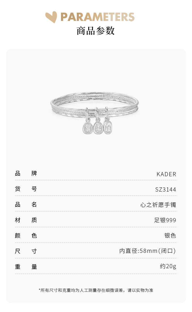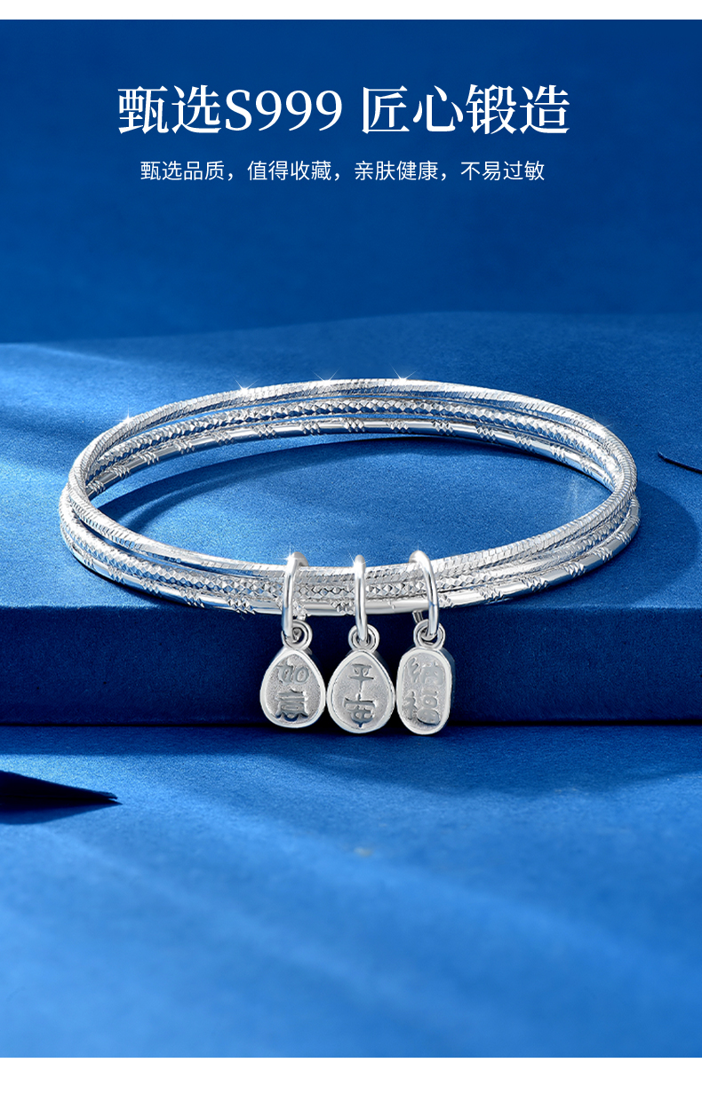 卡蒂罗/KADER 足银999配证书 心之祈愿手镯 新中式国风平安纳福吉祥闭口素圈银镯 三生三世大克重好运配饰