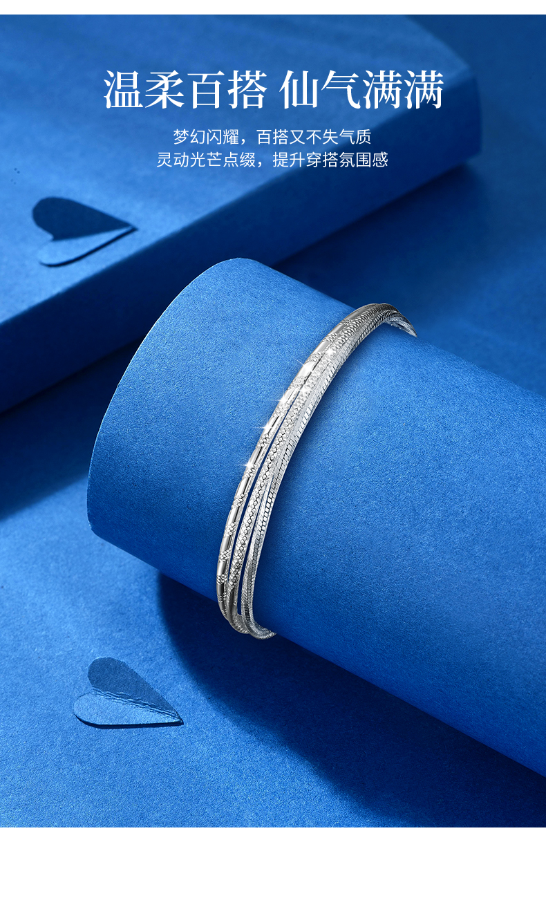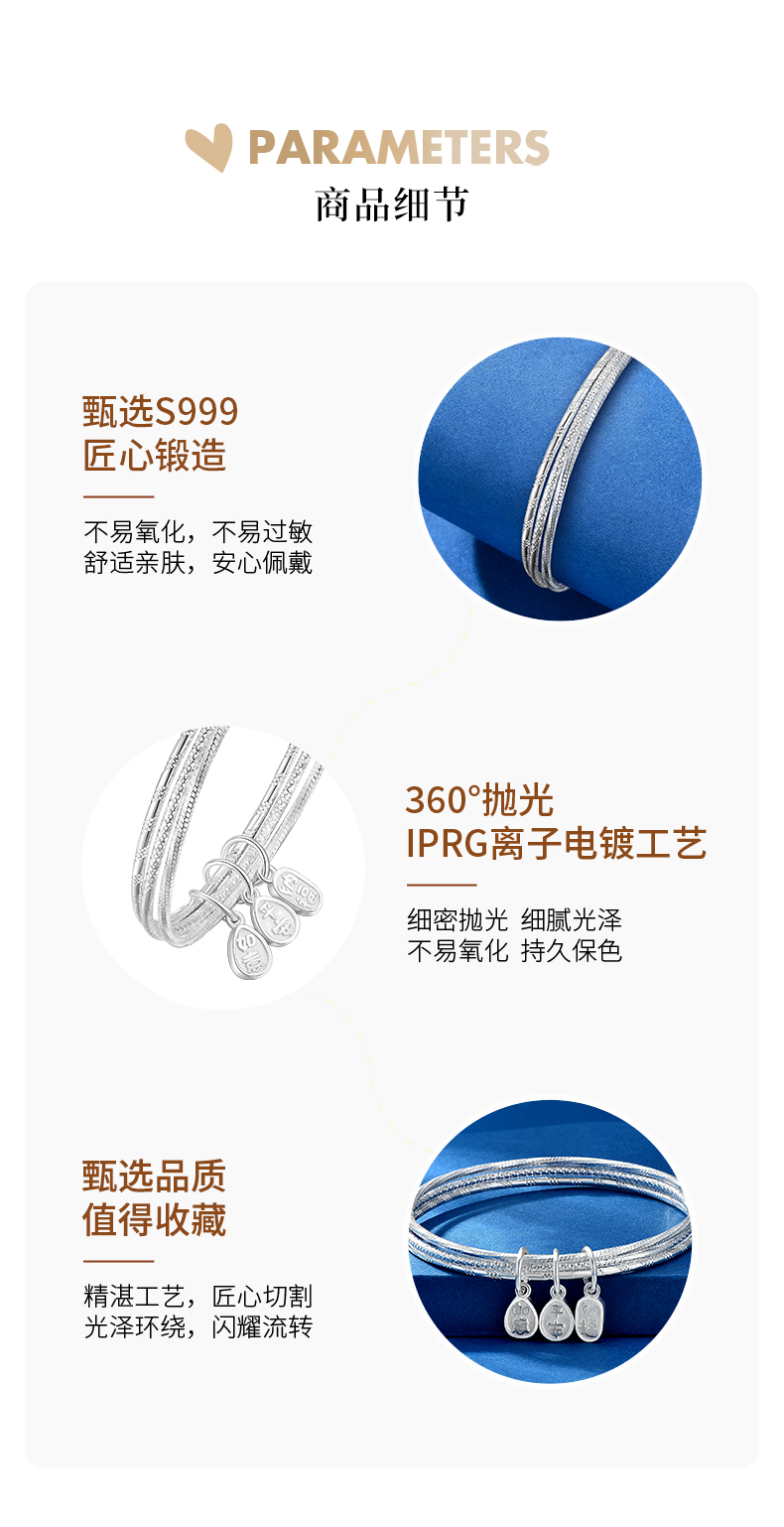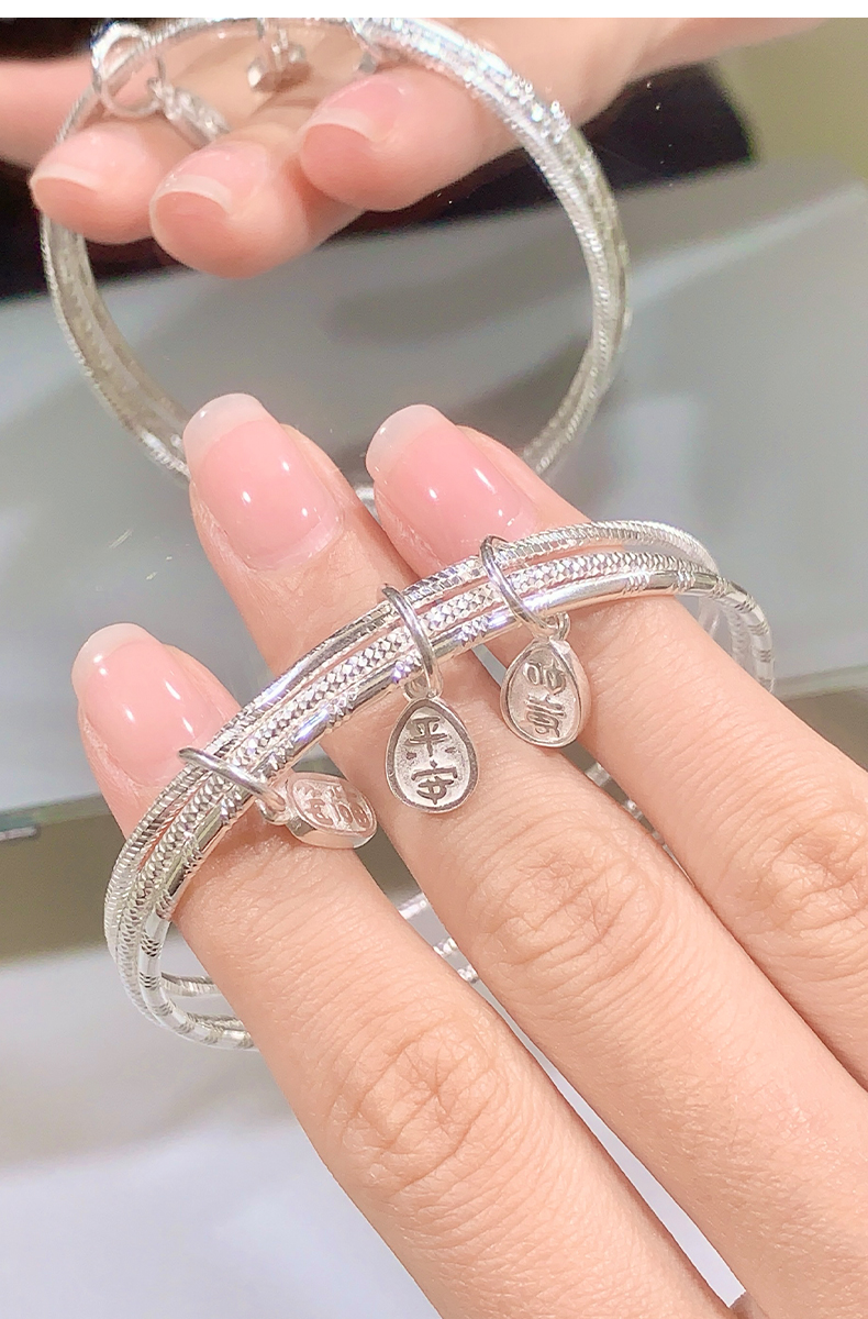 卡蒂罗/KADER 足银999配证书 心之祈愿手镯 新中式国风平安纳福吉祥闭口素圈银镯 三生三世大克重好运配饰
