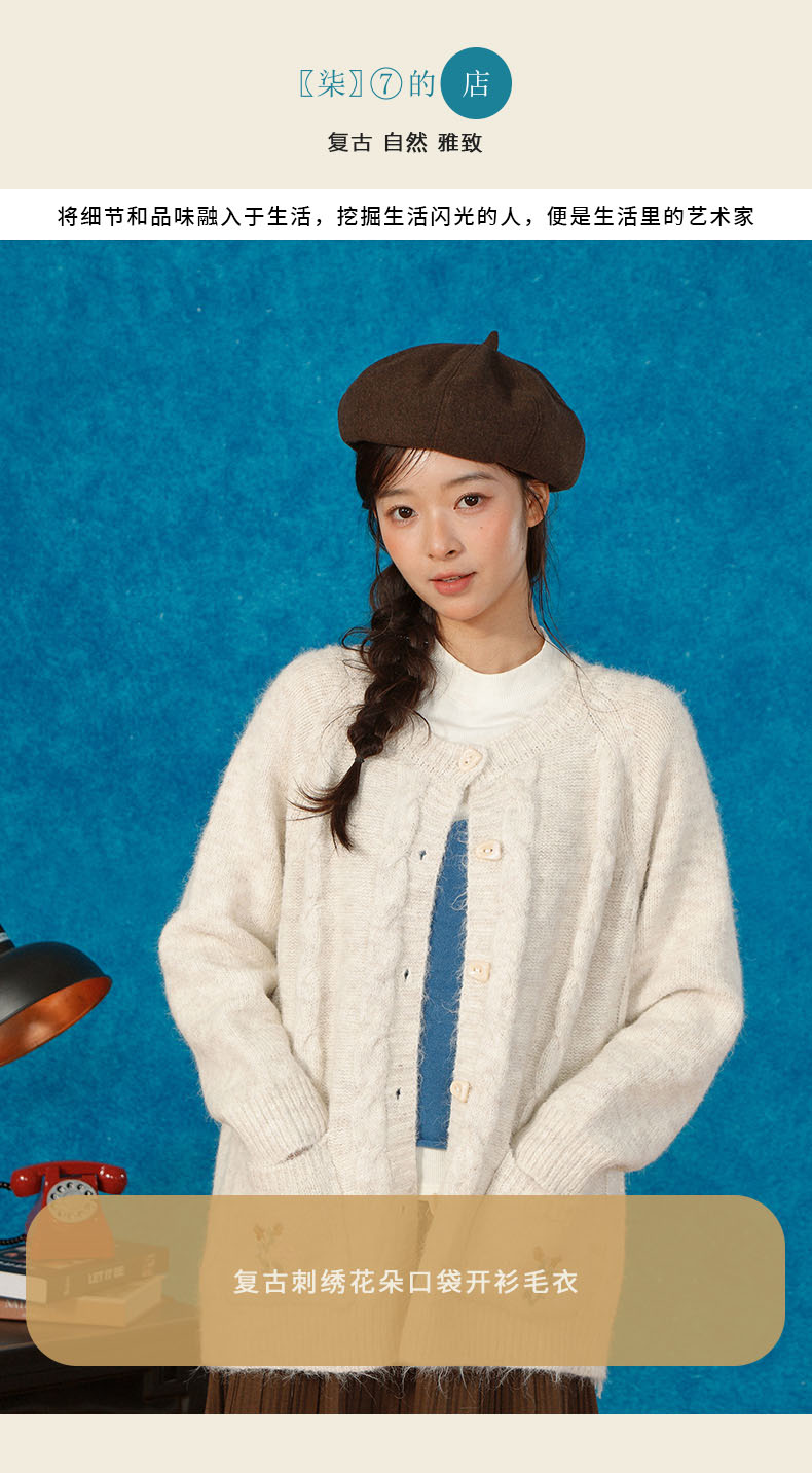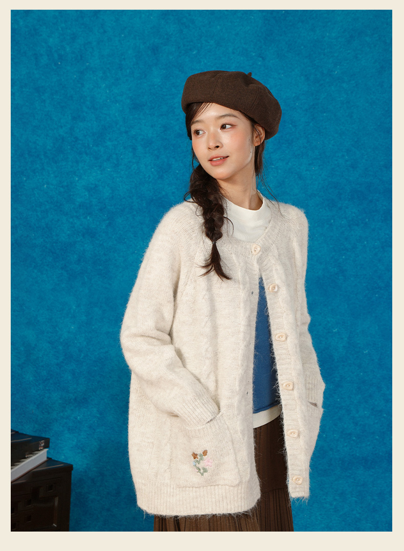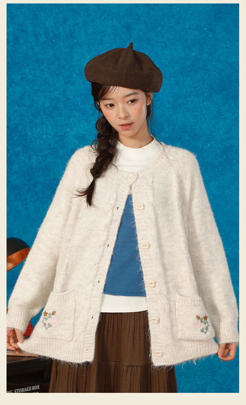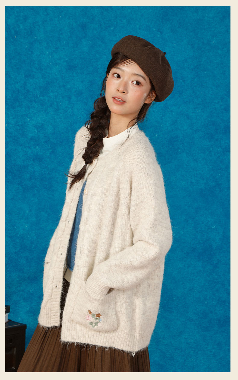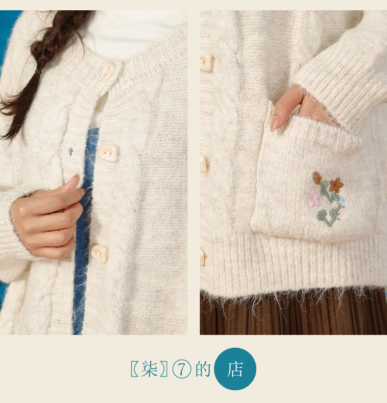 复古刺绣花朵口袋开衫毛衣-纪念日百货门店同款166543232