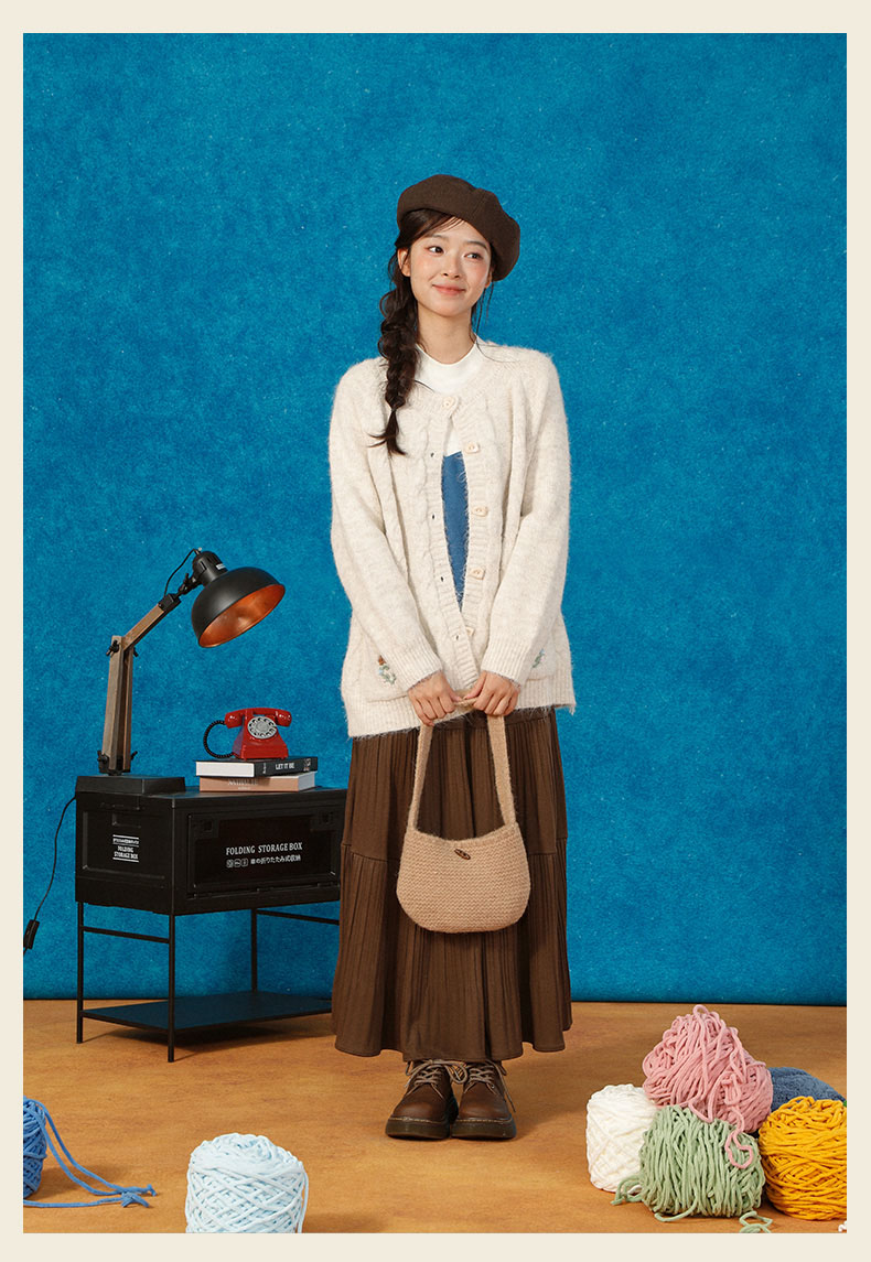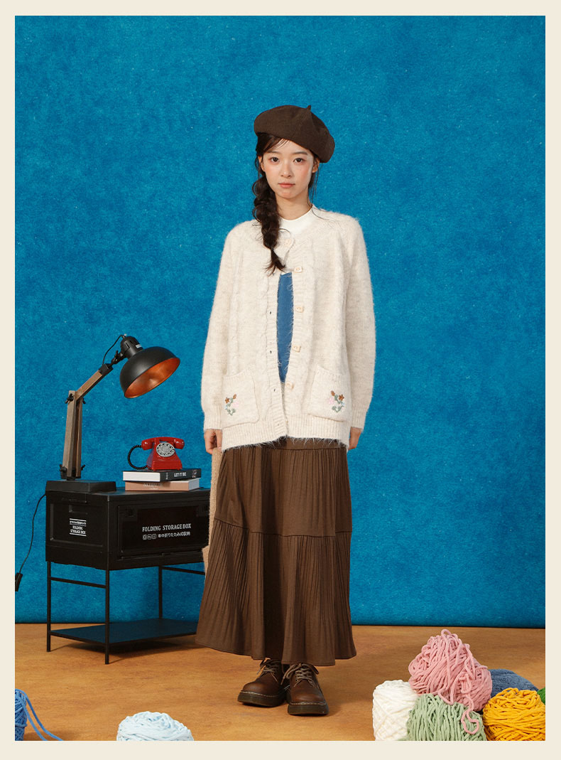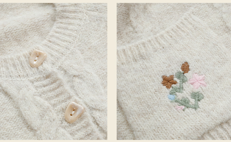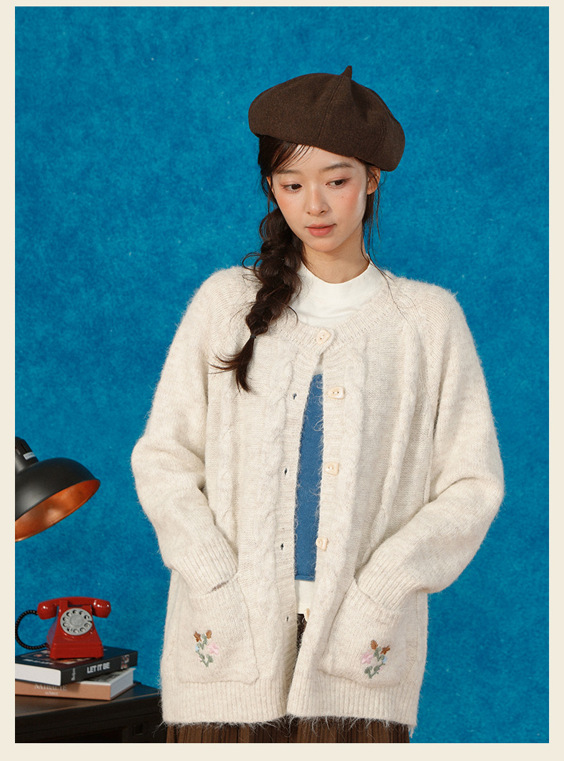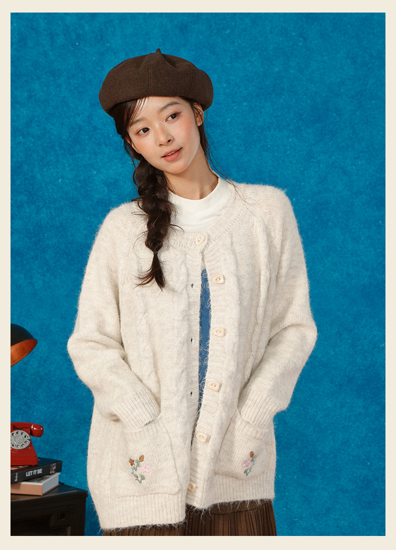 复古刺绣花朵口袋开衫毛衣-纪念日百货门店同款166543232