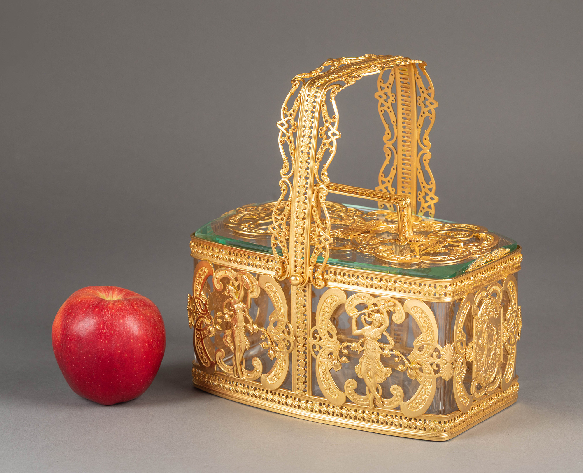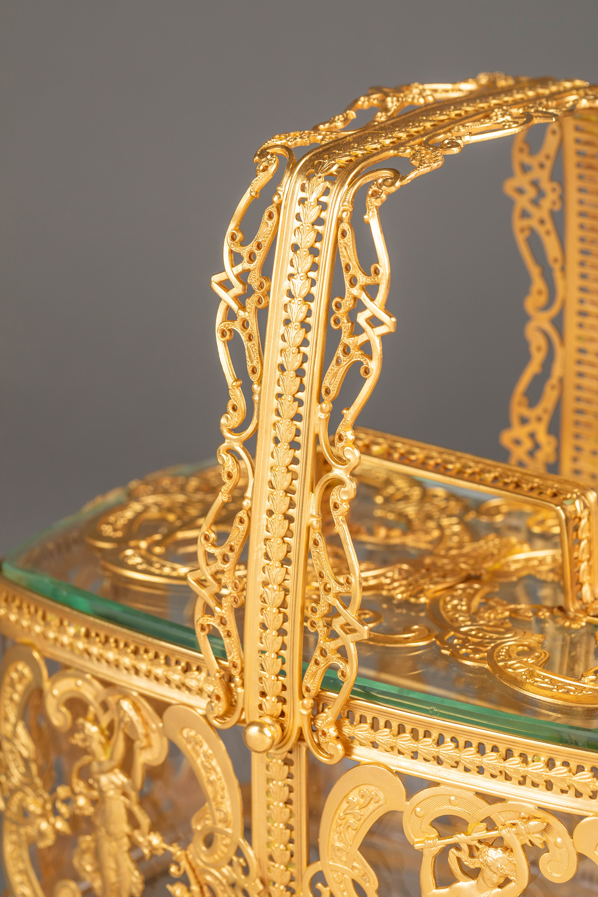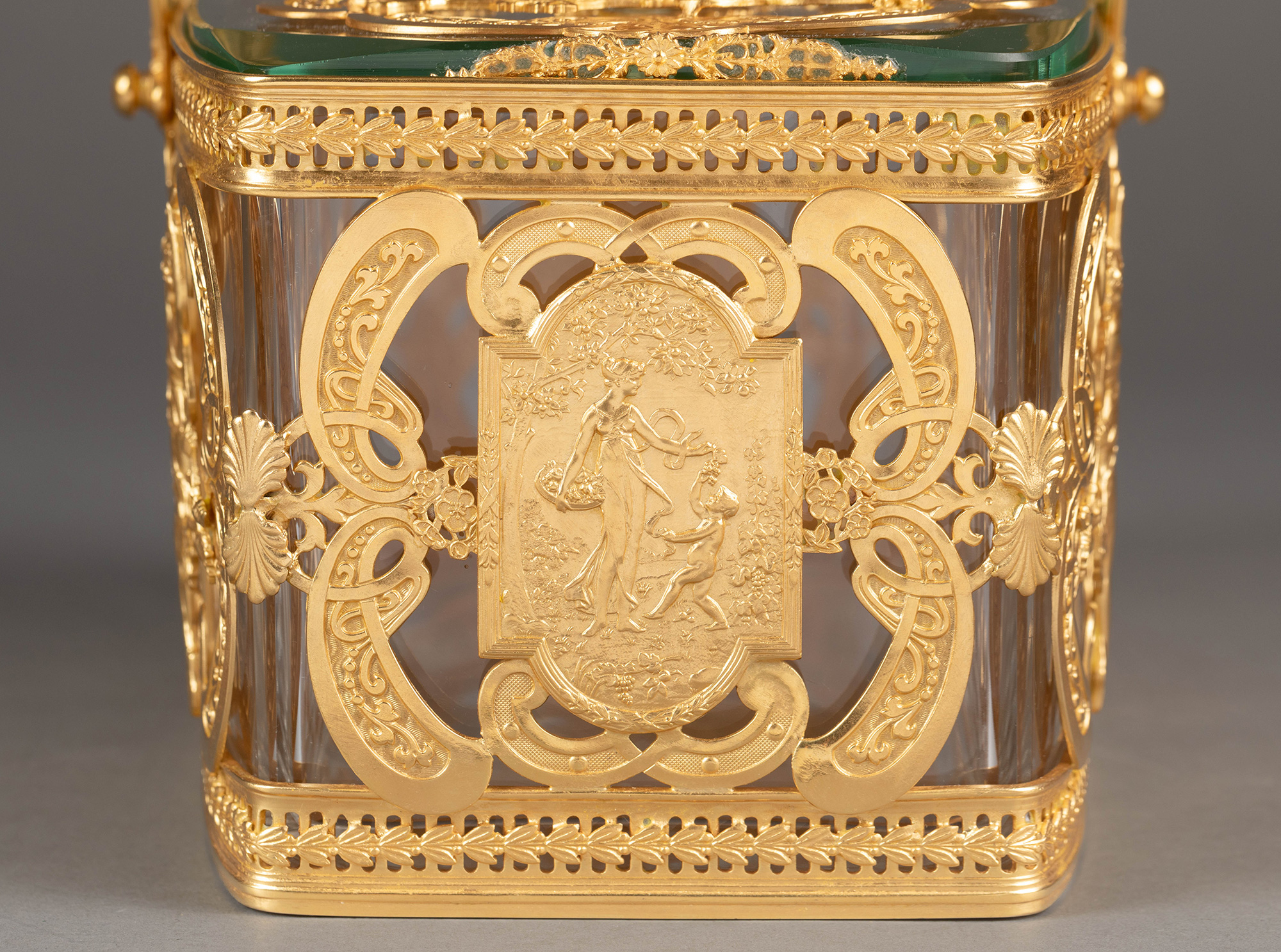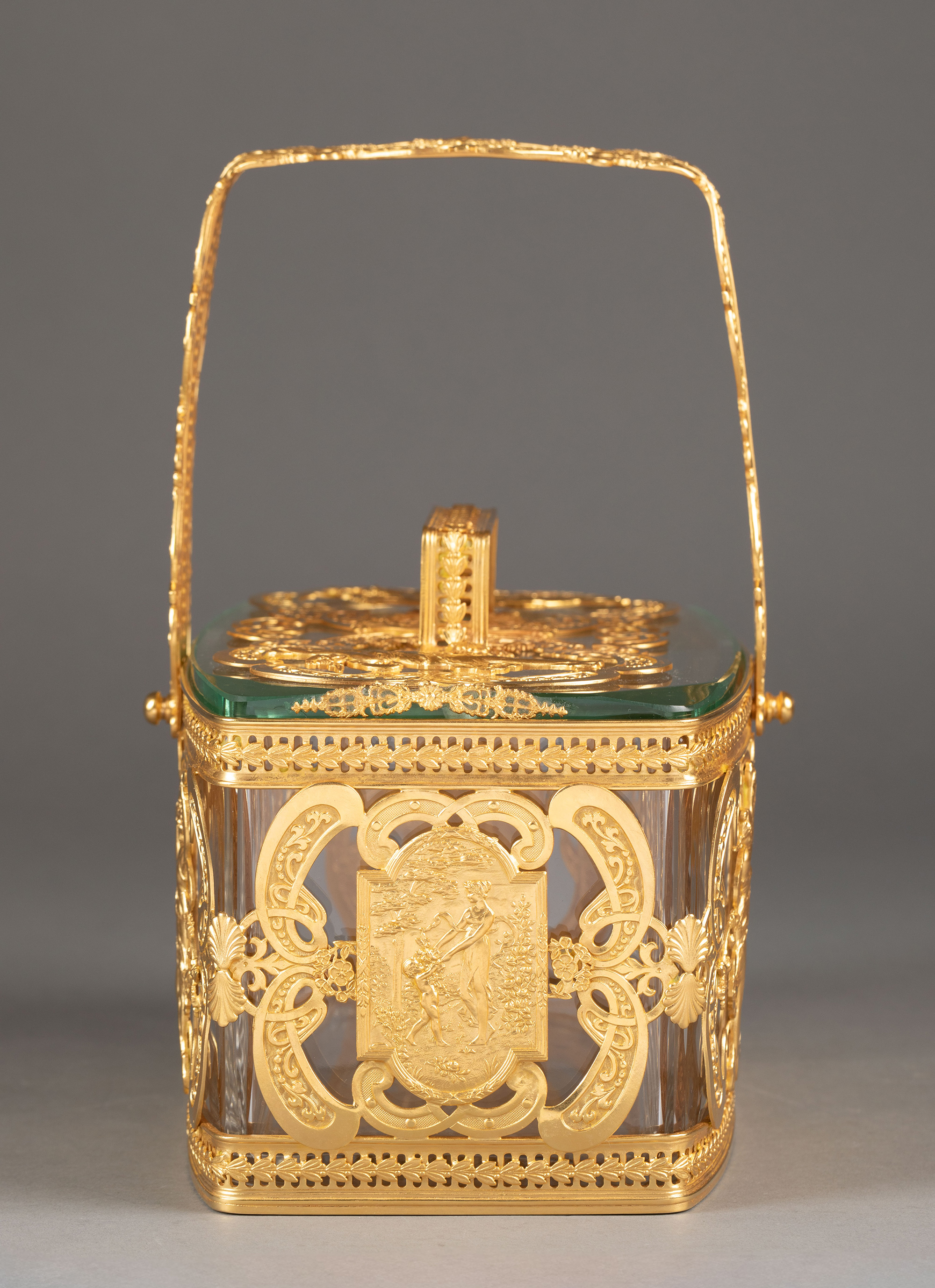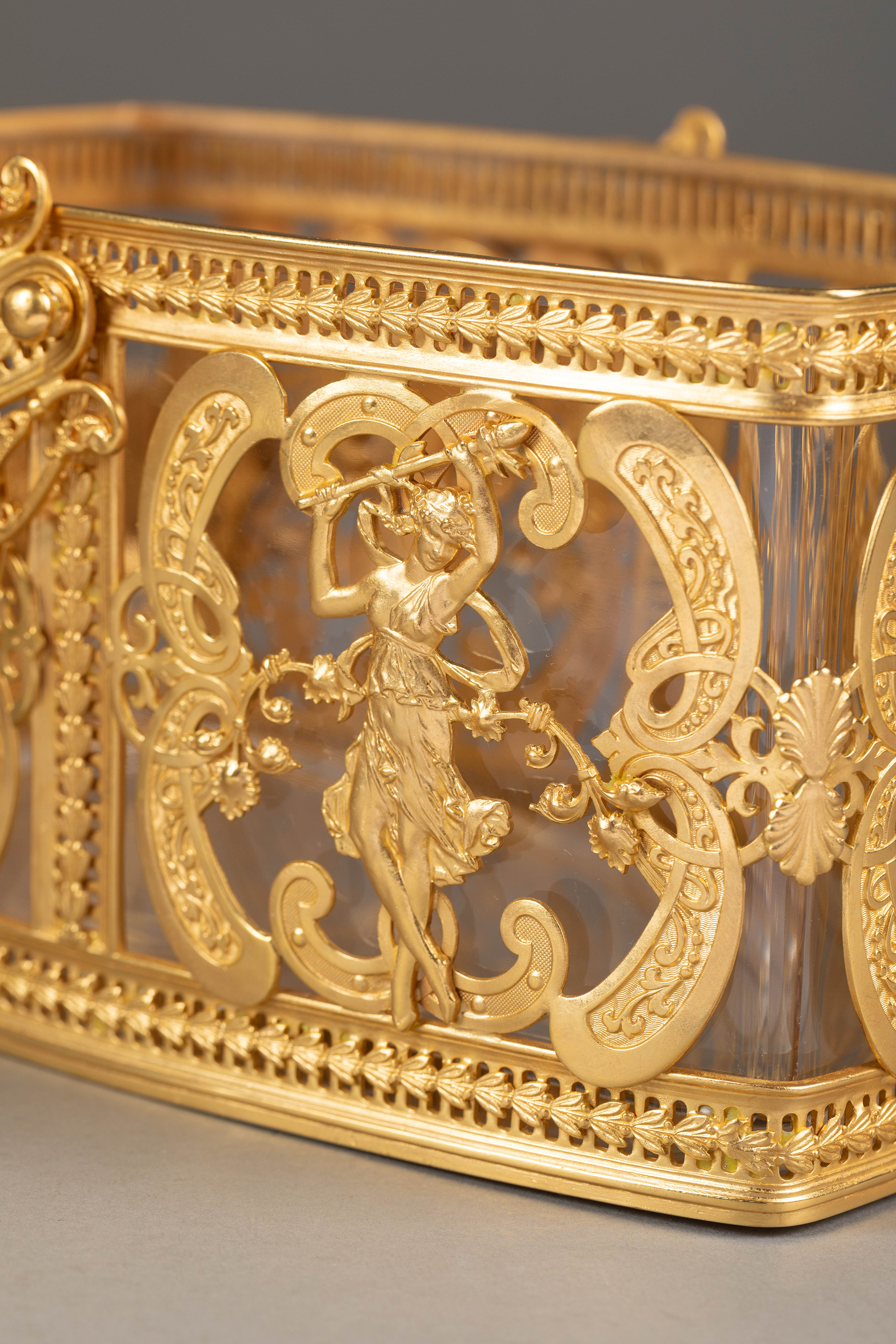 20世纪法国出品洛可可风格光影乐章主题铜鎏金精雕水晶首饰盒