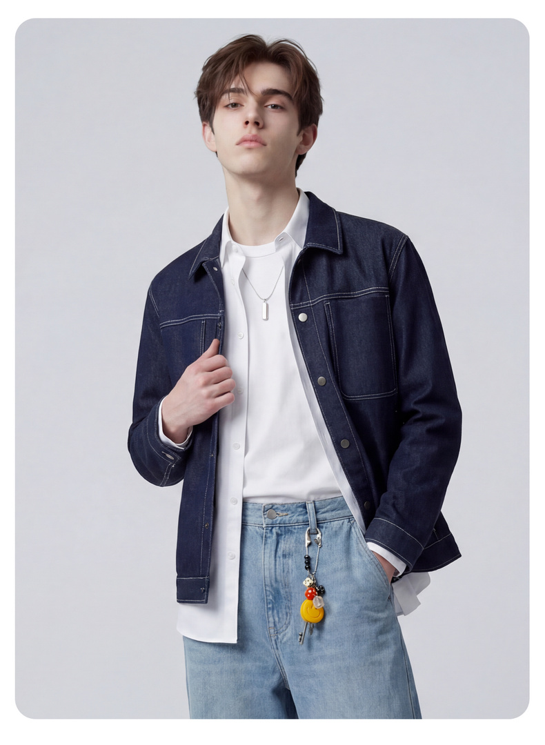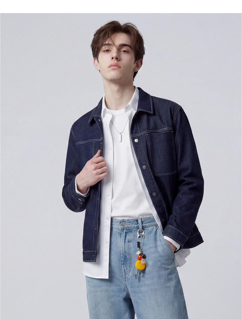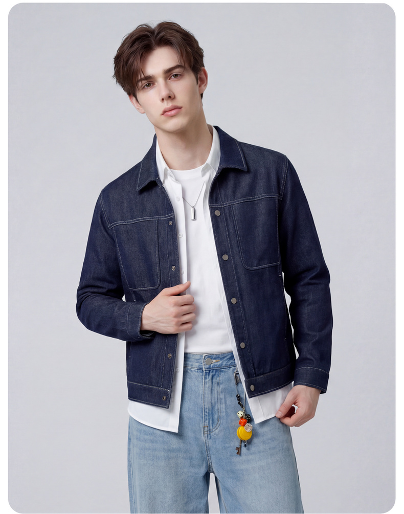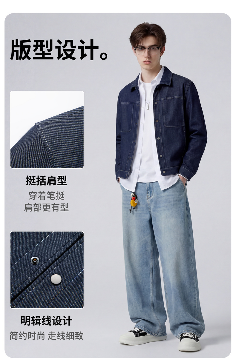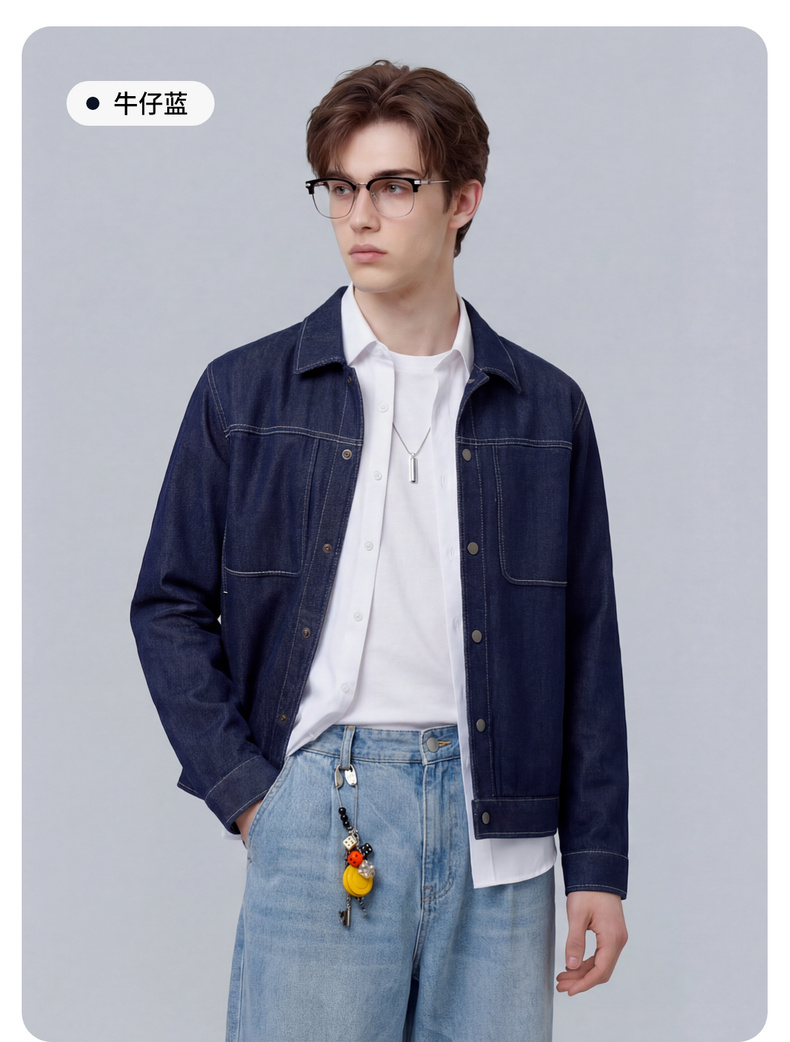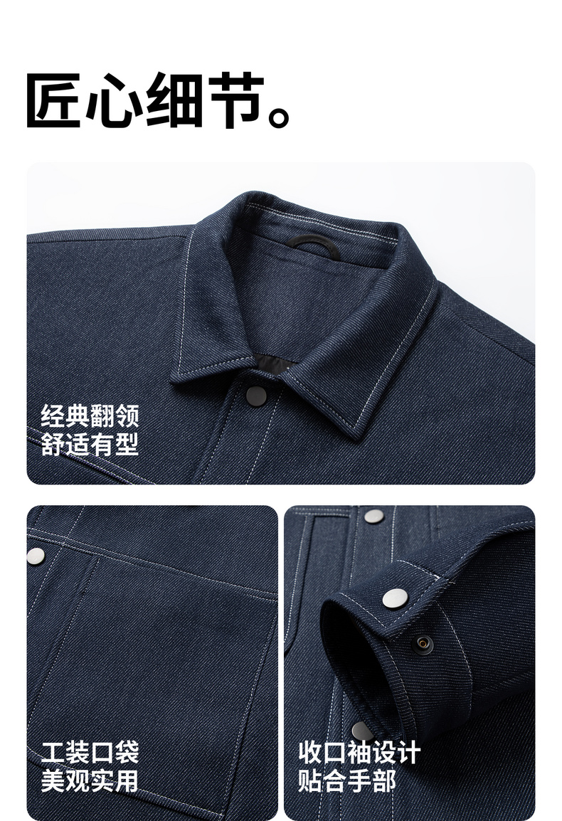 【易打理】圣得西男士工装牛仔翻领夹克2026年春季新款休闲外套