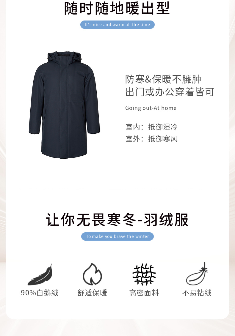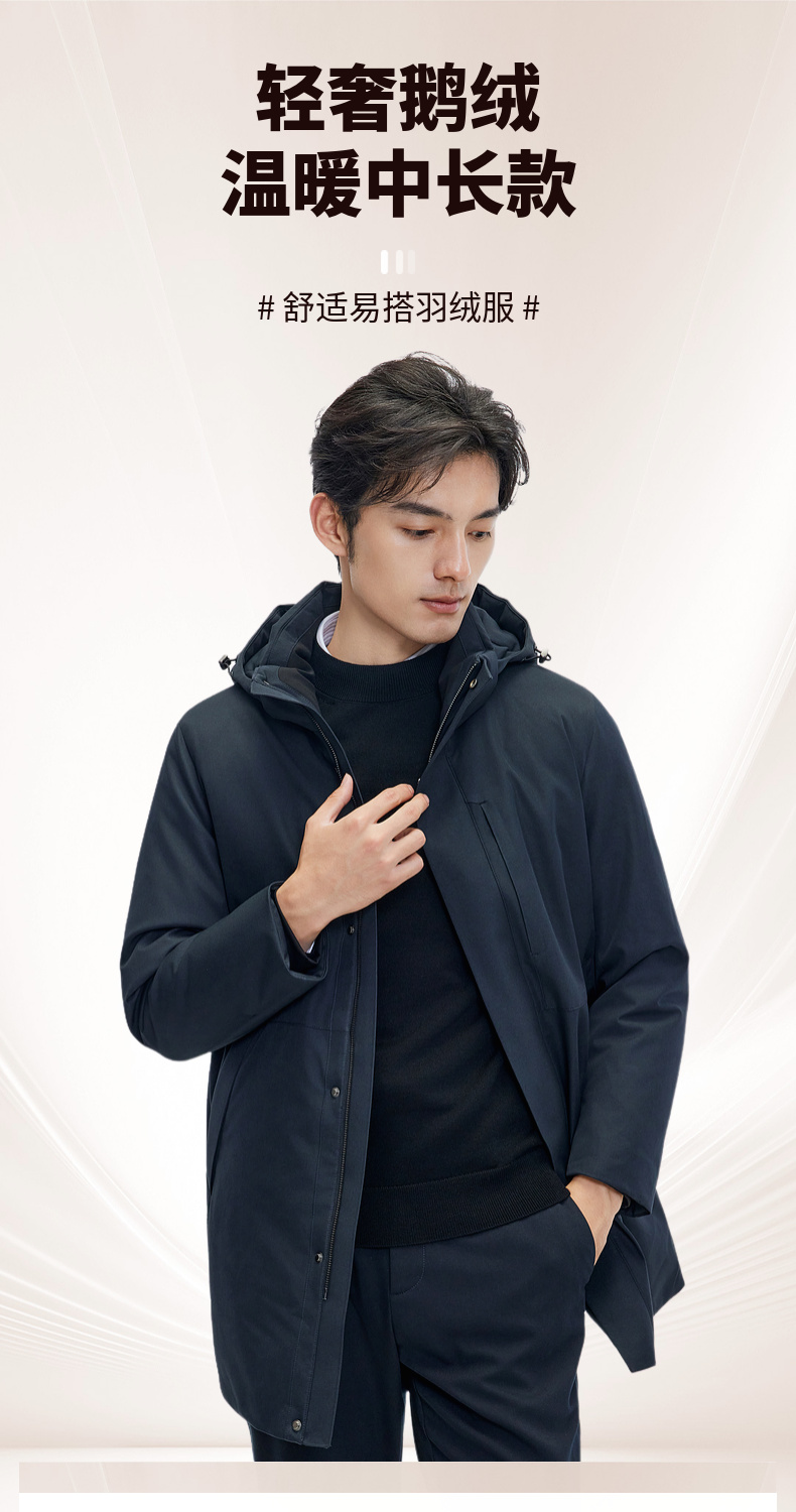 【门店同款&鹅绒】圣得西2025年冬季男士中长款连帽羽绒服外套