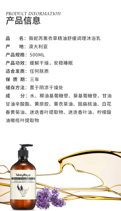 【中欧班列精选】澳洲原装进口薇妮芮薰衣草精油舒缓调理沐浴乳500ml、100ml澳洲原装进口 精油护发 温和清洁 舒缓敏感