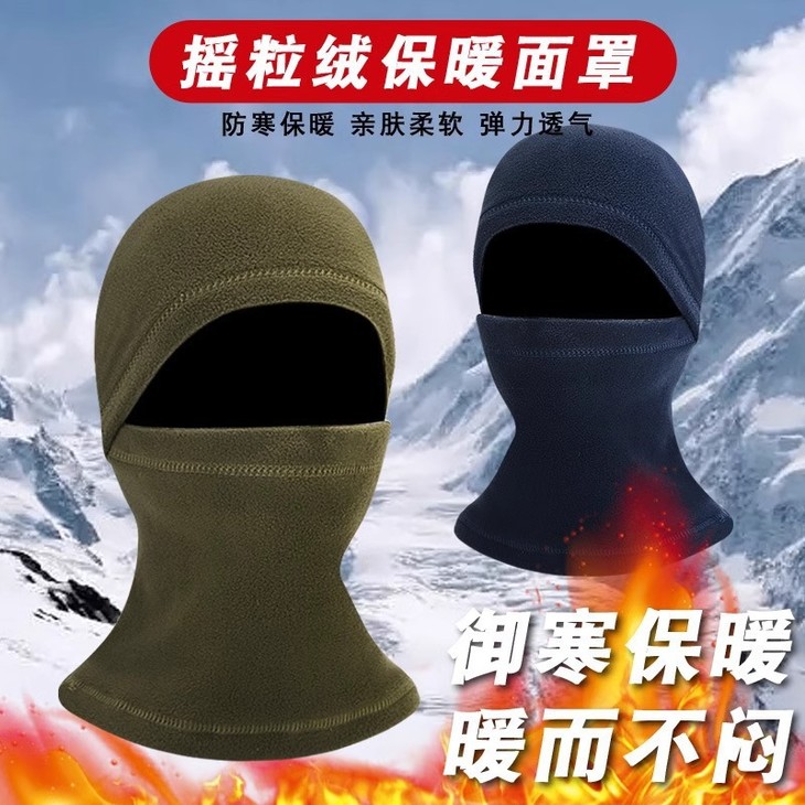 拍1发2 冬季加绒保暖面罩户外运动摇粒绒头套围脖套护颈一体防风骑行面罩防寒