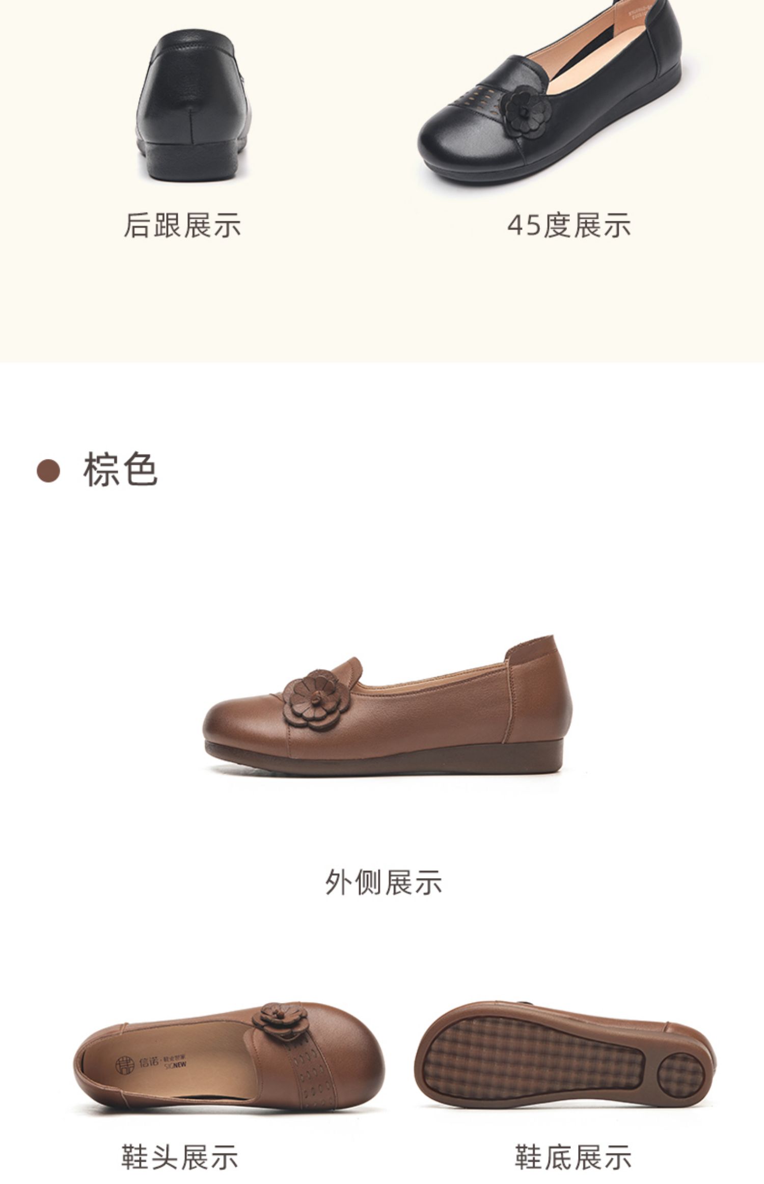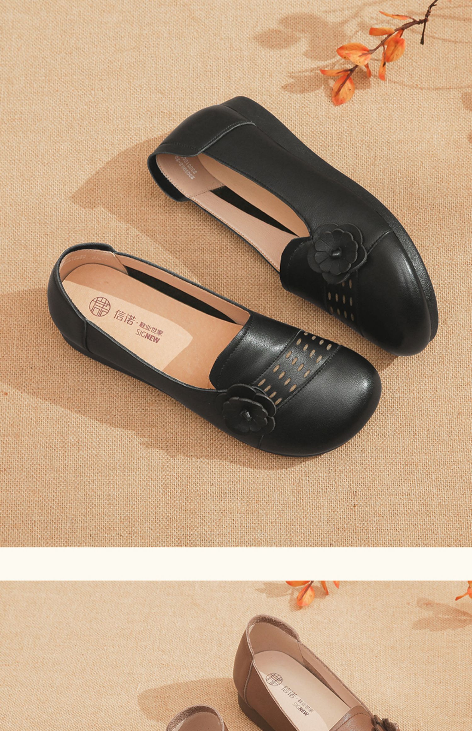 信诺真皮舒适女鞋2023新款秋季软底妈妈鞋子单鞋拇外翻中老年皮鞋23Q5992-20