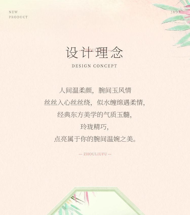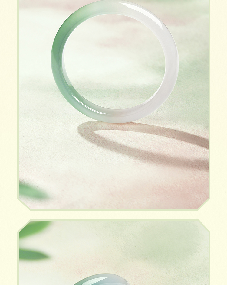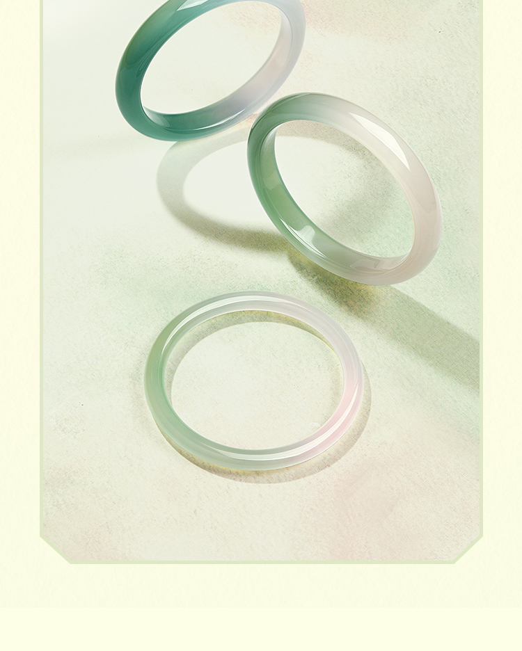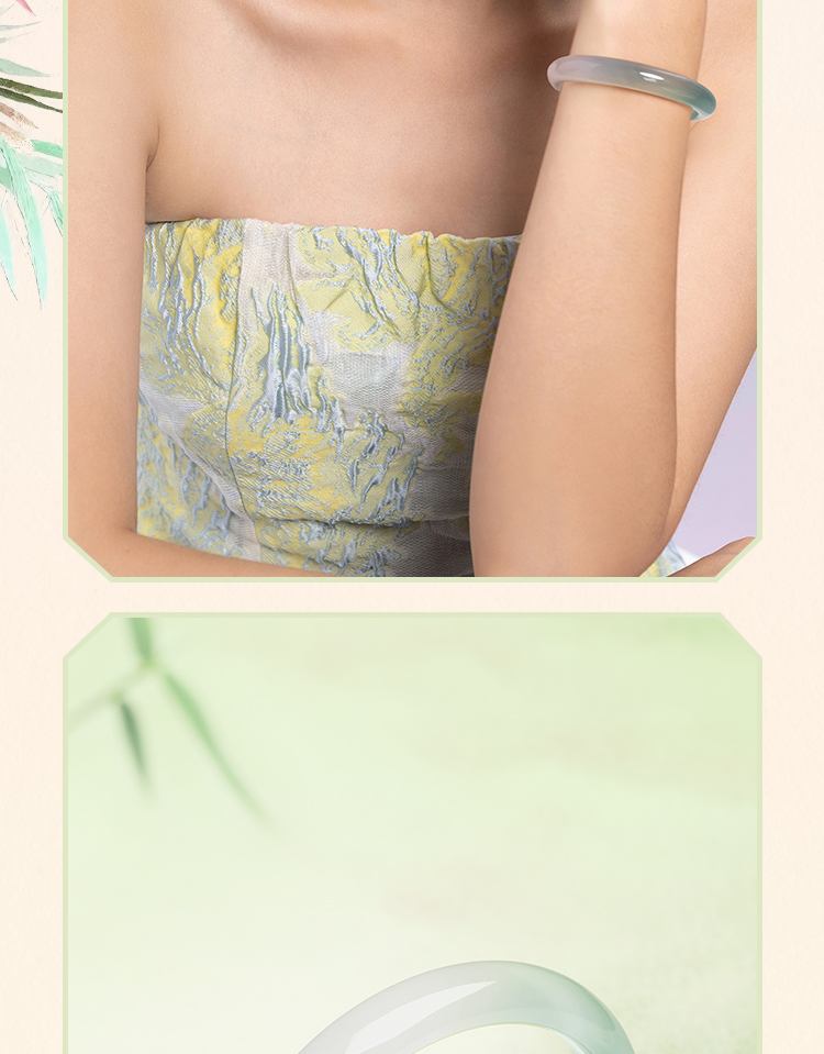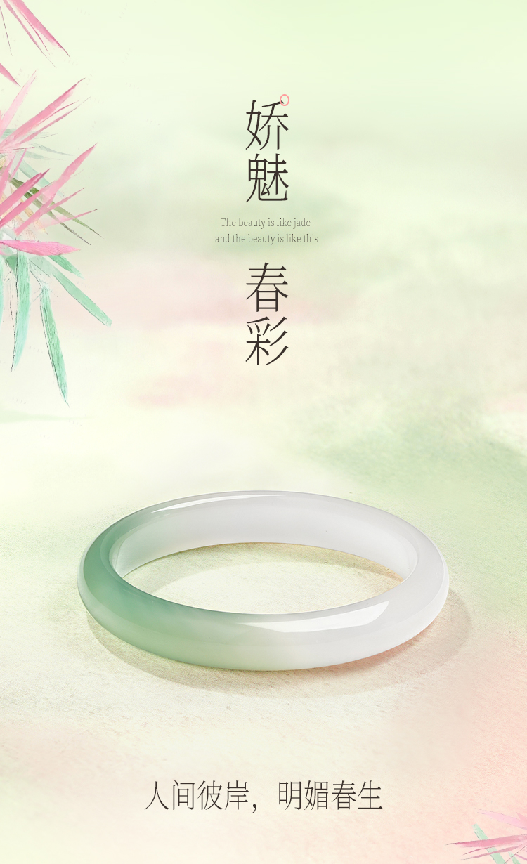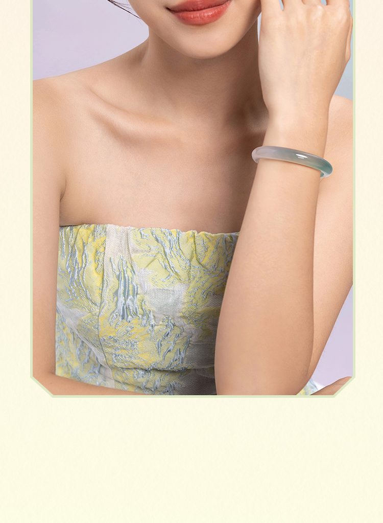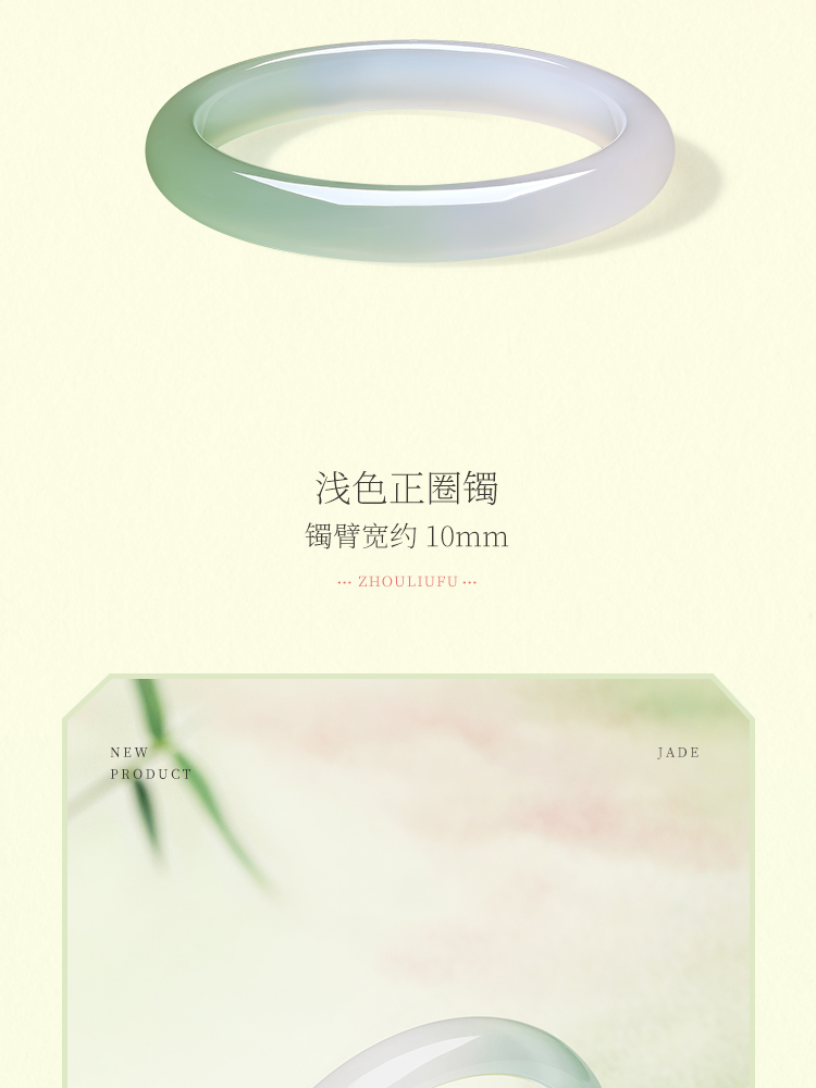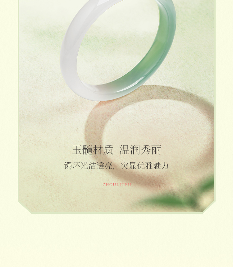 周六福半山半水玉髓手镯浅白绿宽条新中式国风送女友节日礼物