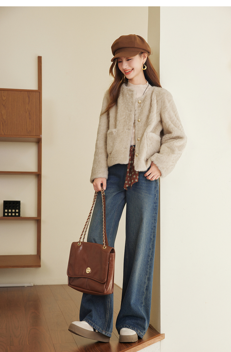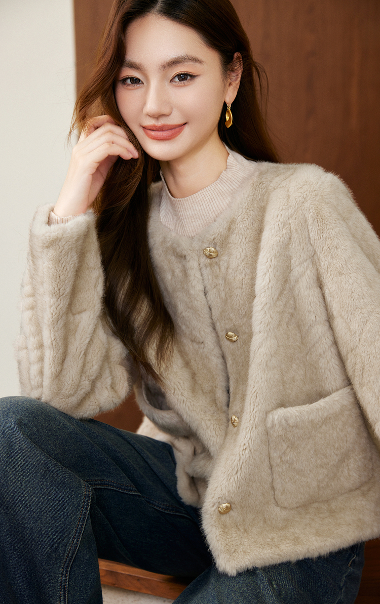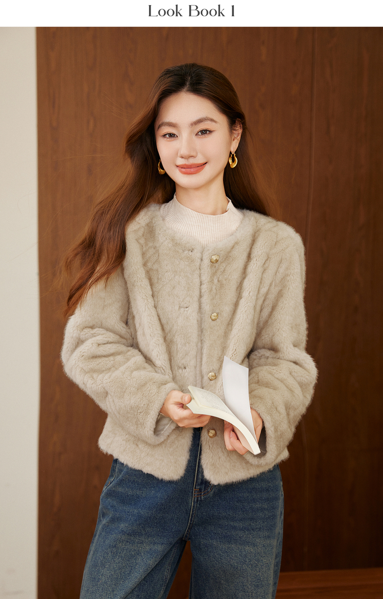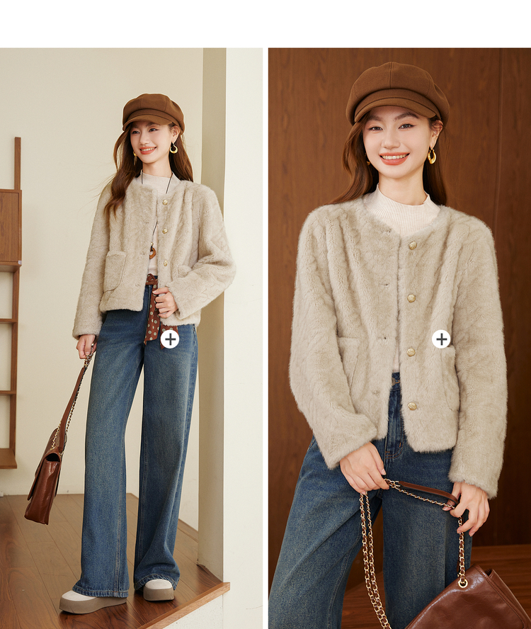 【11/26新品】熙世界小香风仿貂毛皮毛一体短外套女冬季新款环保皮草毛茸茸上衣