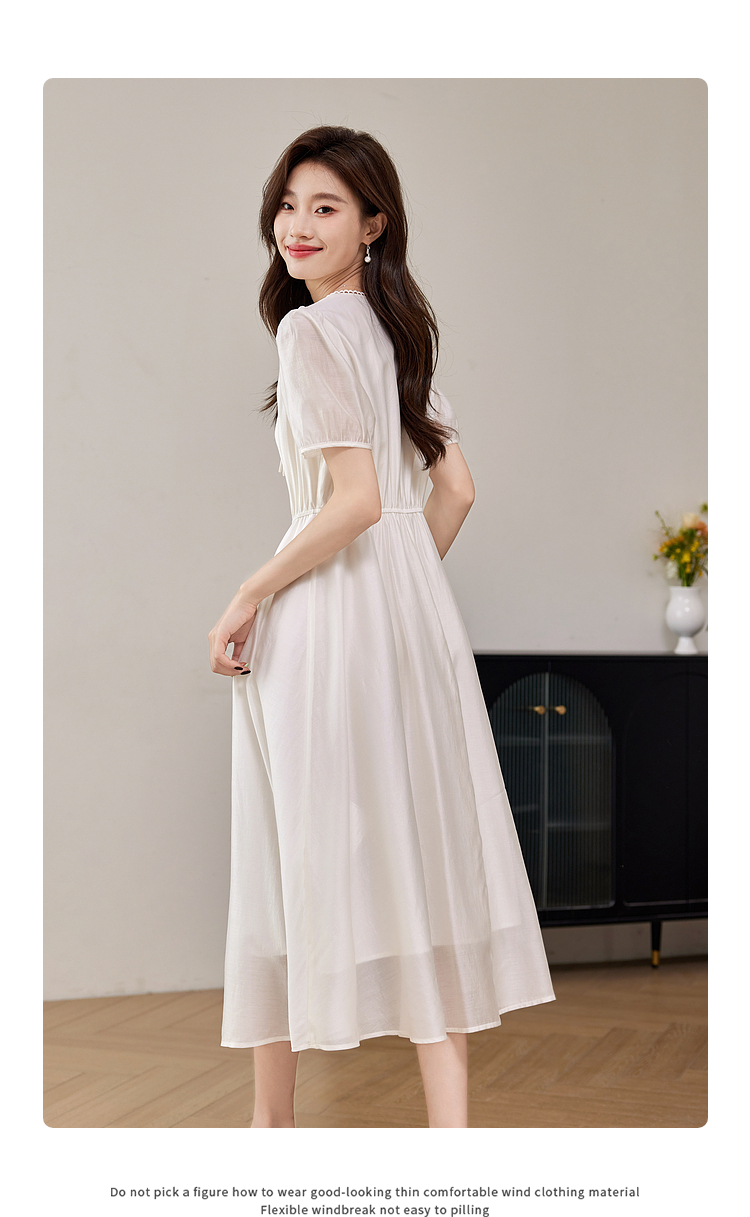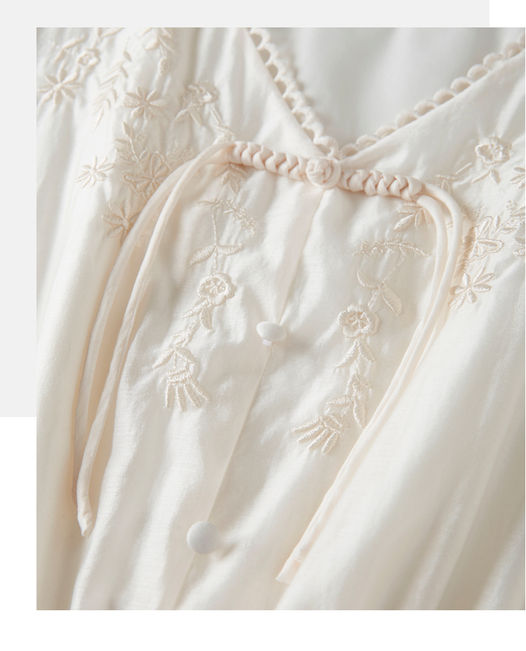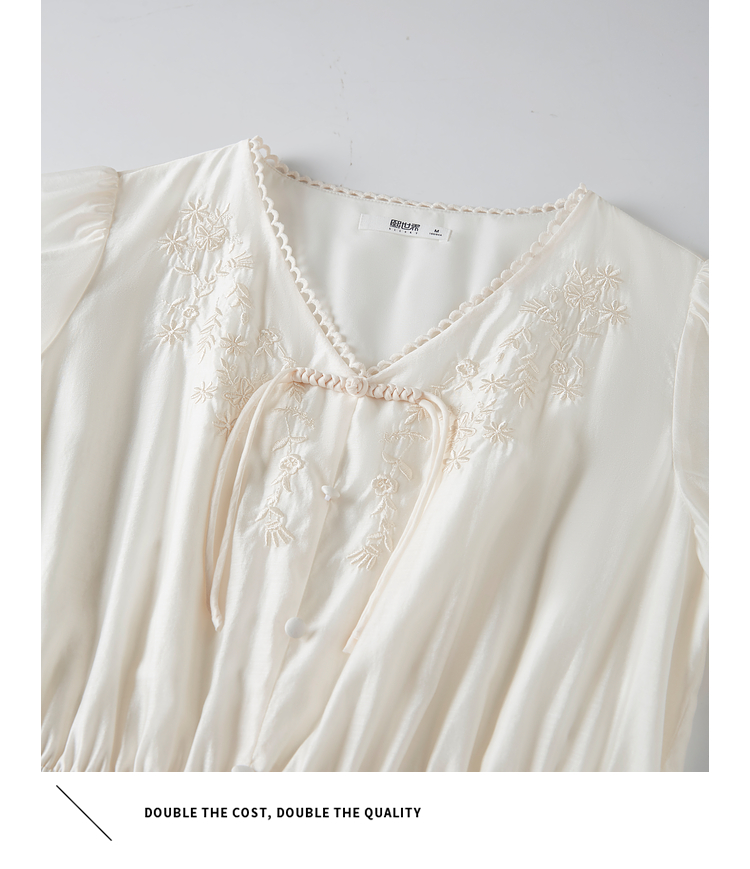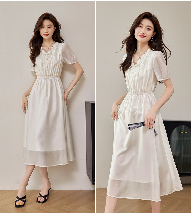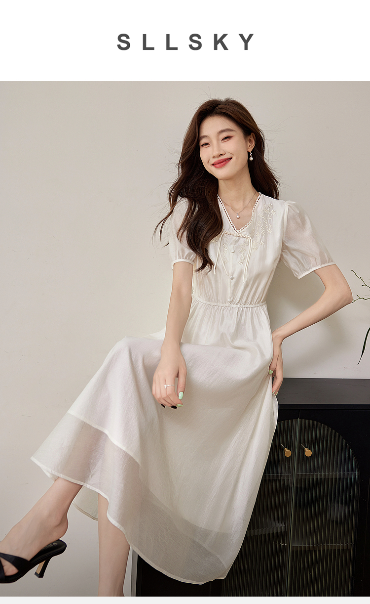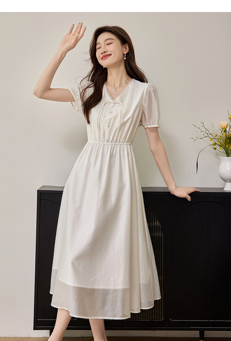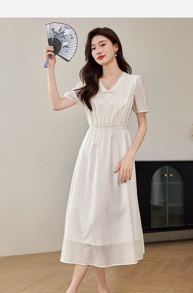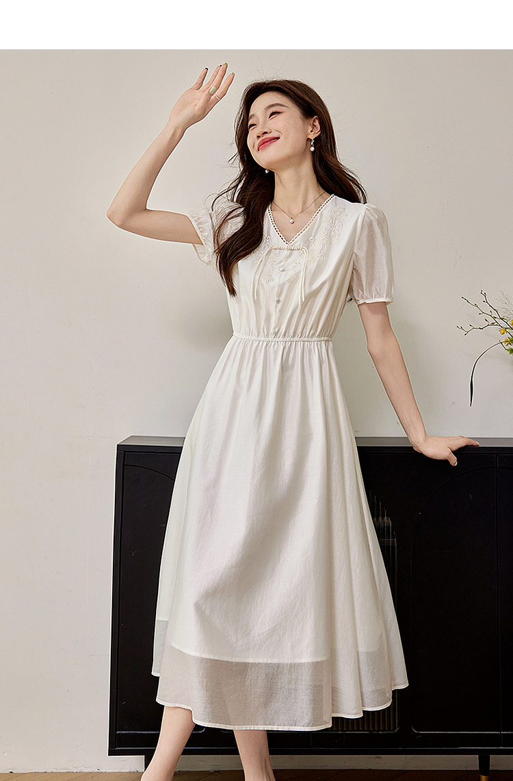 【专属特价】熙世界白色新中式天丝连衣裙2025夏季新款优雅V领国风刺绣裙子
