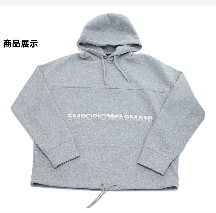 EMPORIO ARMANI 阿玛尼 男士棉质字母徽标印花连帽卫衣 浅灰色 6R1MCM 1JHSZ 0630