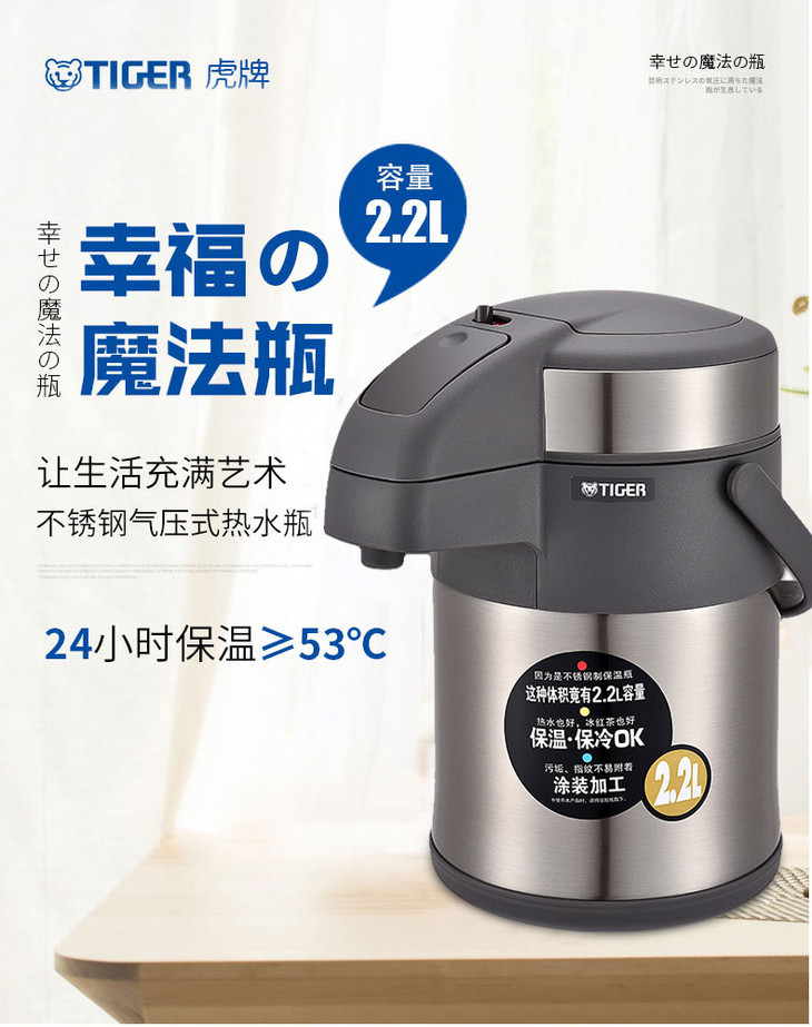 tiger虎牌气压保温壶家用办公按压出水2.2L 3.0L MAA-A系列