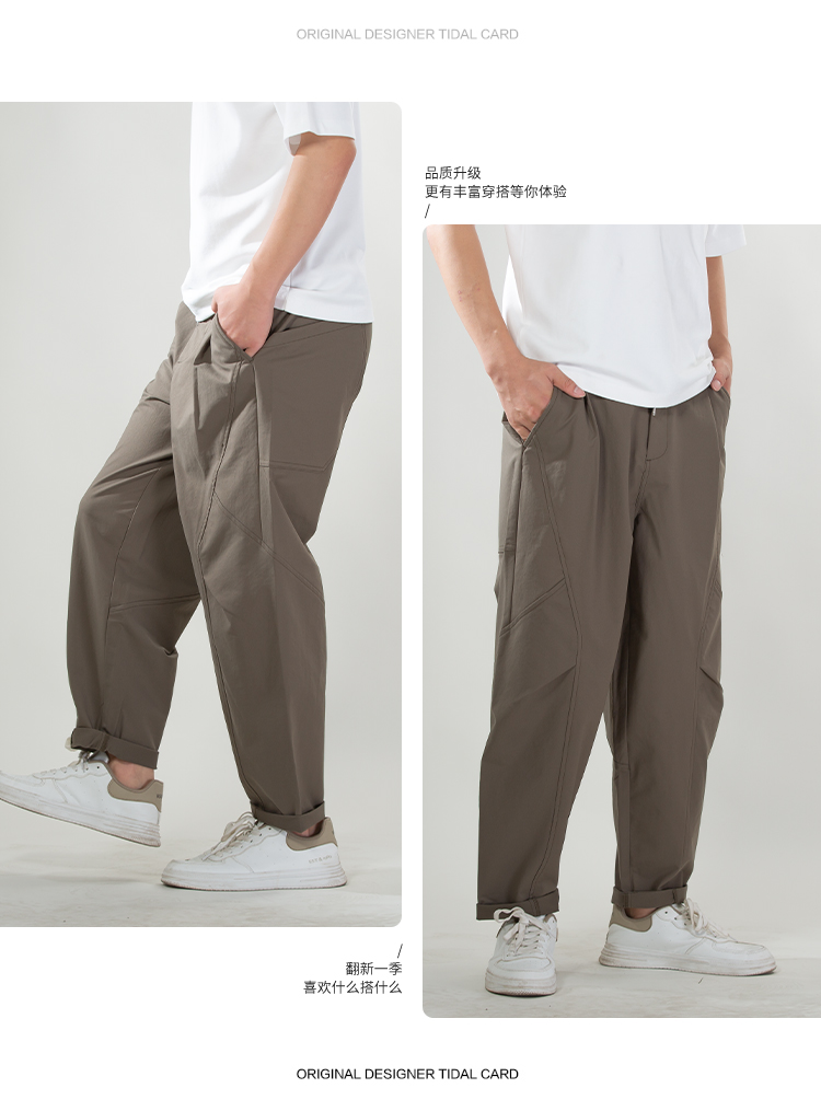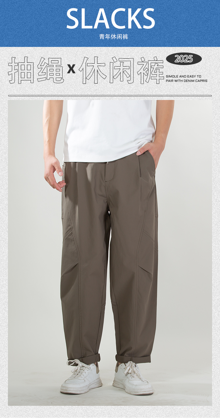 DRONKOO 2025 抽绳半松紧前多破缝结构后贴袋轻工装中厚工装长裤