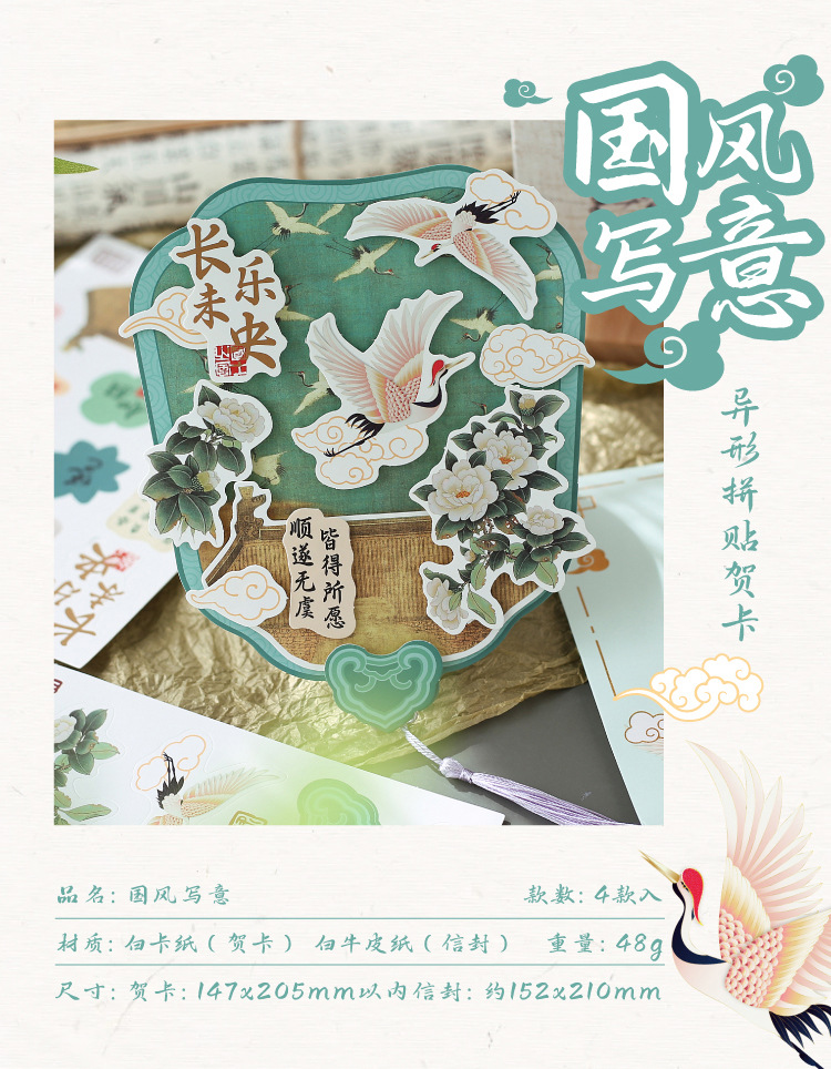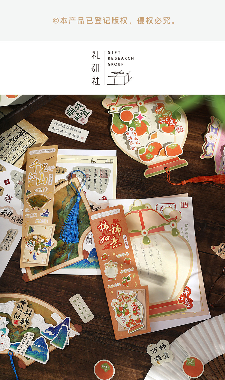 礼研社国风写意系列异形DIY大贺卡