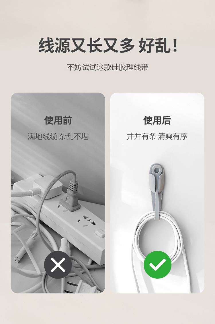 FaSoLa收纳理线器充电线绕线器有线耳机整理硅胶扎带网线束线绑带多功能手机线电源线集线器固定卡扣缠绕带