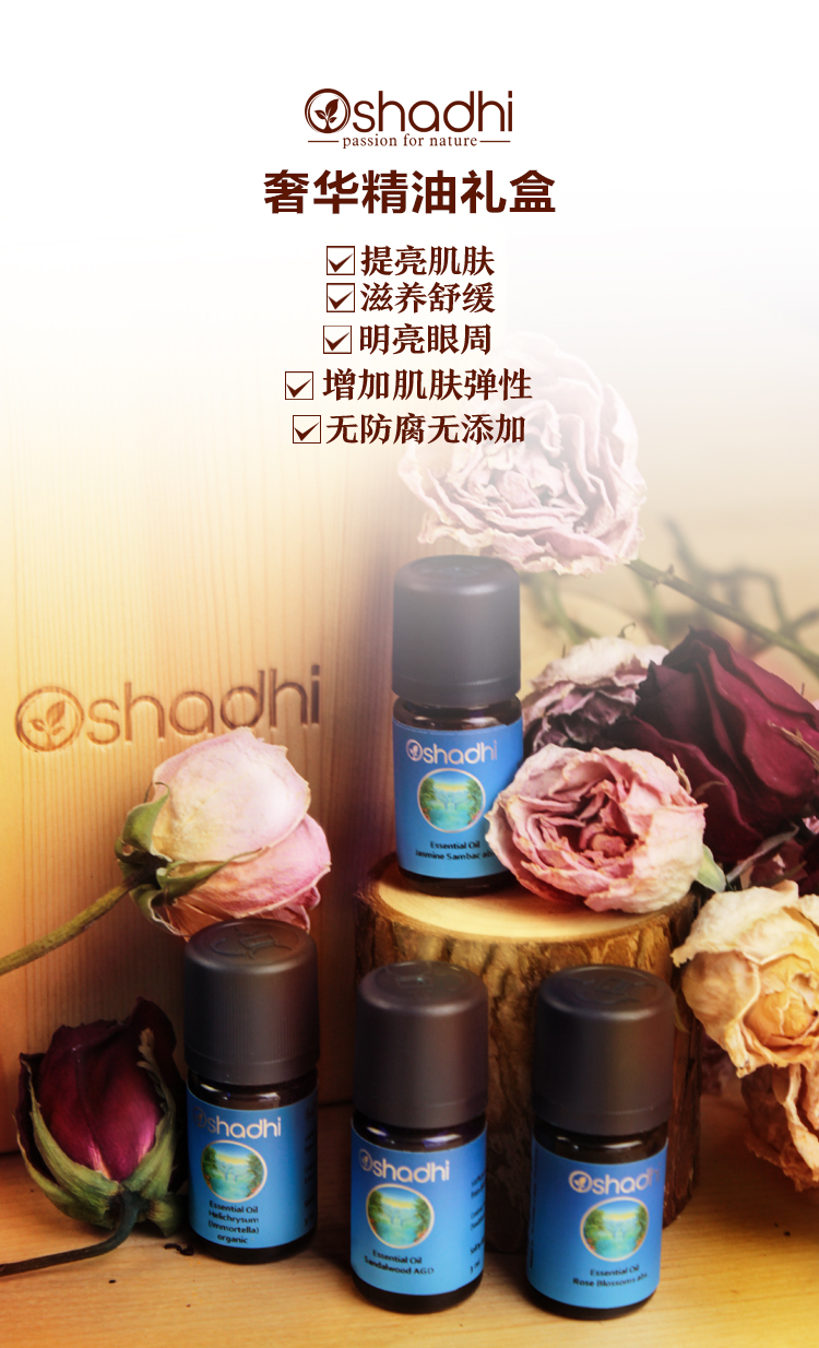Oshadhi玫瑰精油茉莉精油檀香精油永久花精油3ml奢华精油礼盒JPY带授权招加盟代理