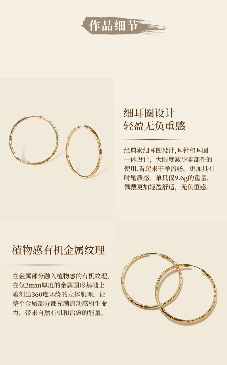 【歌手陈婧菲同款】Garden of Eden 伊甸园系列 | 树纹耳圈(金银2色)