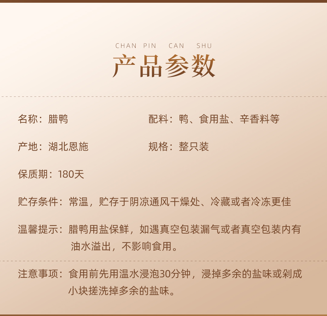 巴东县巴腊香土家腊鸭整只装750g/袋左右