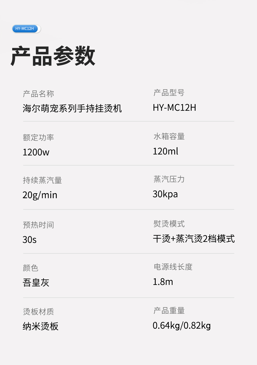 海尔萌宠系列手持挂烫机 HY-MC12H(吾皇联名款)