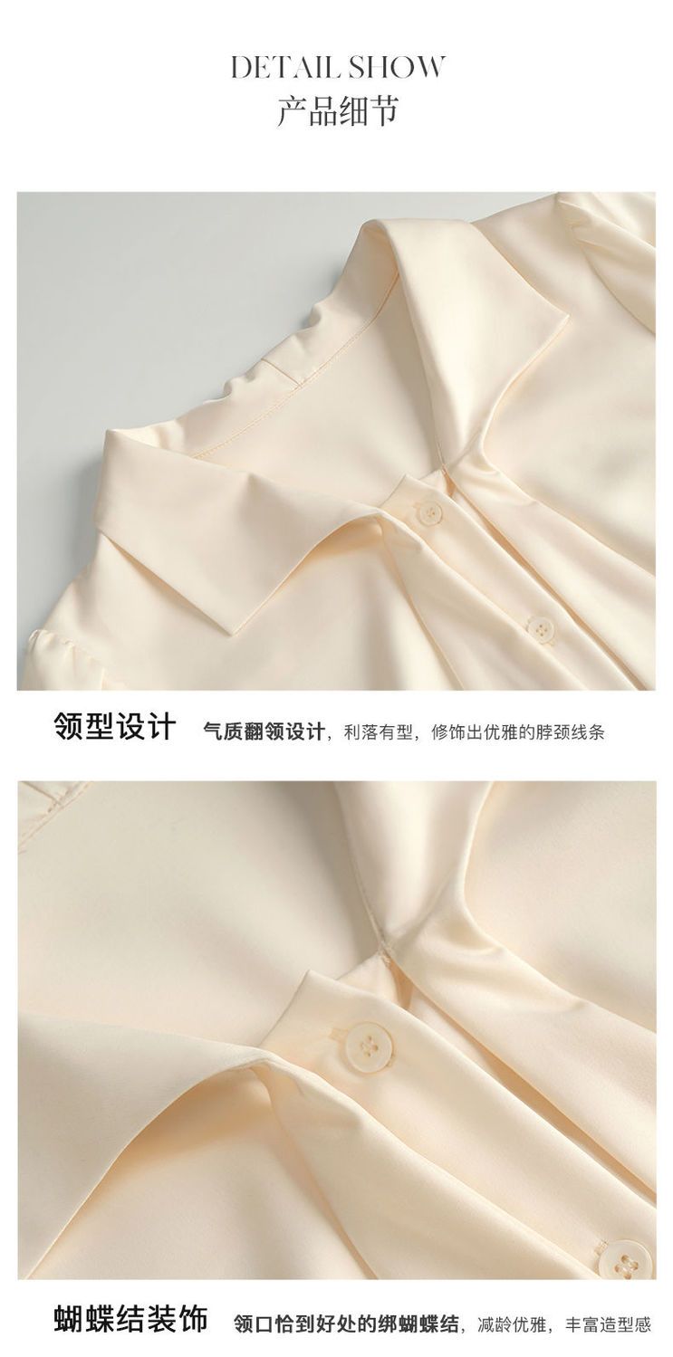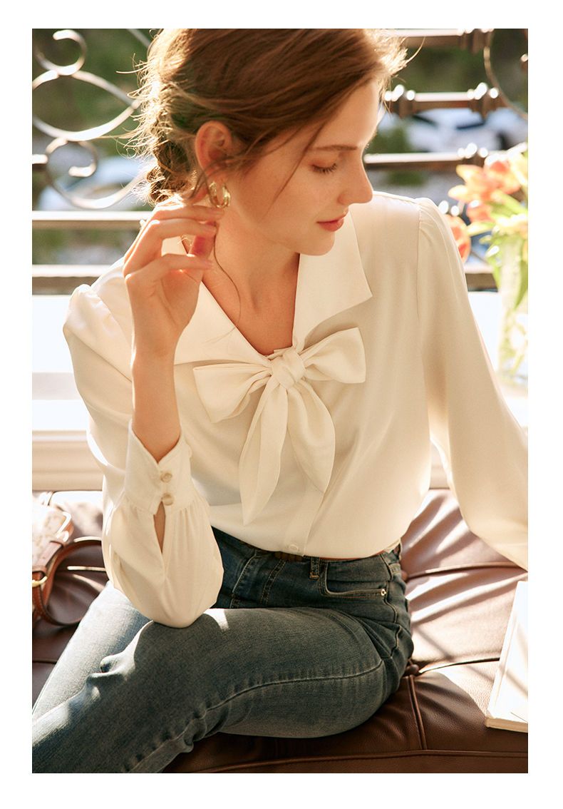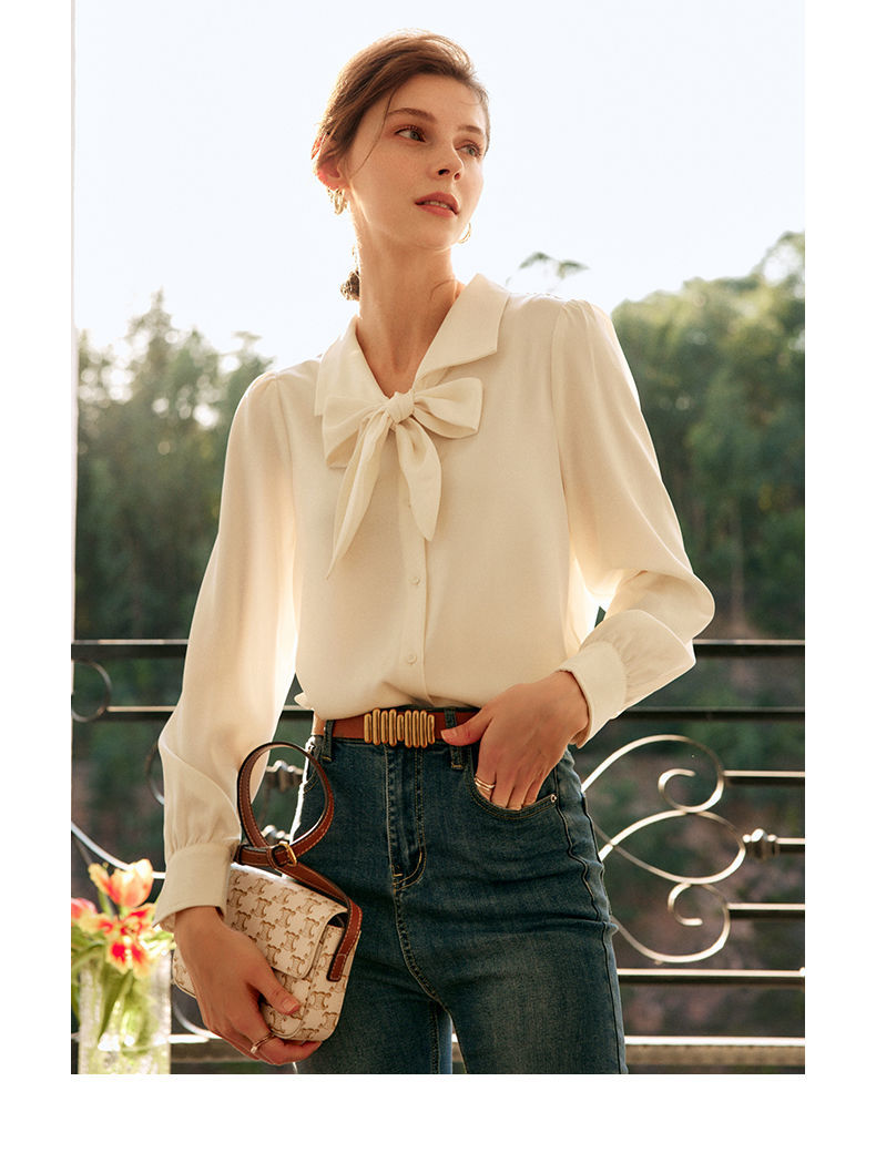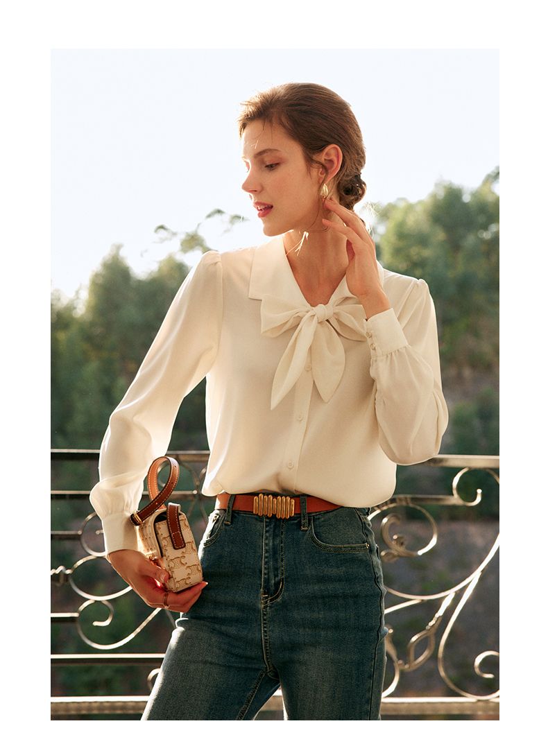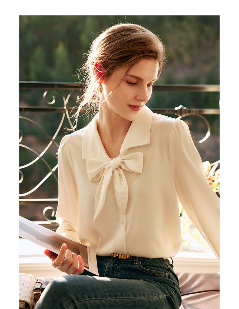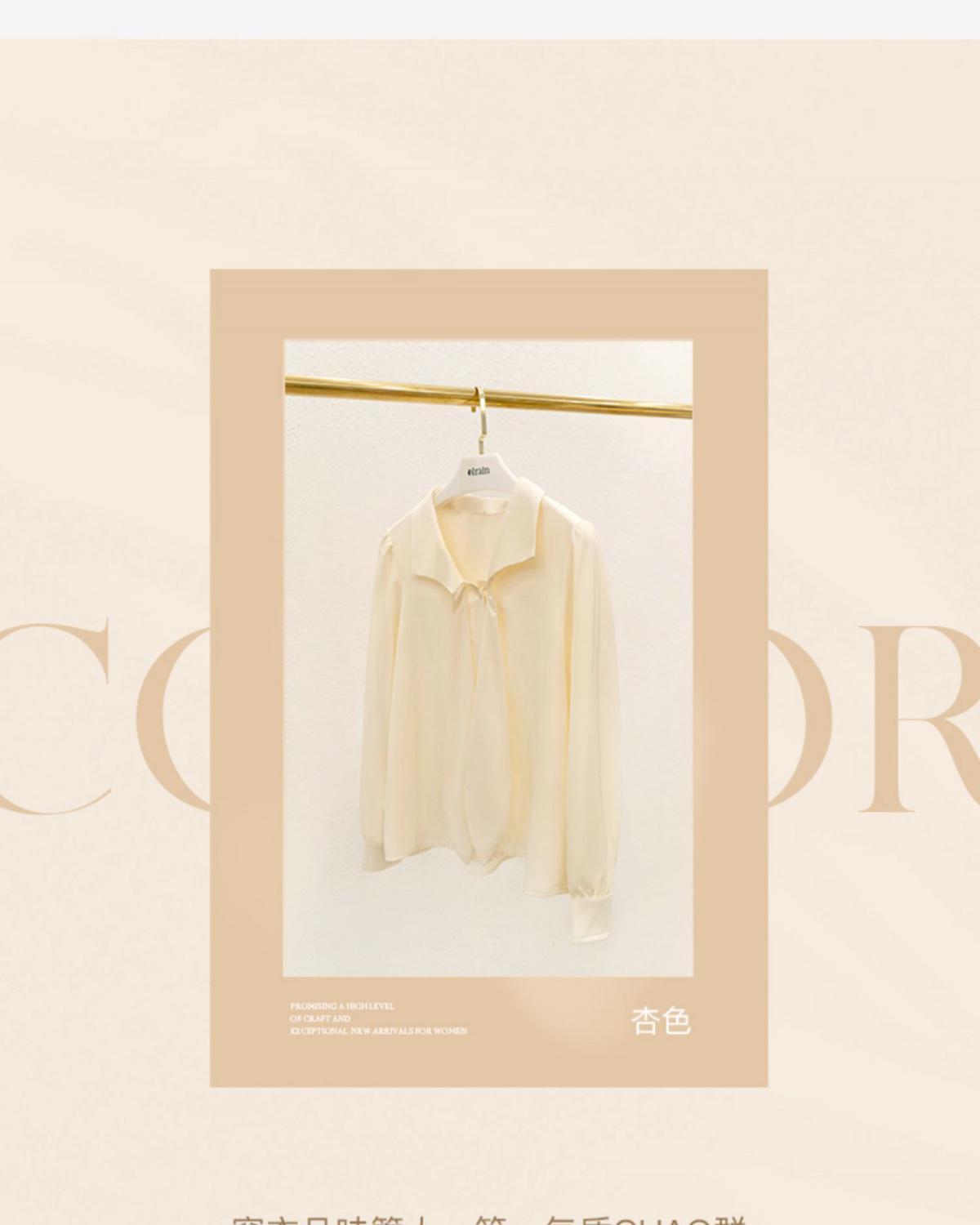 欧芮儿杏色衬衫女春季2022年新款宽松显瘦时尚法式长袖蝴蝶结衬衣