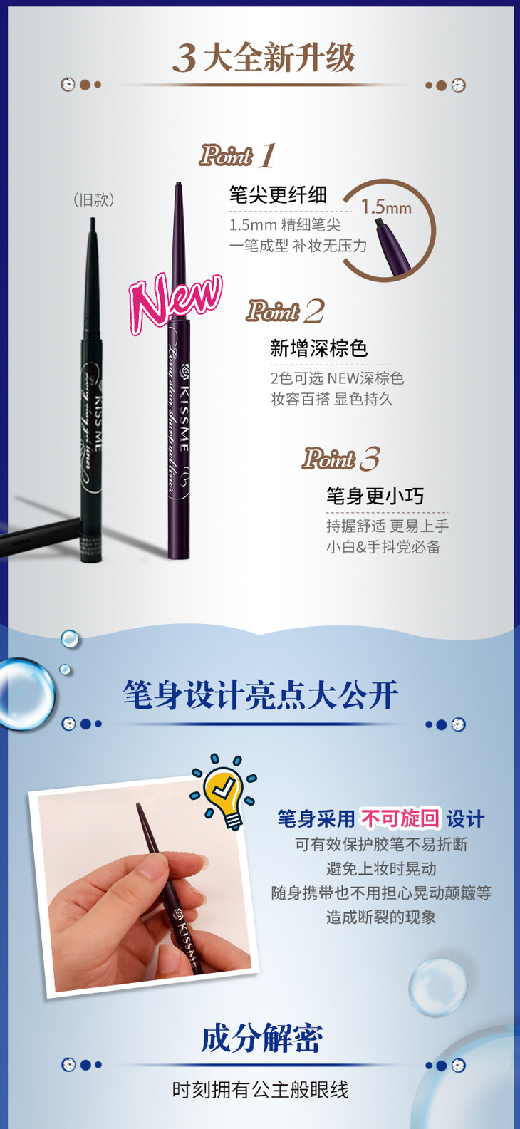 *kissme花盈美蔲玩味持久精细眼线胶笔