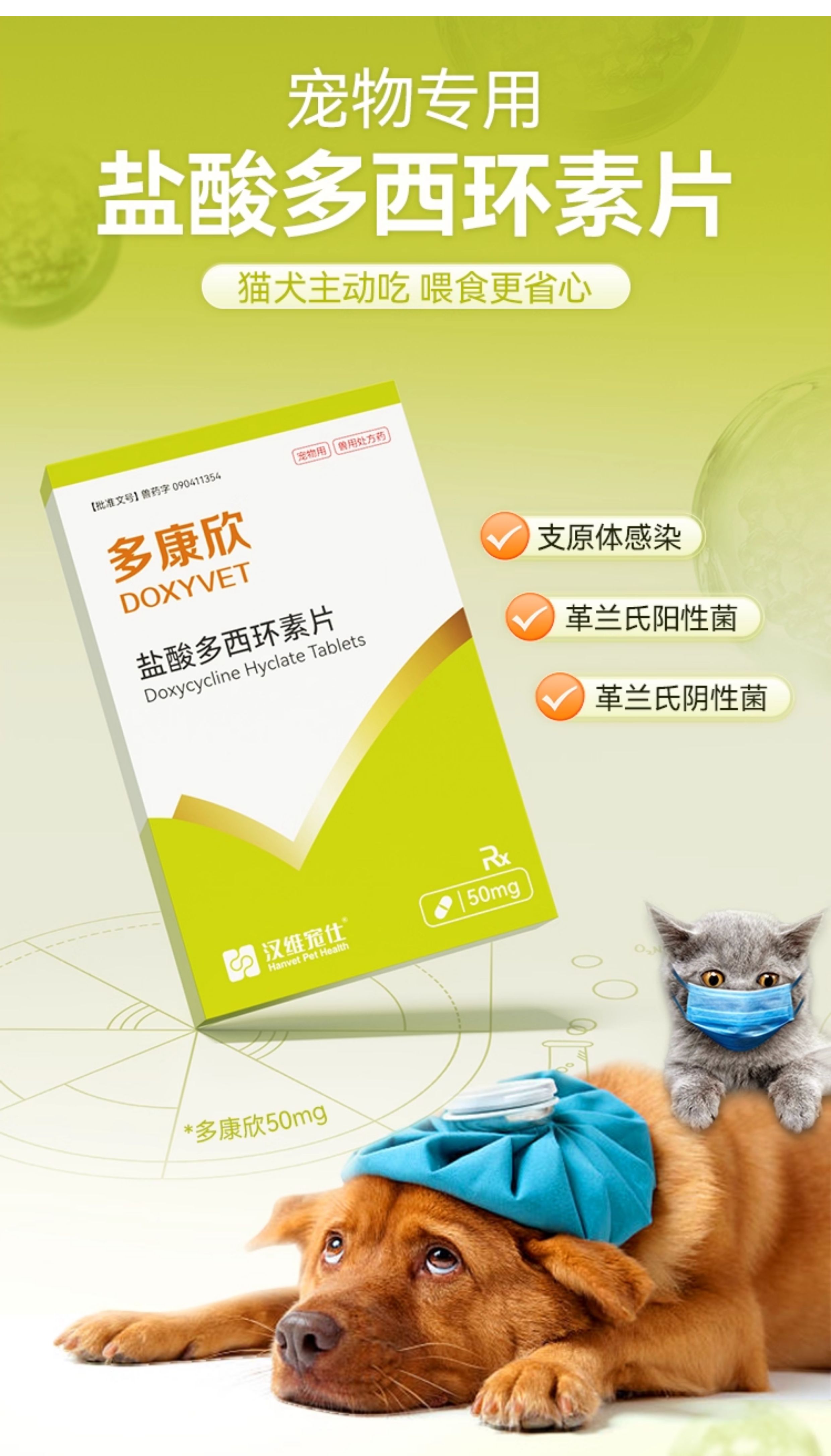 汉维宠仕多康欣宠物盐酸多西环素片狗感冒药咳嗽猫咪结膜炎猫鼻支